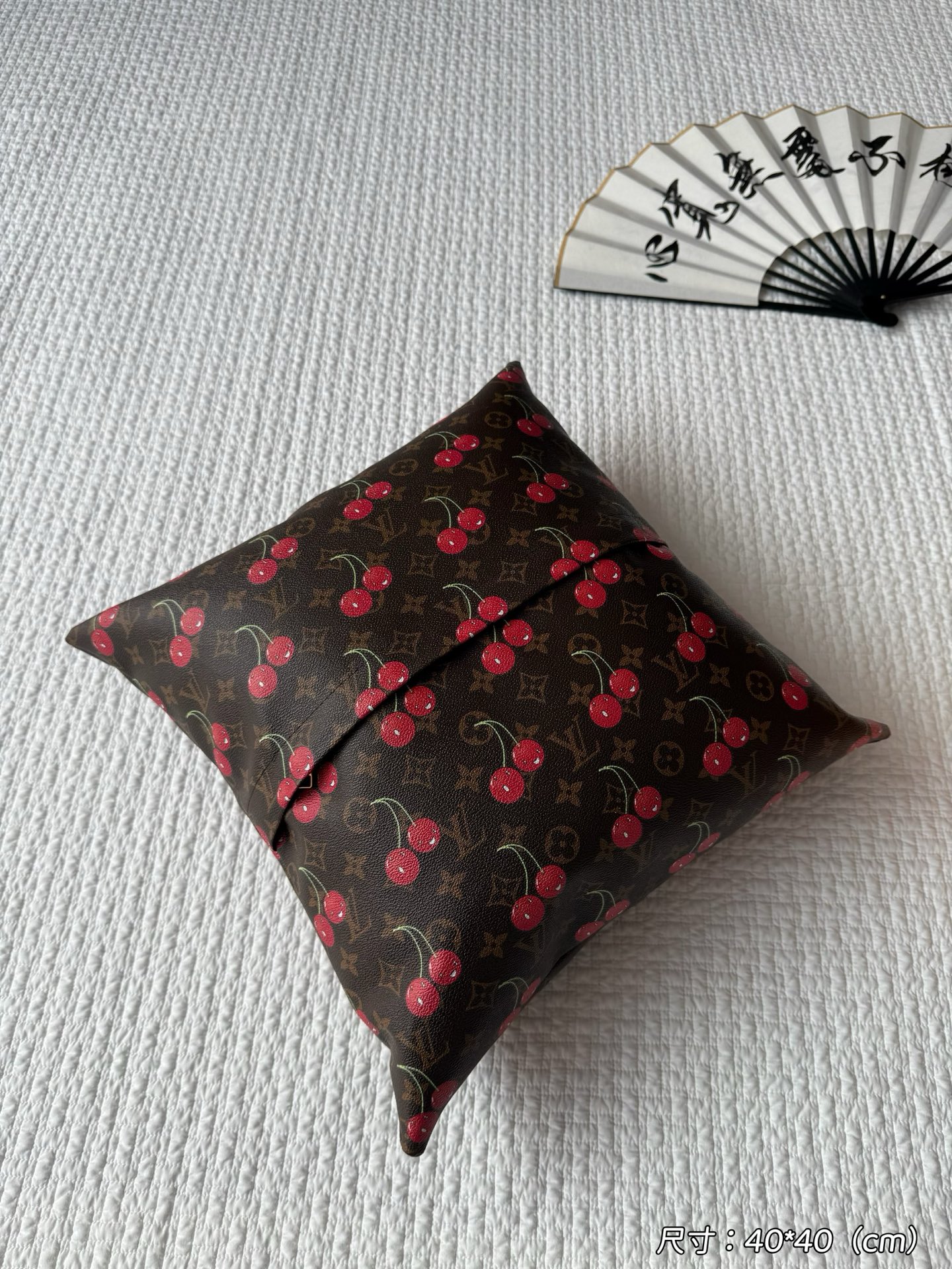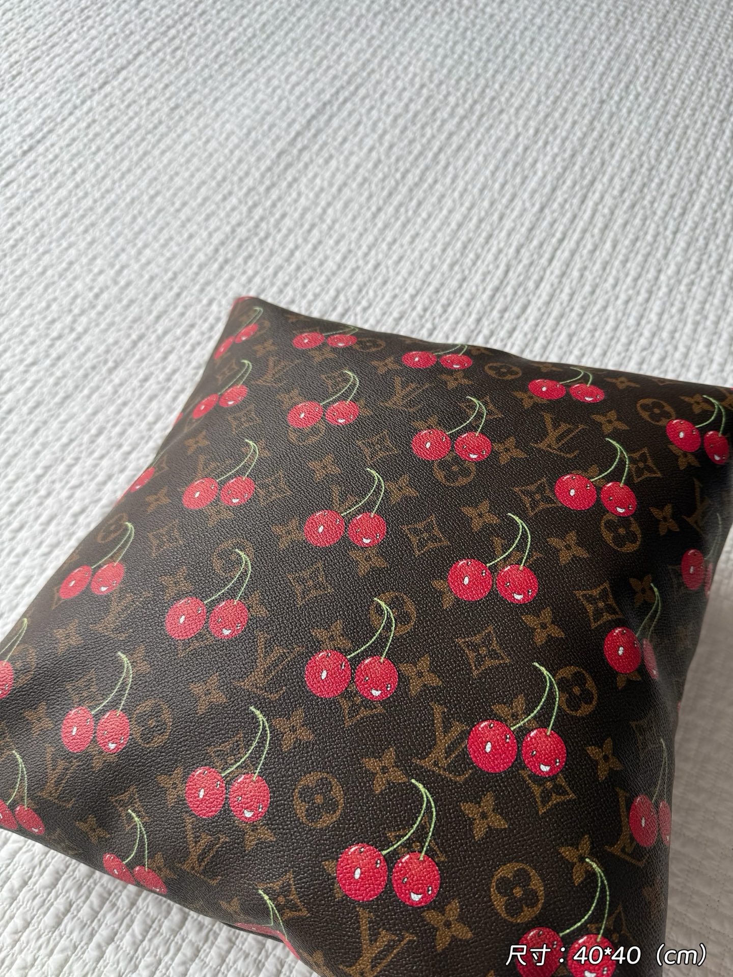 NIGO Louis Vuitton LV X TM Brown Letter Print Cherry Pattern Leather Home Pillow Cushion Accessories #nigo77576