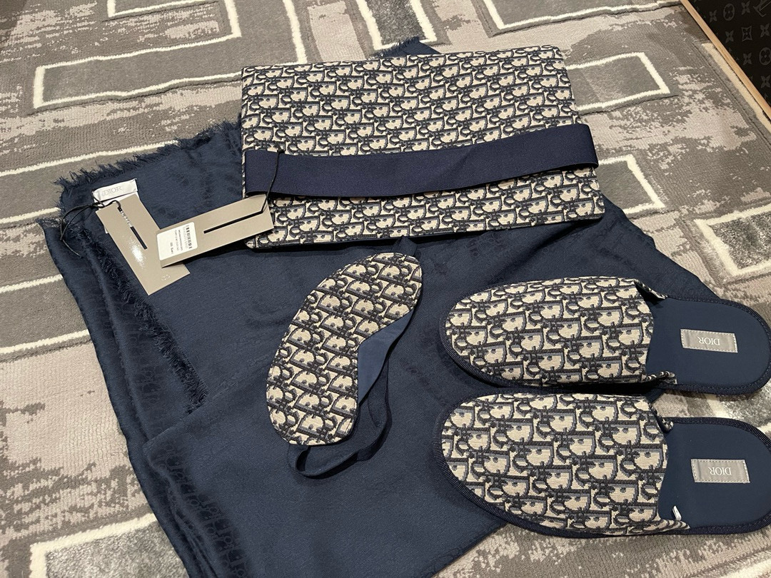 NIGO Dior Cotton Monogrammed Slippers Silk Scarf and Eye Mask Homeware Travel Set #nigo97677
