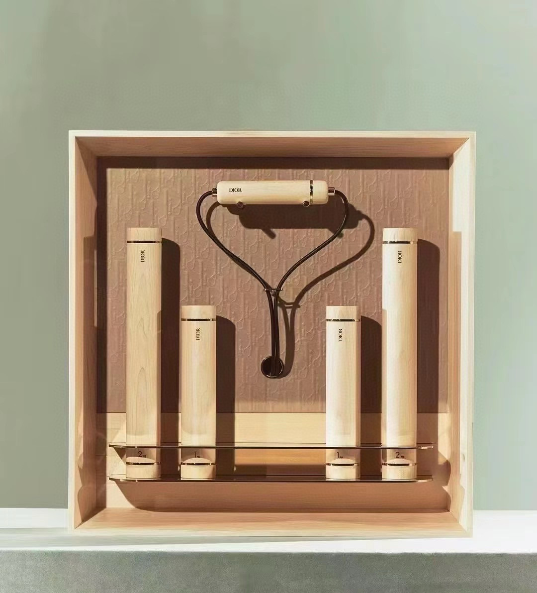 NIGO Dior FITNESS SET Powder Pink Monogrammed Embossed Leather Fitness Equipment Dumbbell Jump Rope Set Suit #nigo98197