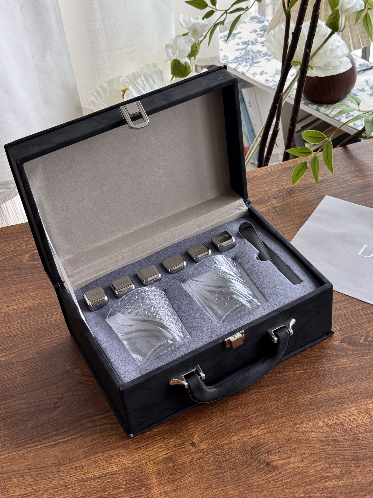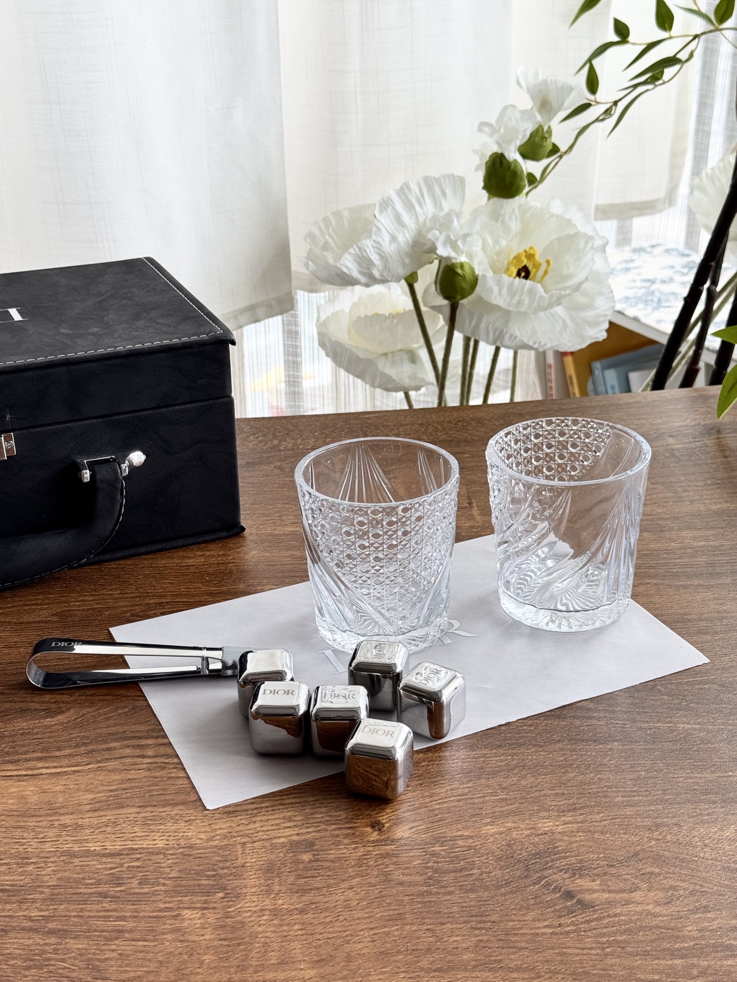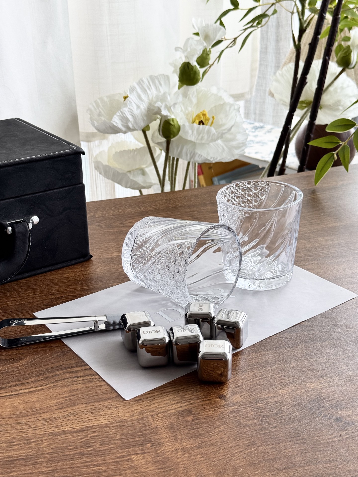 NIGO Dior Metal Ice Cube Wine Glasses Gift Box (2 Clear Wine Glasses 6 Ice Cubes) #nigo76592
