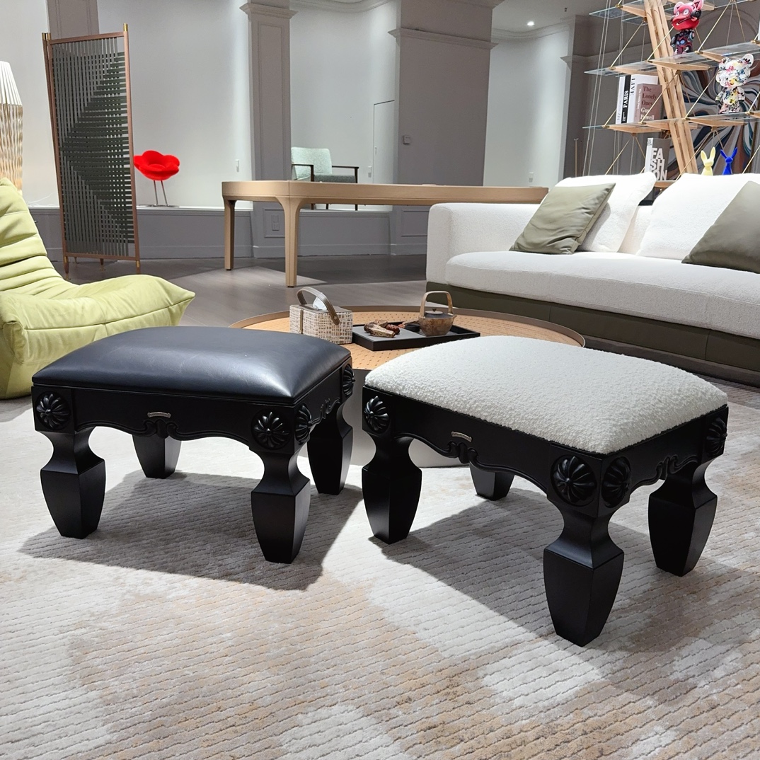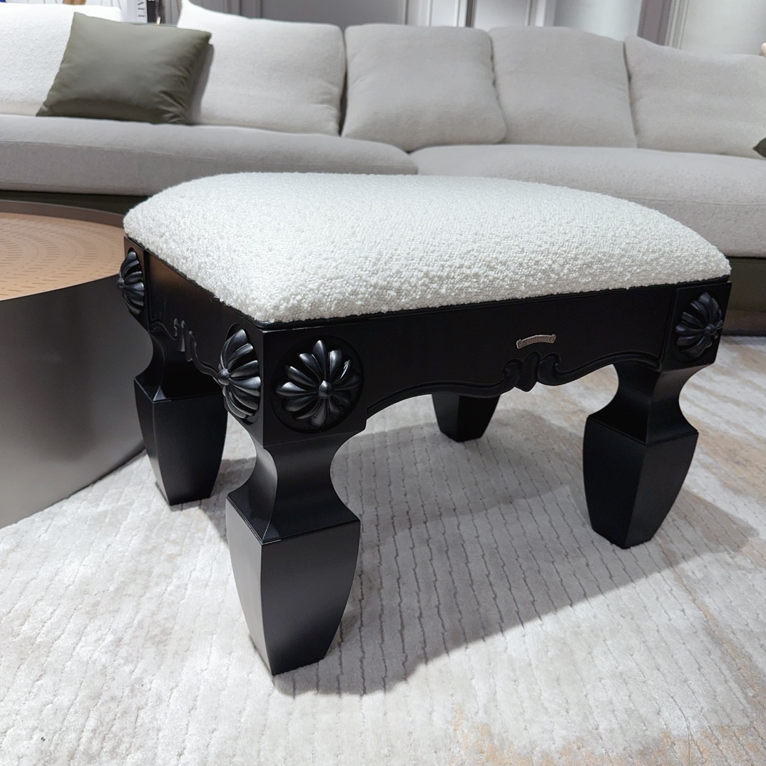NIGO Chrome Hearts Vintage Leather Lambswool Solid Wood Carved Stool #nigo73653