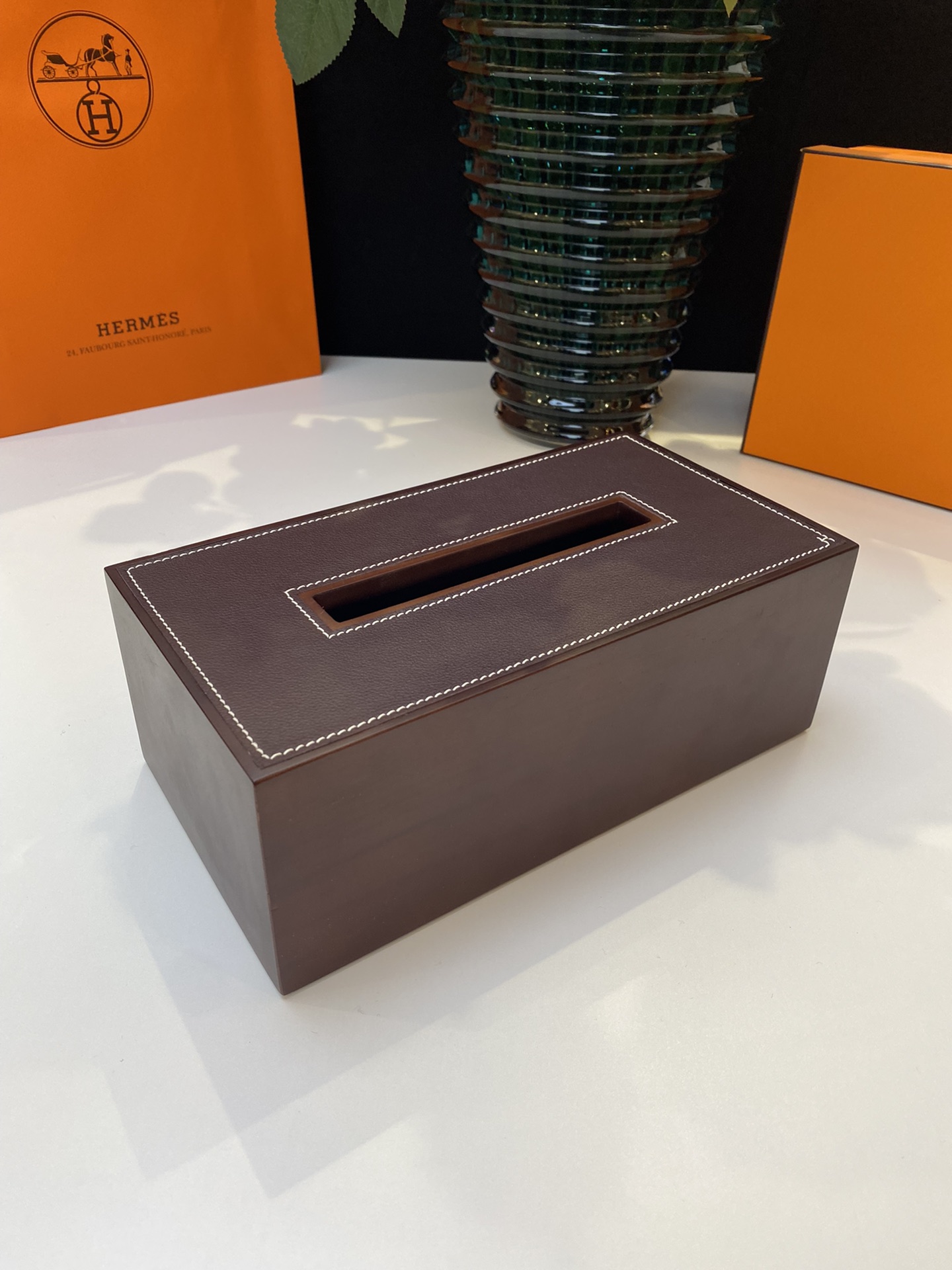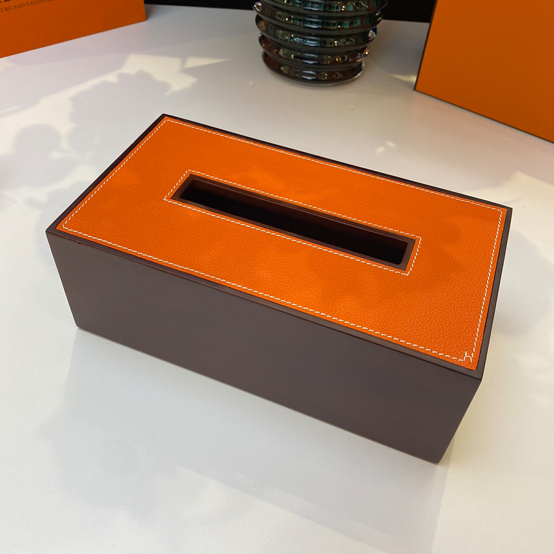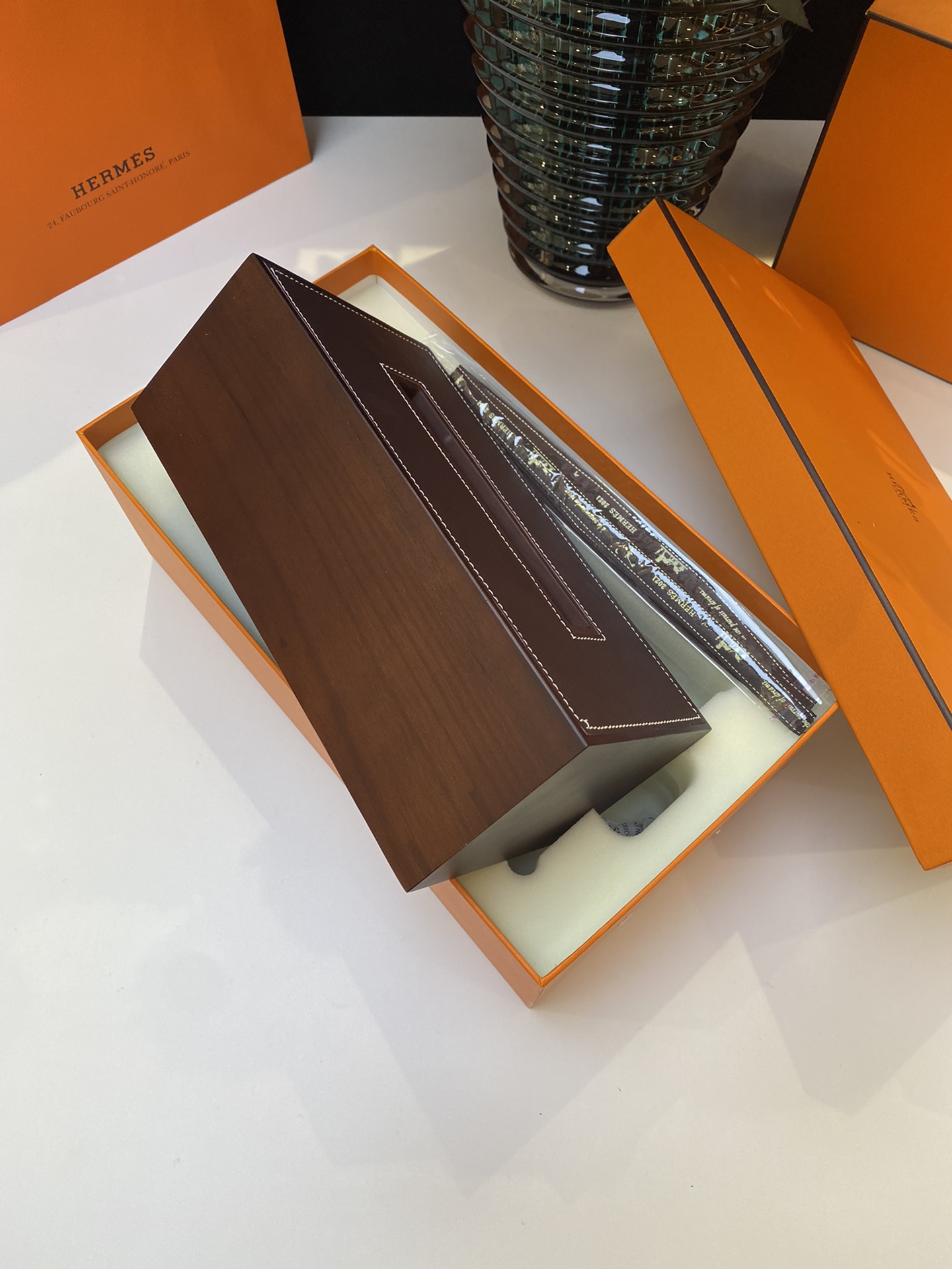 NIGO Hermes Fashion Simple Solid Color Solid Wood Smooth Calfskin Magnetic Box Cover Leisure Tissue Box #nigo71546