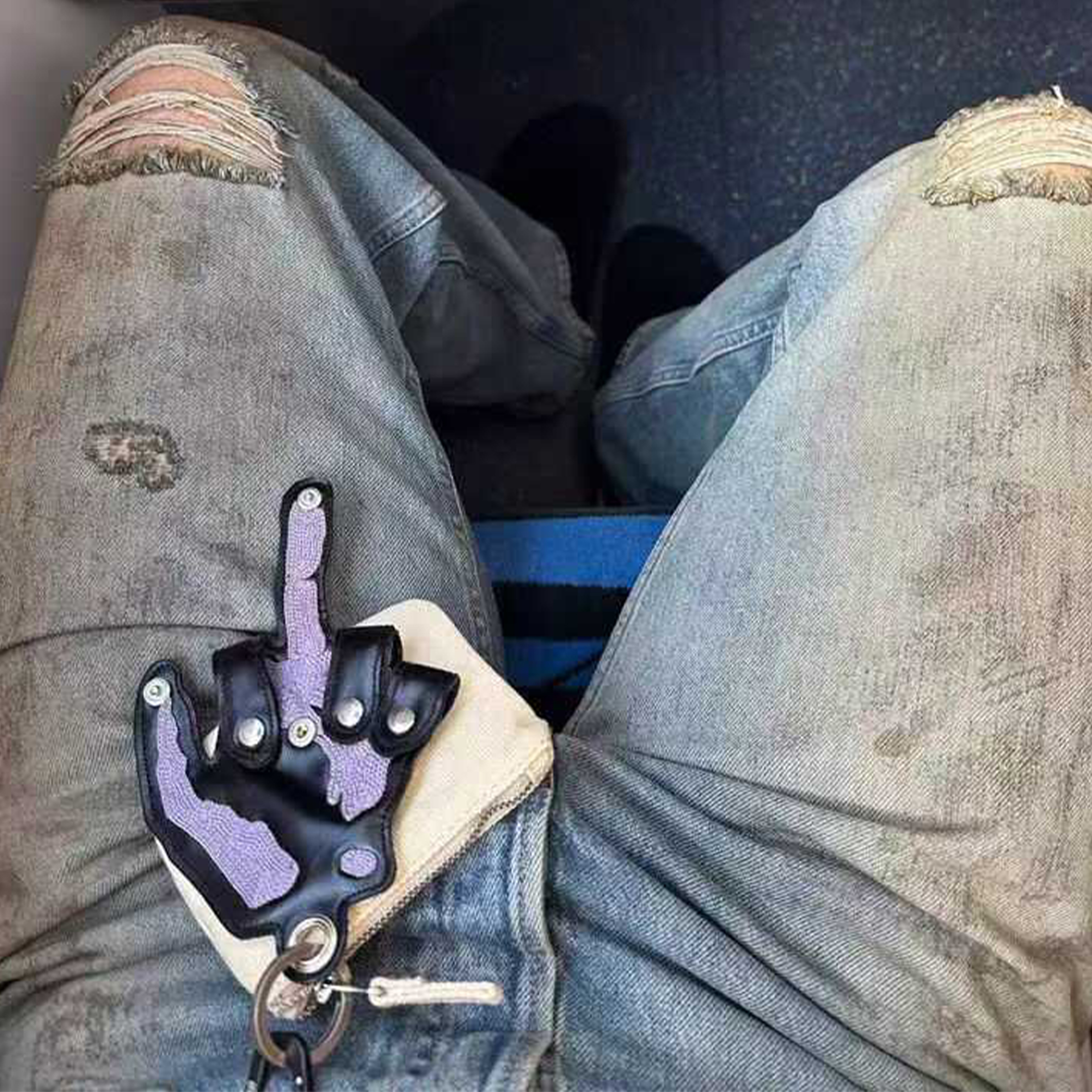NIGO Our Legacy Purple Fun Guessing Gesture Keychain Adjustable Embroidered Key Pants Waistband Bag Charm Accessory Ngvp #nigo1864