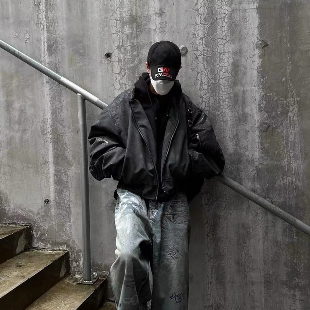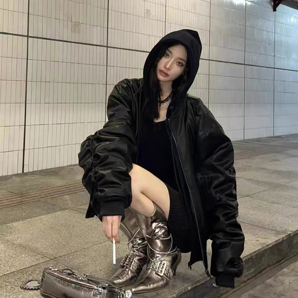 NIGO POPPROJECT Men's Winter Double Layer Fake Two Piece Leather Aviator Jacket Hooded Long Sleeve Loose Coay Ngvp #nigo6981