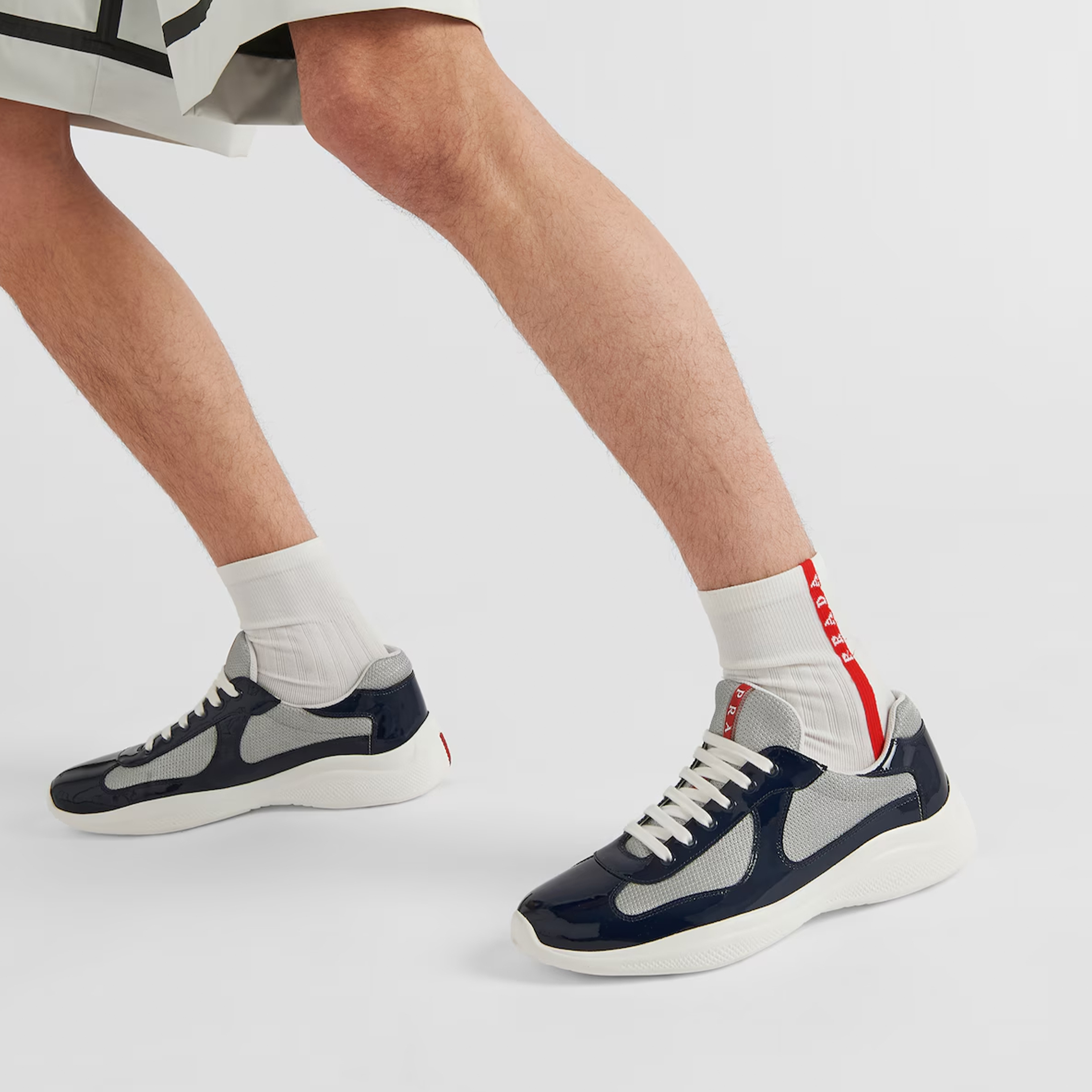 NIGO Prada America's Cup Patent Leather And Fabric Trainers Men's Spring And Summer Colour Blocking Fashion Lace-up Trainers Trend Casual Shoes #nigo81247