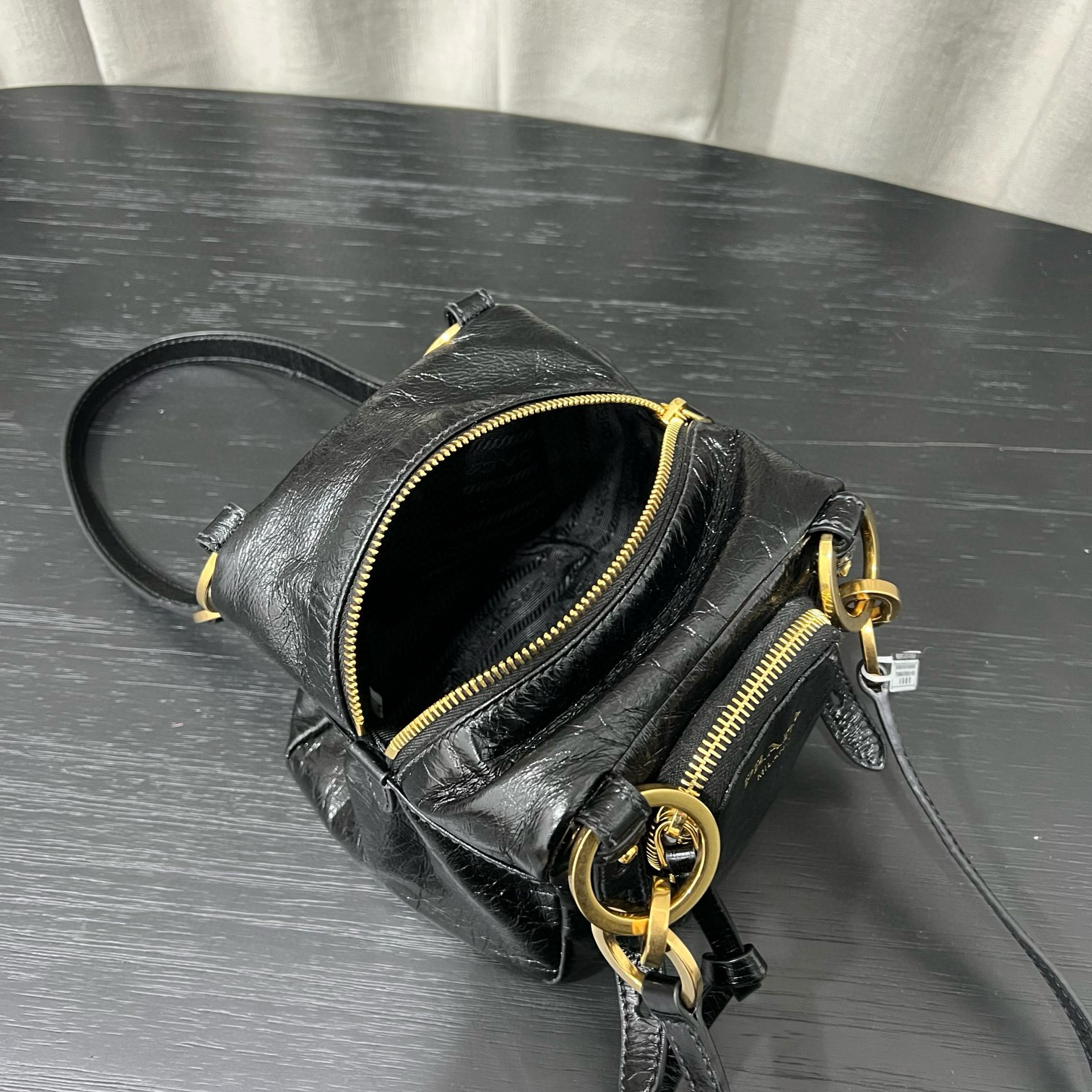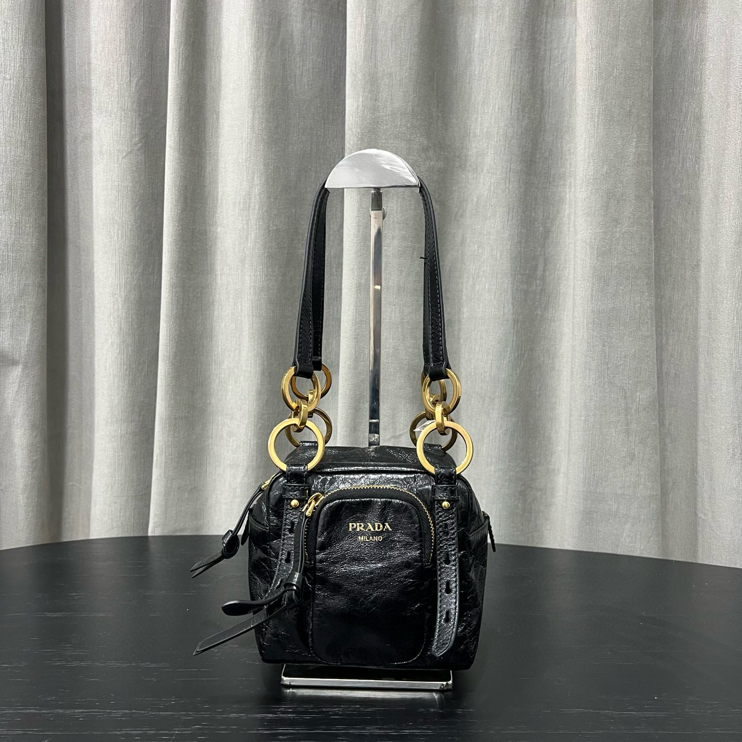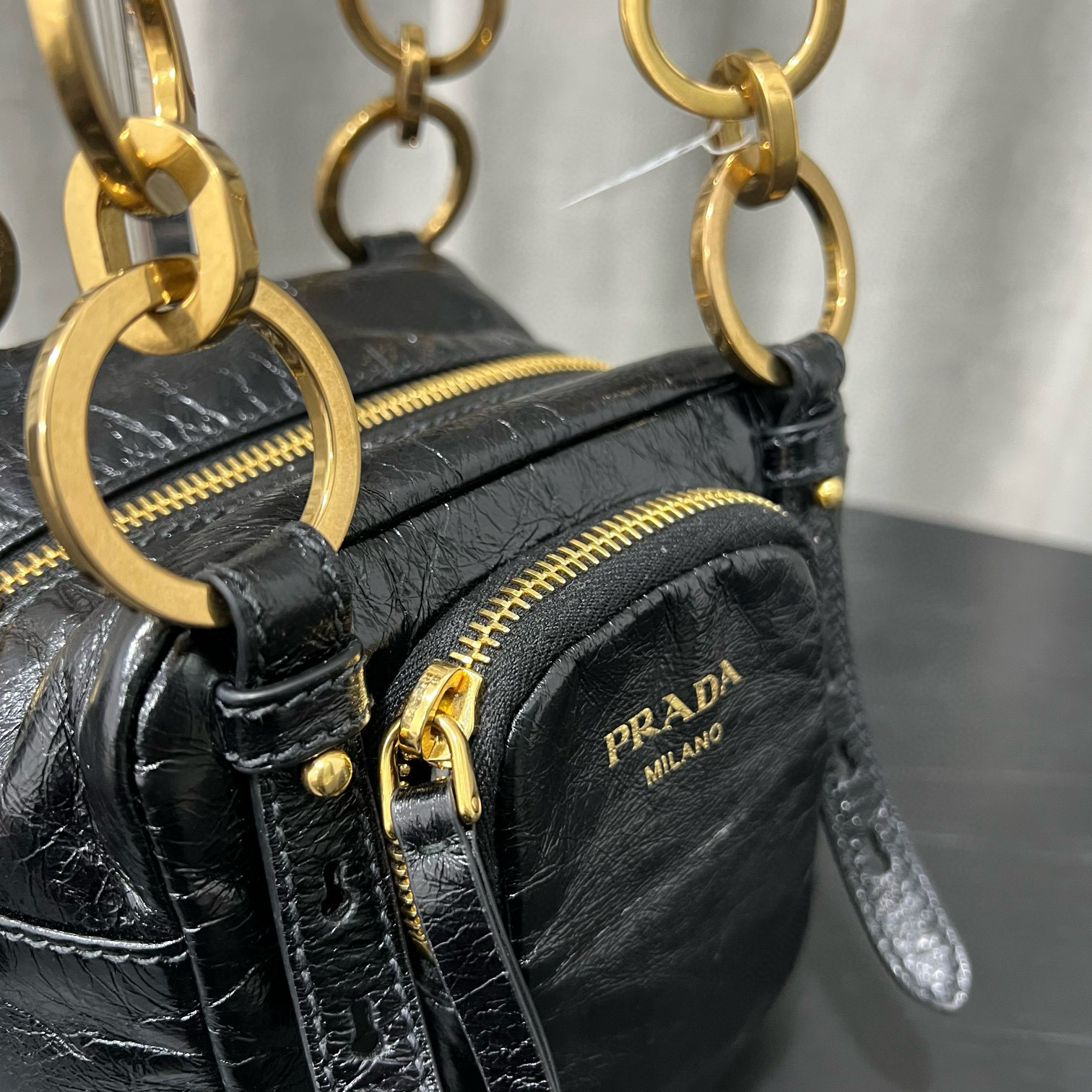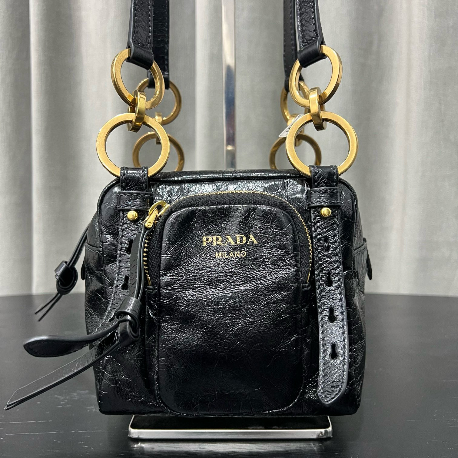 NIGO Prada Dangle Women's Black Letter Print Zipper Closure Cowhide Leather Mini Shoulder Bag Bags #nigo75499