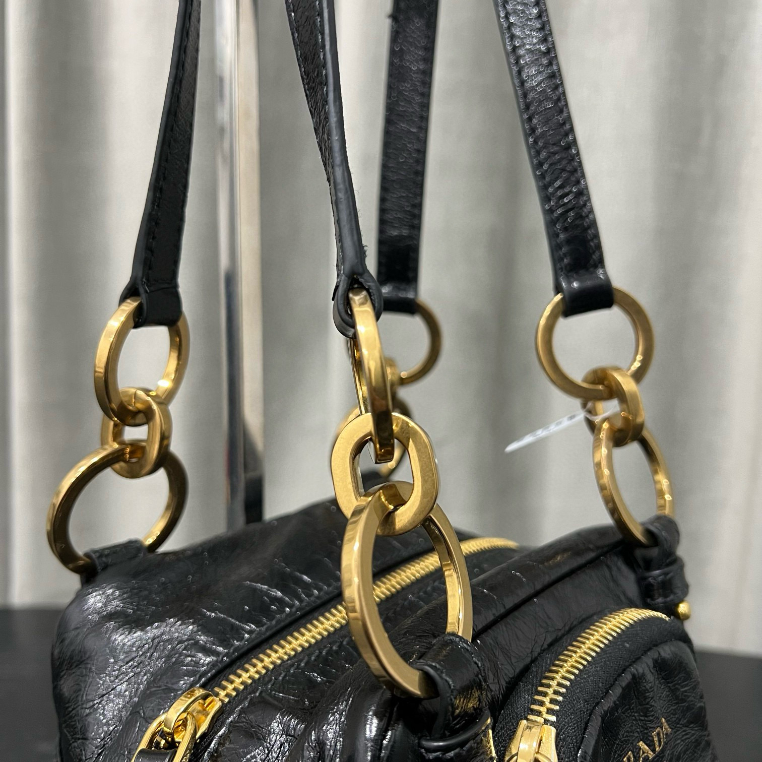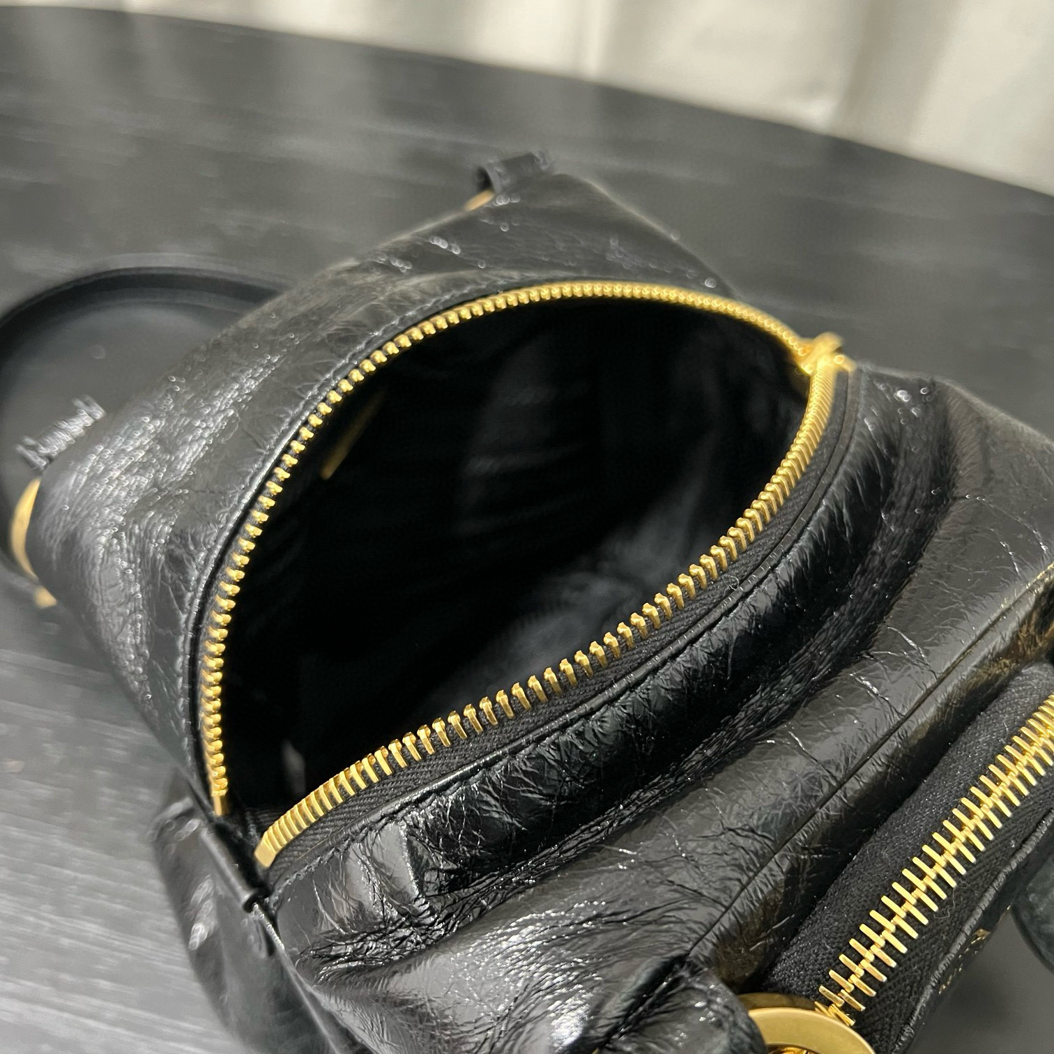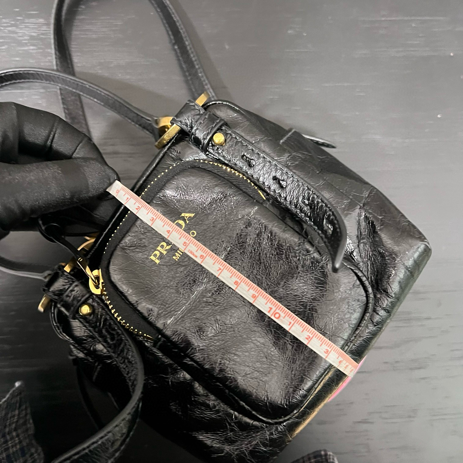 NIGO Prada Dangle Women's Black Letter Print Zipper Closure Cowhide Leather Mini Shoulder Bag Bags #nigo75499