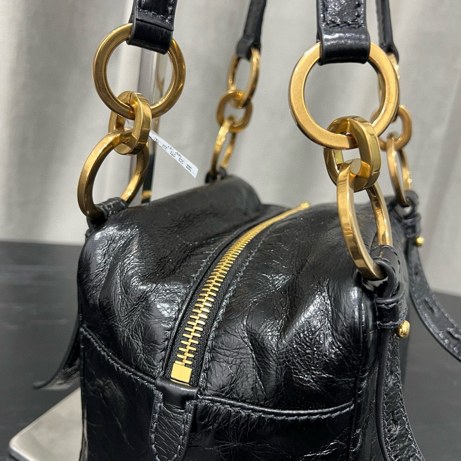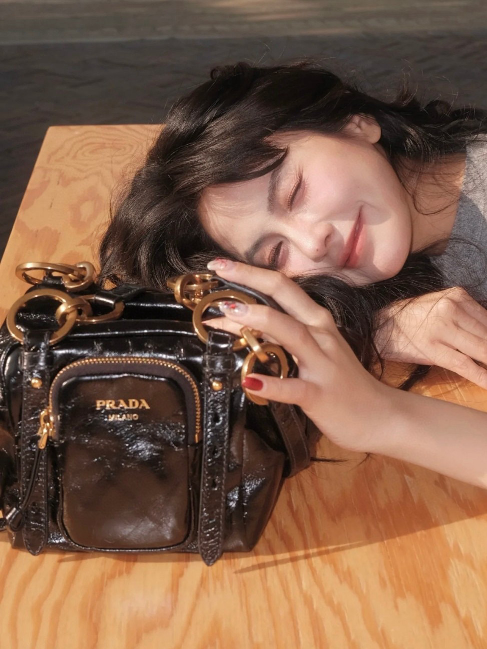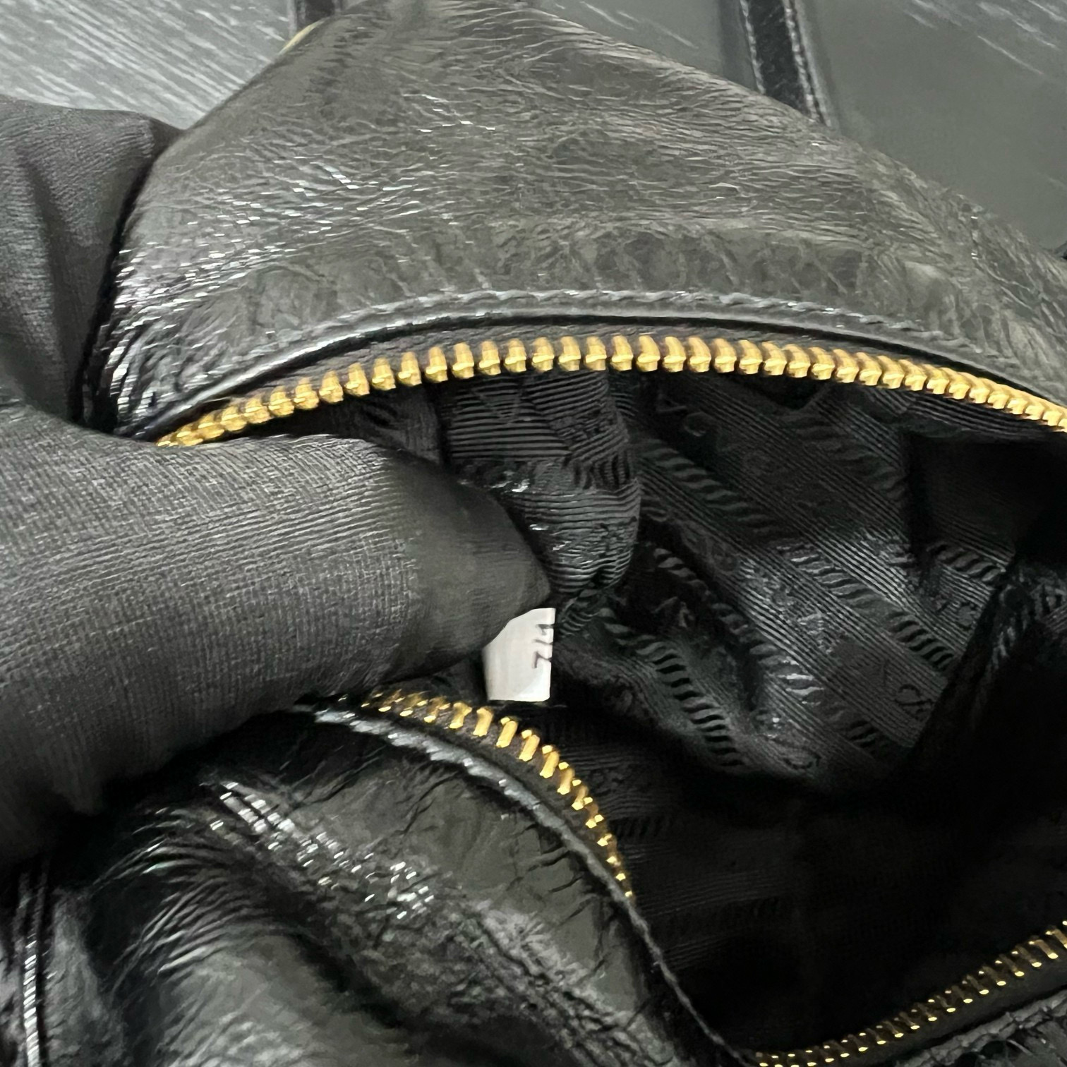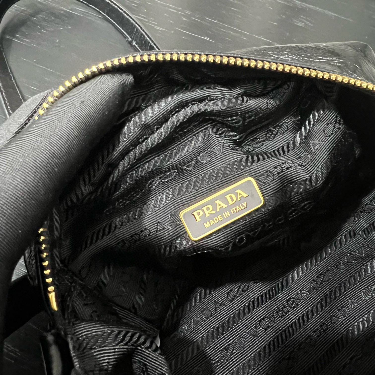 NIGO Prada Dangle Women's Black Letter Print Zipper Closure Cowhide Leather Mini Shoulder Bag Bags #nigo75499