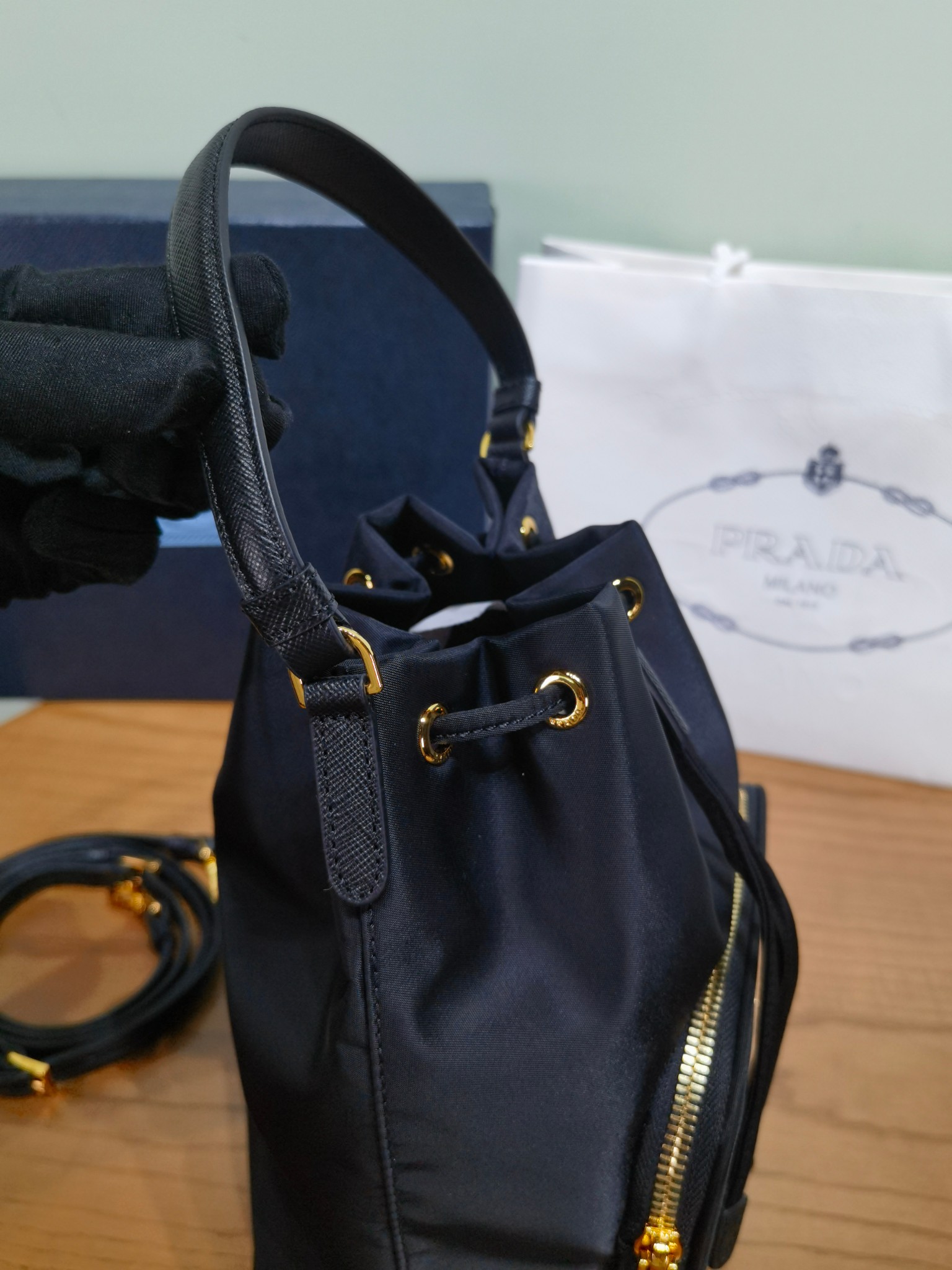 NIGO Prada Duet Recycled Nylon Bucket Bag Drawstring Closure Shoulder Bag #nigo332667