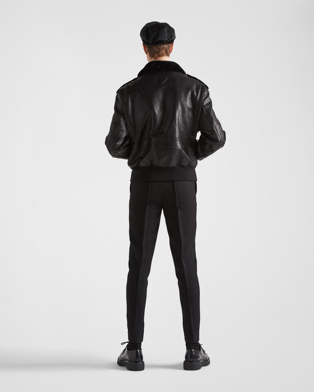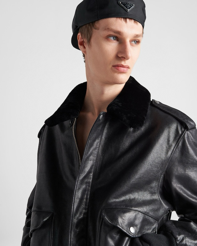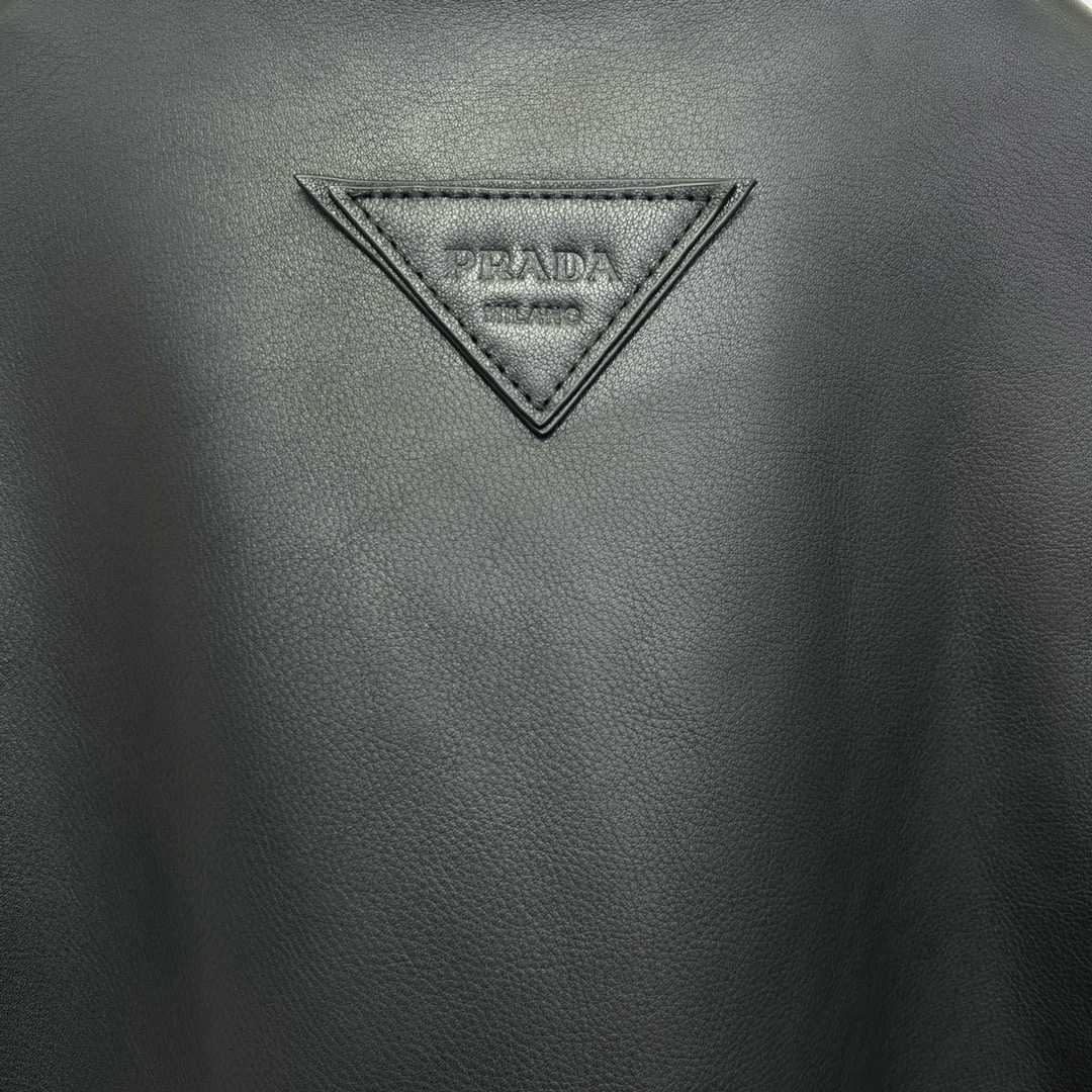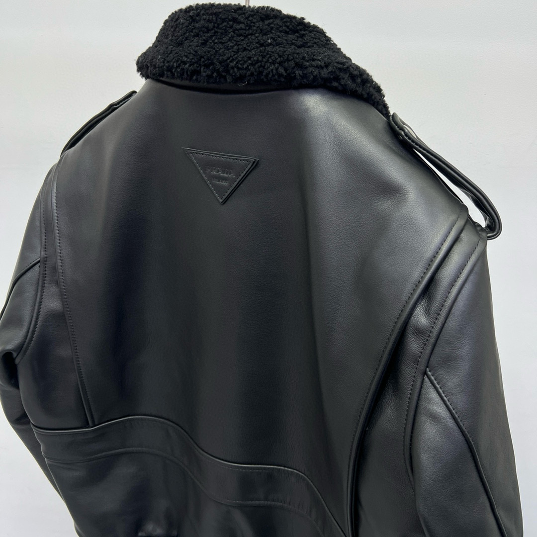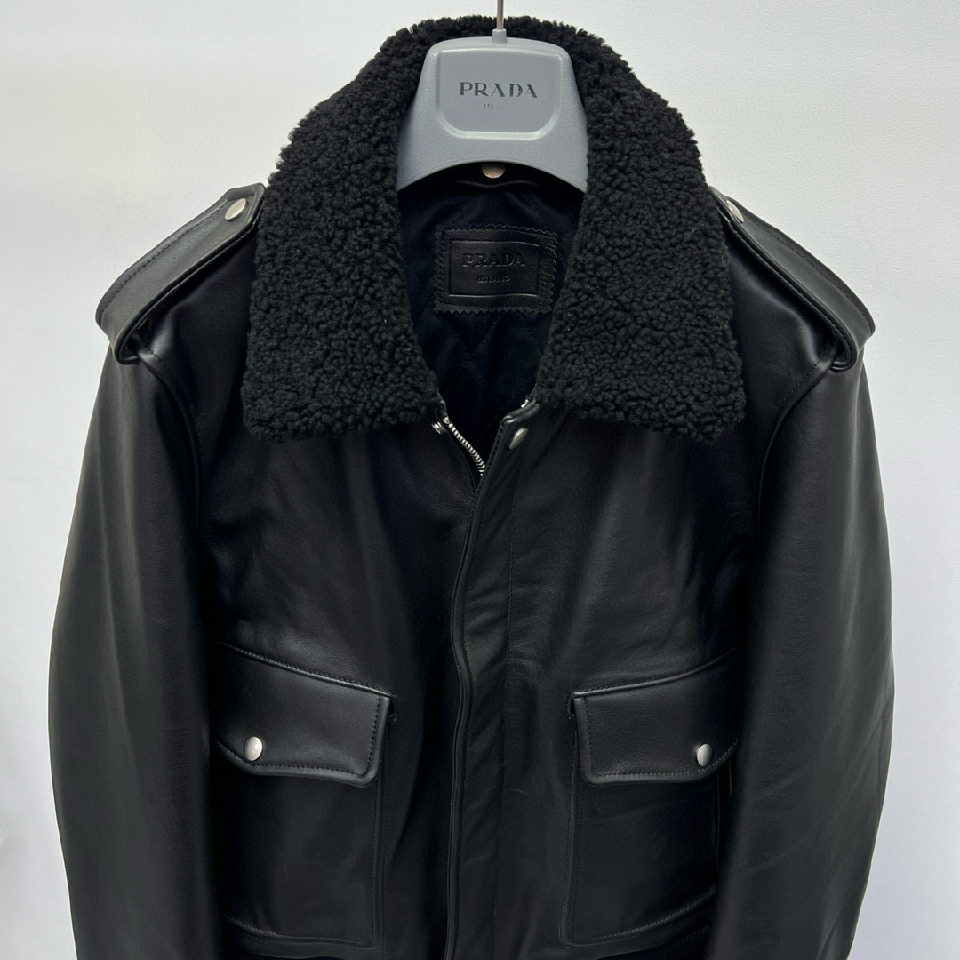 NIGO Prada Men's Autumn Winter Black Hair Collar Zip Leather Long Sleeve Jacket #nigo99477