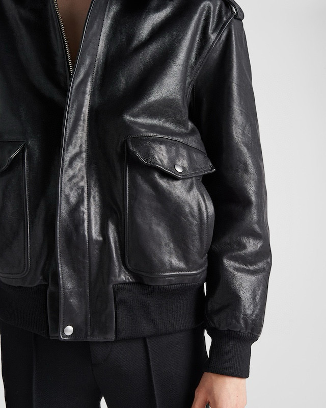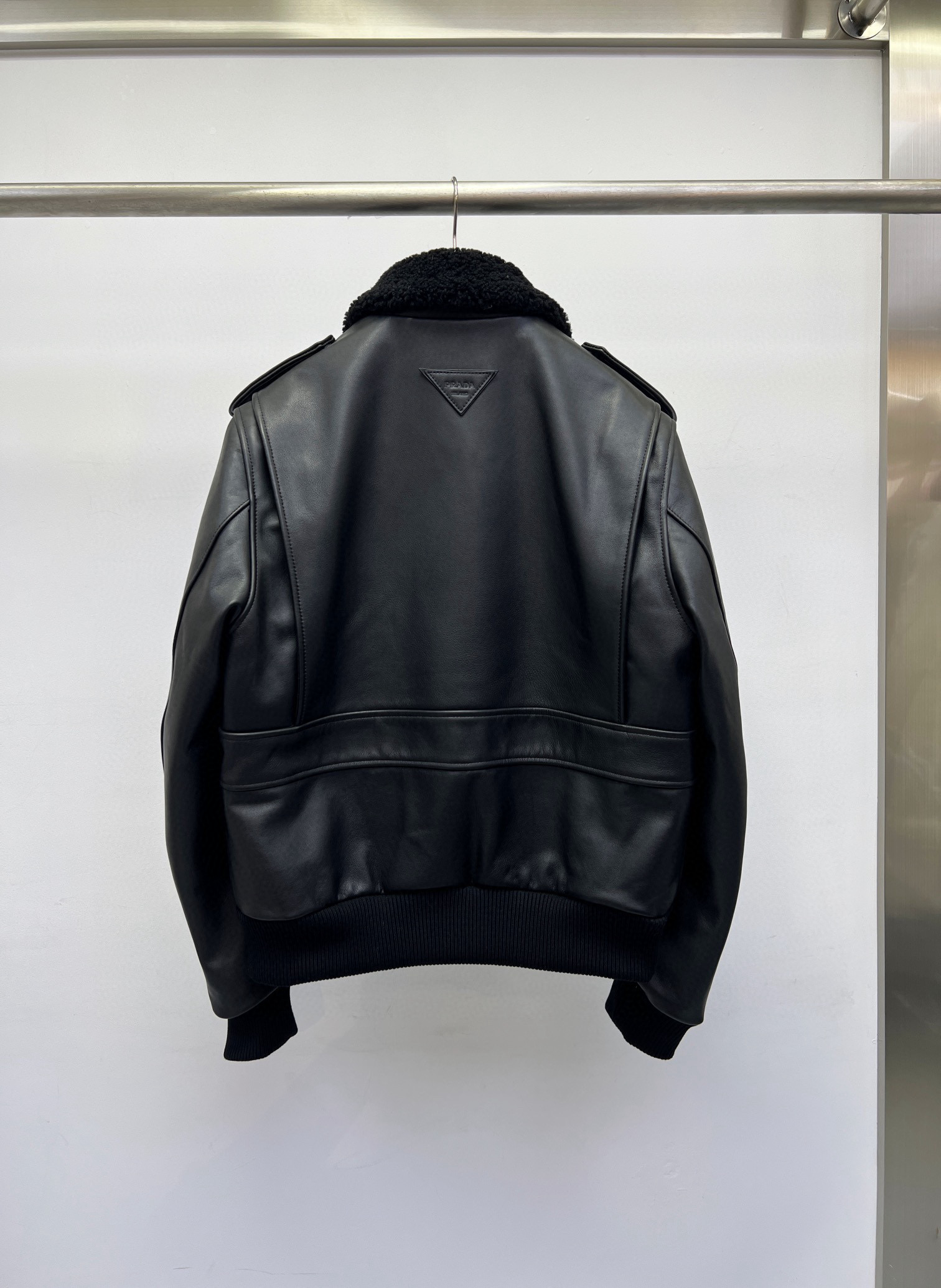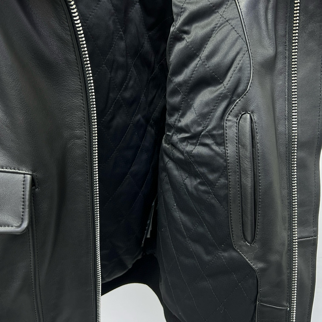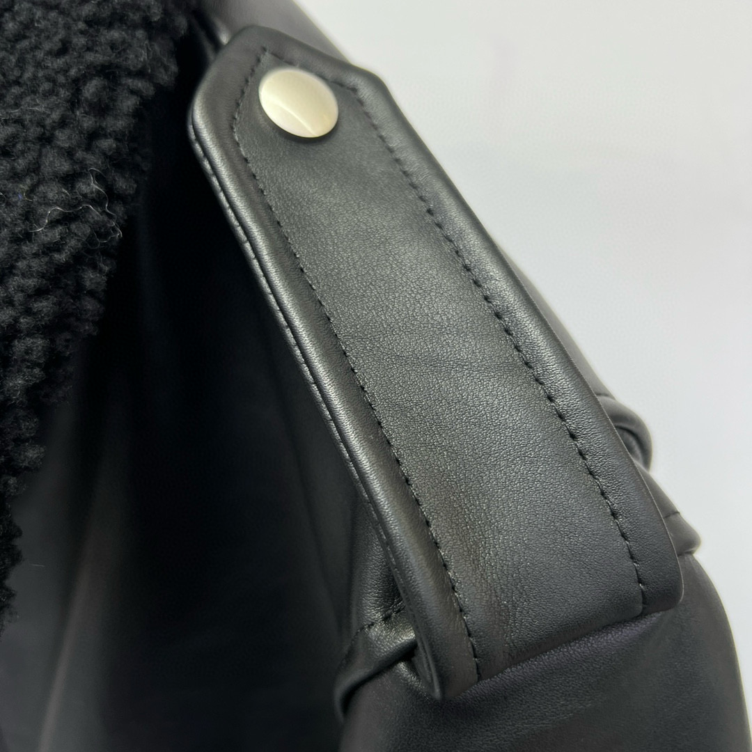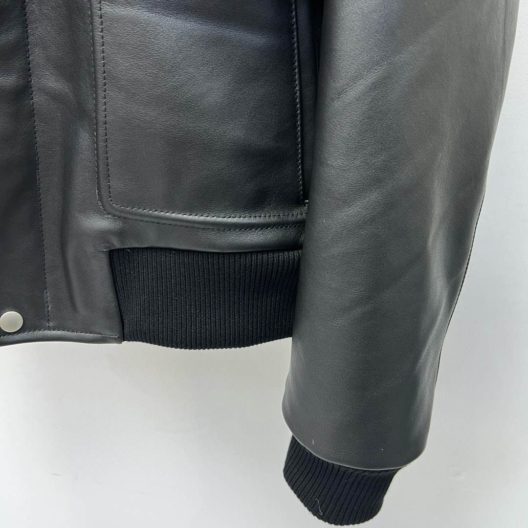 NIGO Prada Men's Autumn Winter Black Hair Collar Zip Leather Long Sleeve Jacket #nigo99477