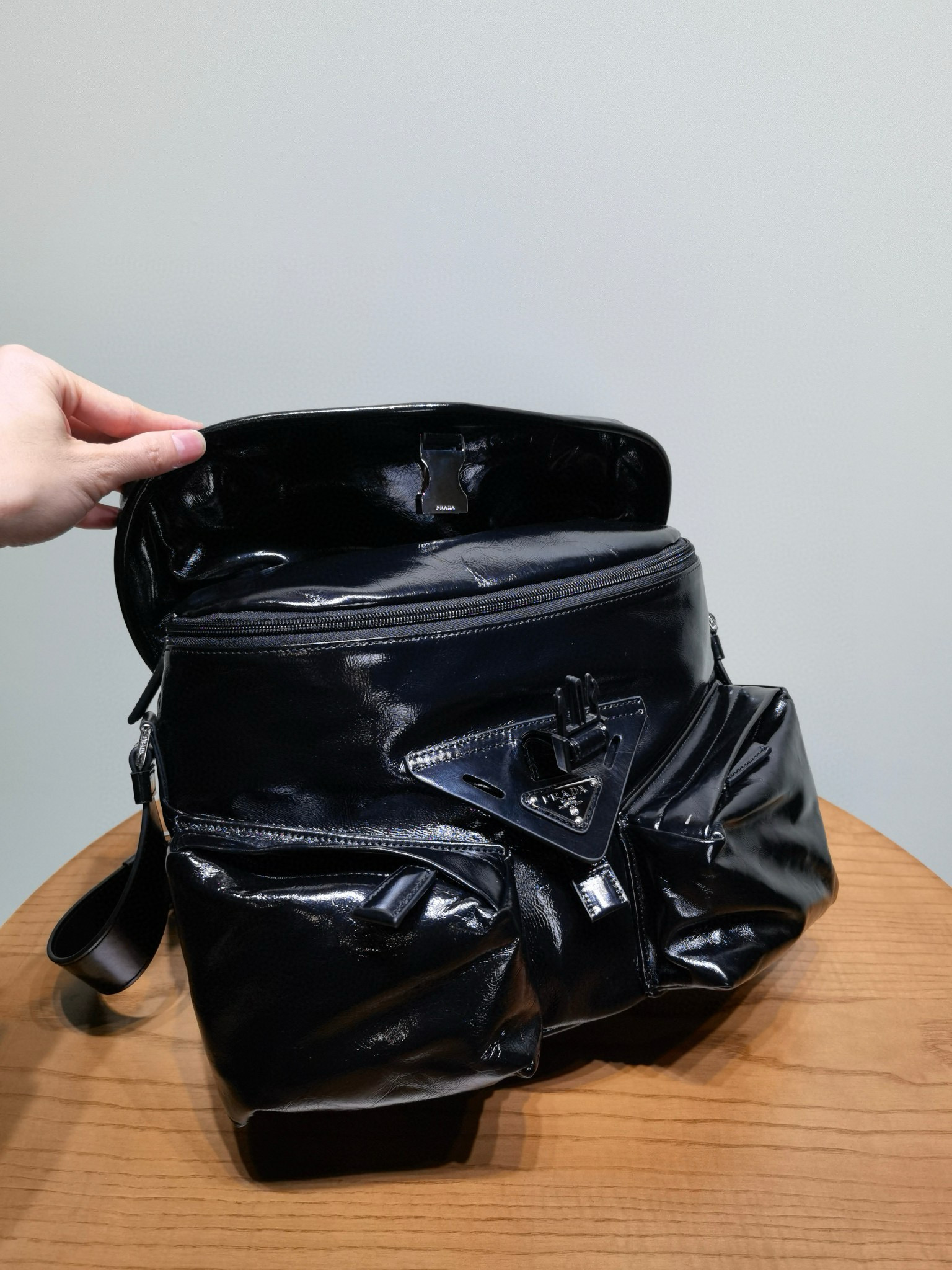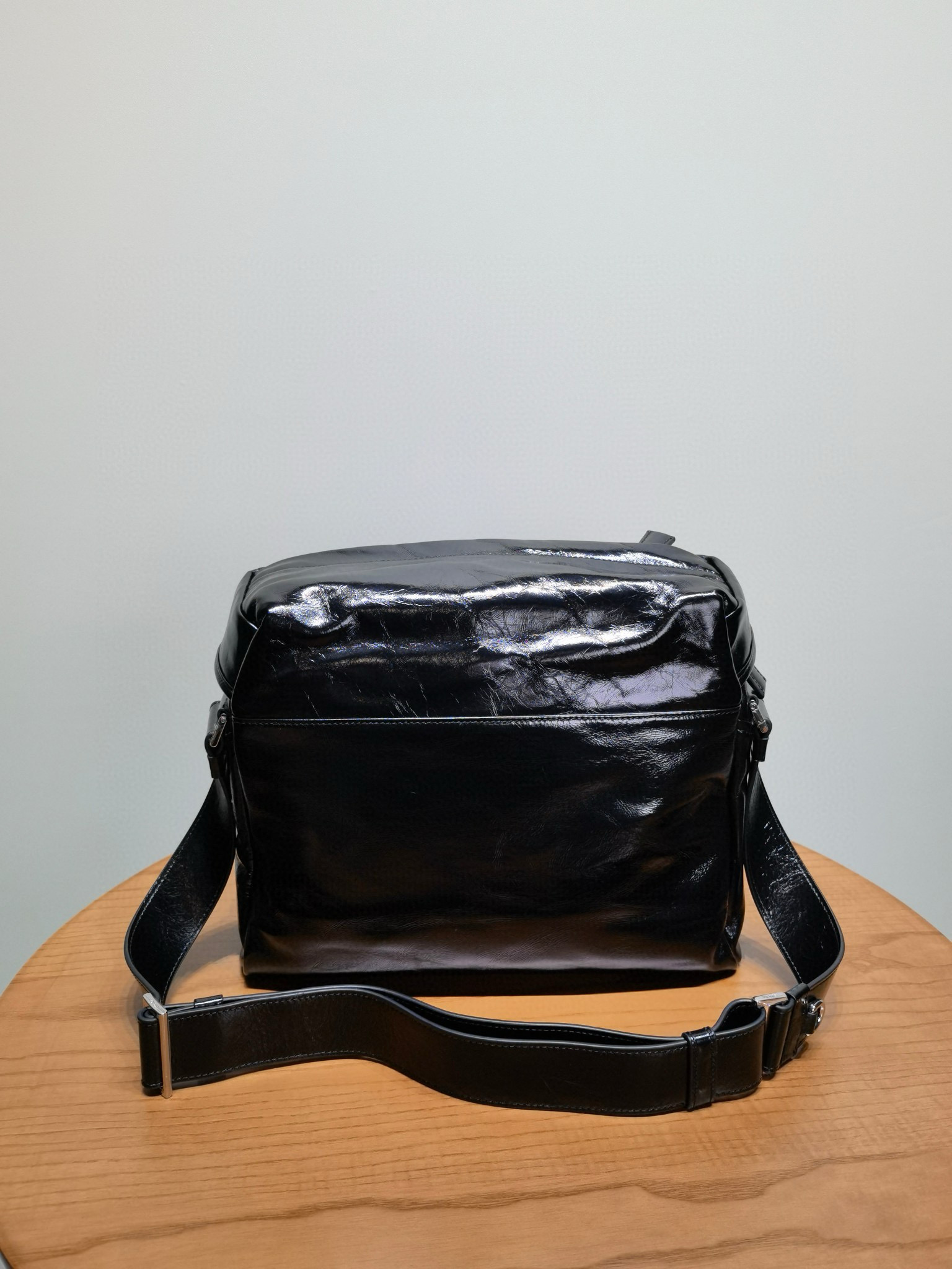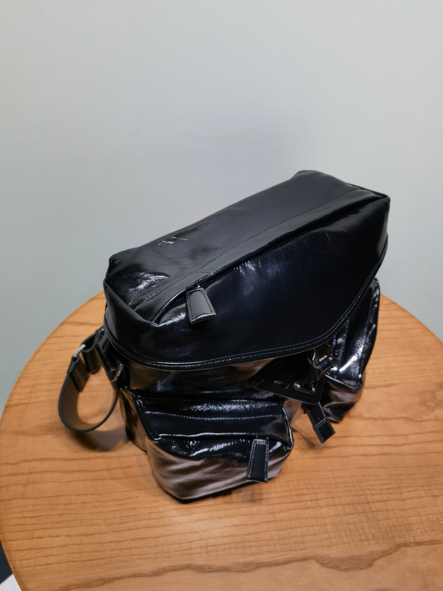 NIGO Prada Men's Black Triangle Label Metal Logo Leather Crossbody Shoulder Bag Bags #nigo98744