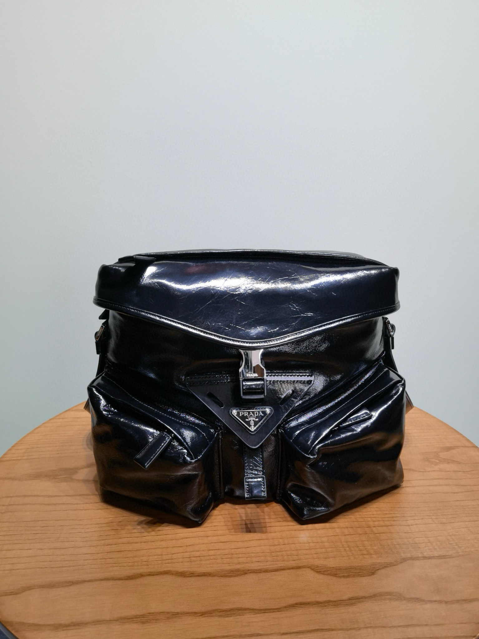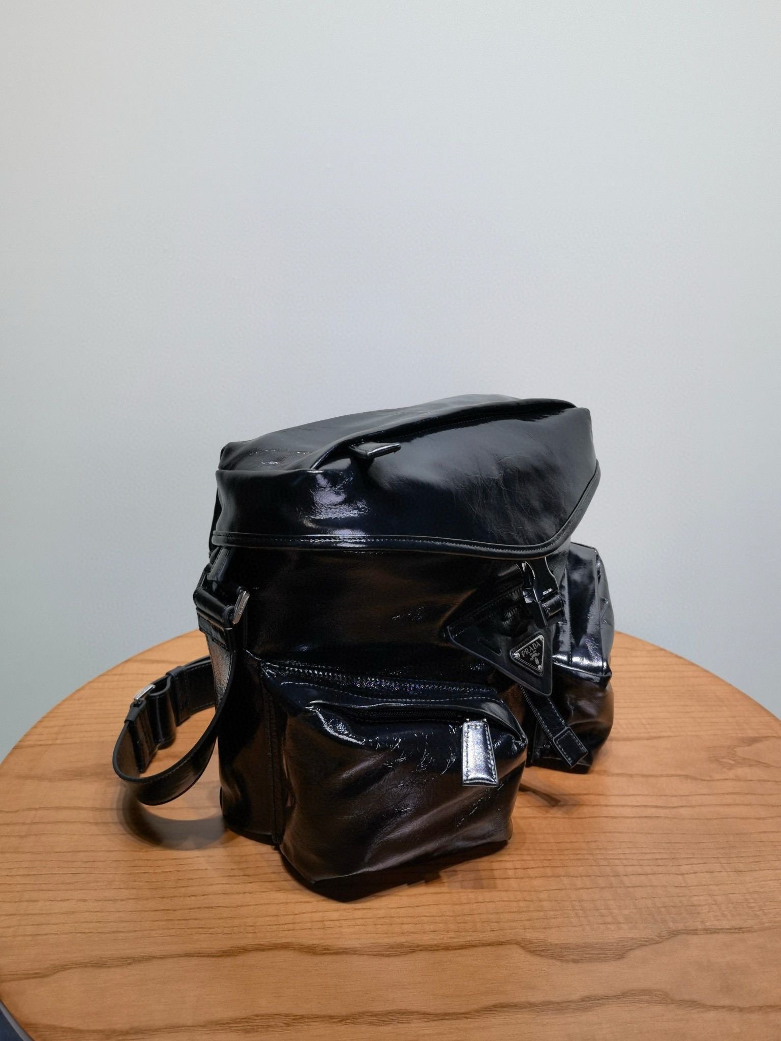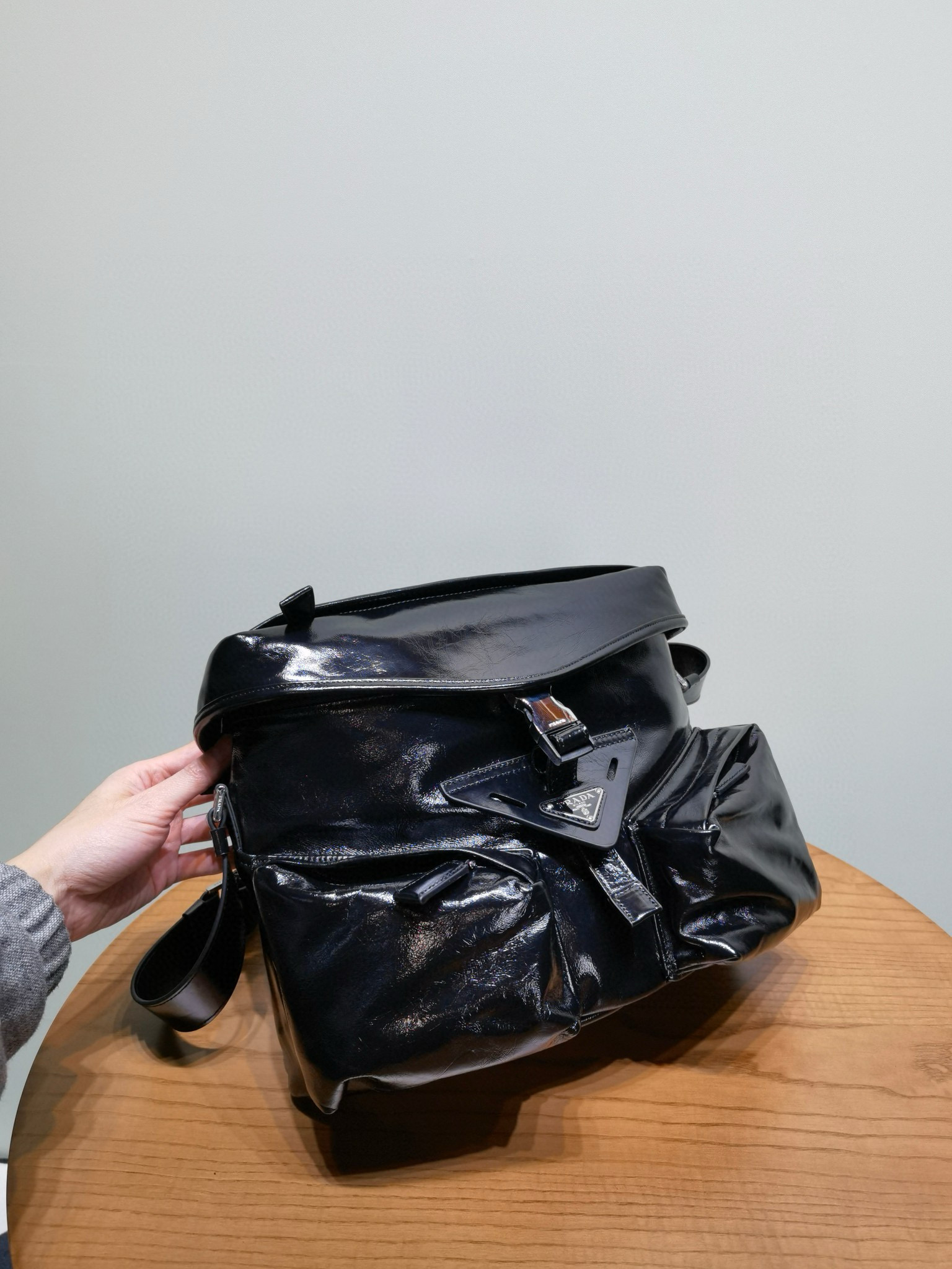 NIGO Prada Men's Black Triangle Label Metal Logo Leather Crossbody Shoulder Bag Bags #nigo98744