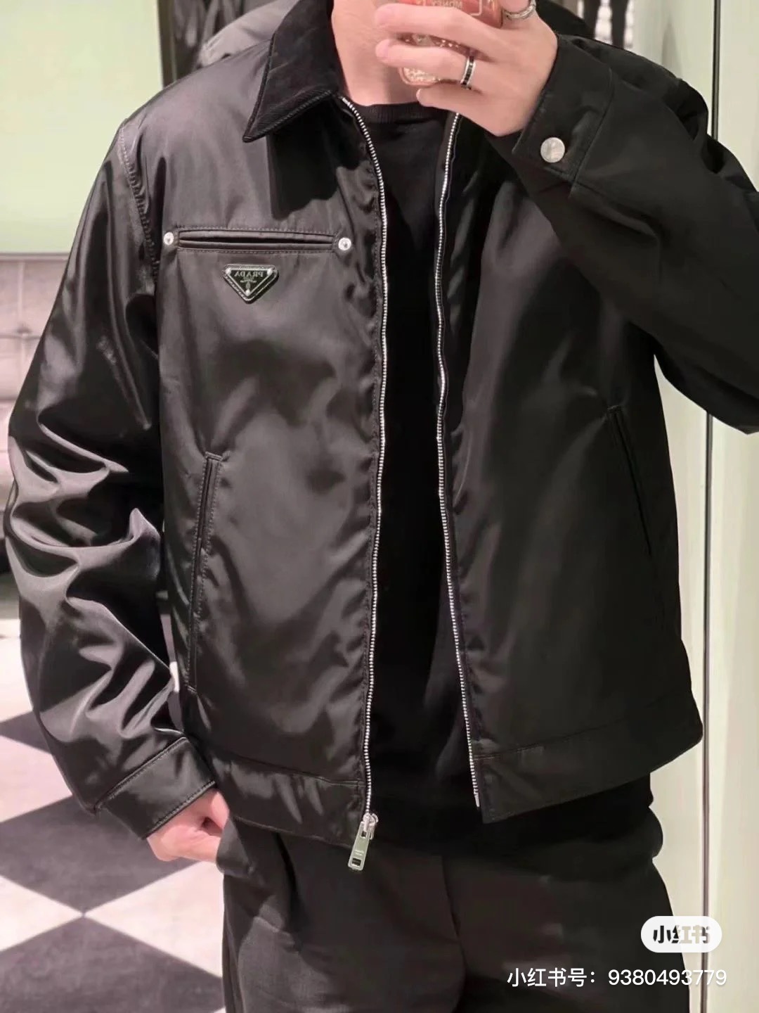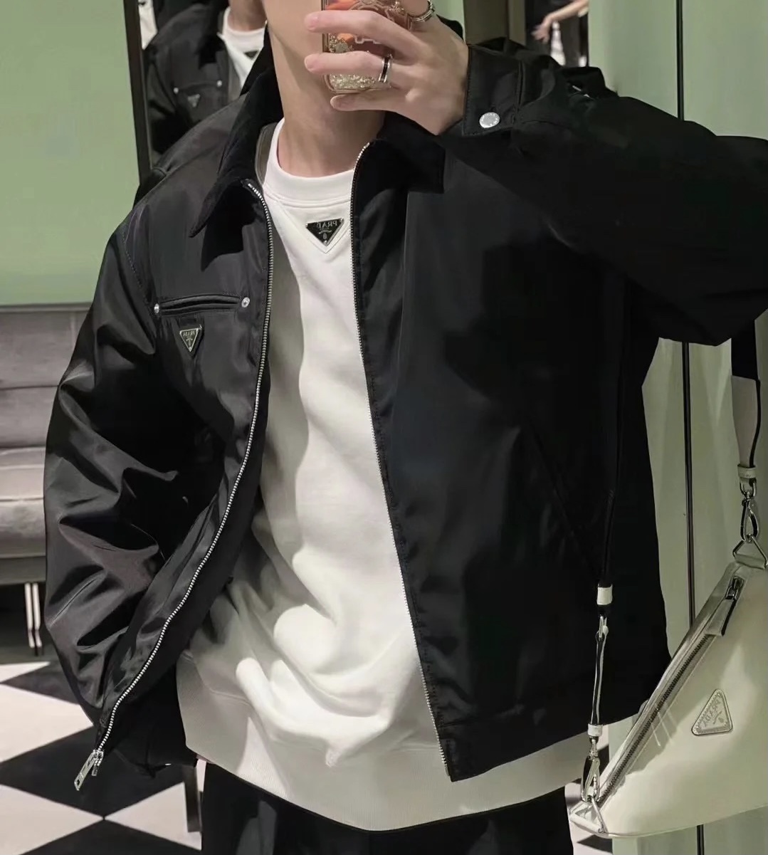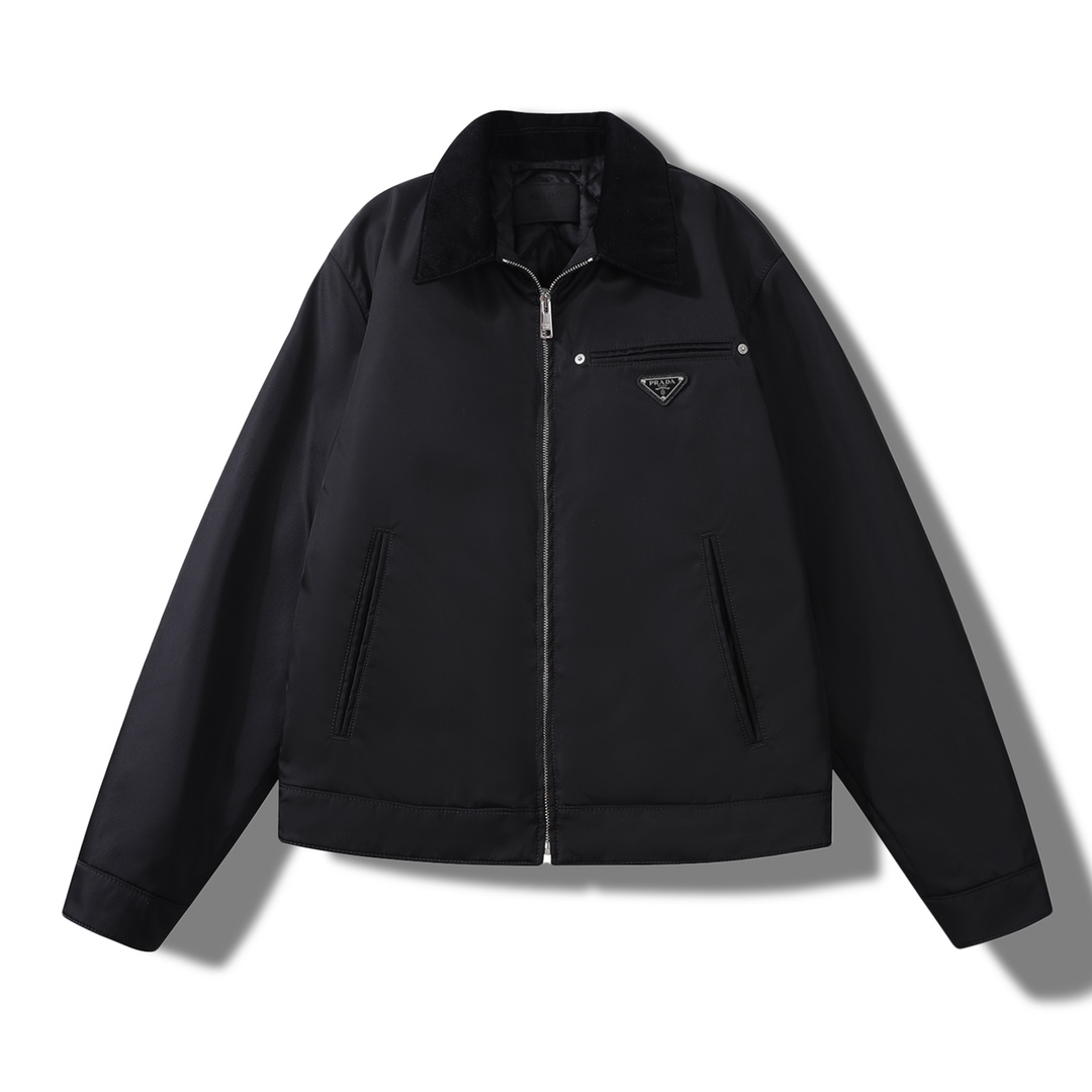NIGO Prada Men's Fall And Winter Black Nylon With Corduroy Zipper Long Sleeved Jacket #nigo73321
