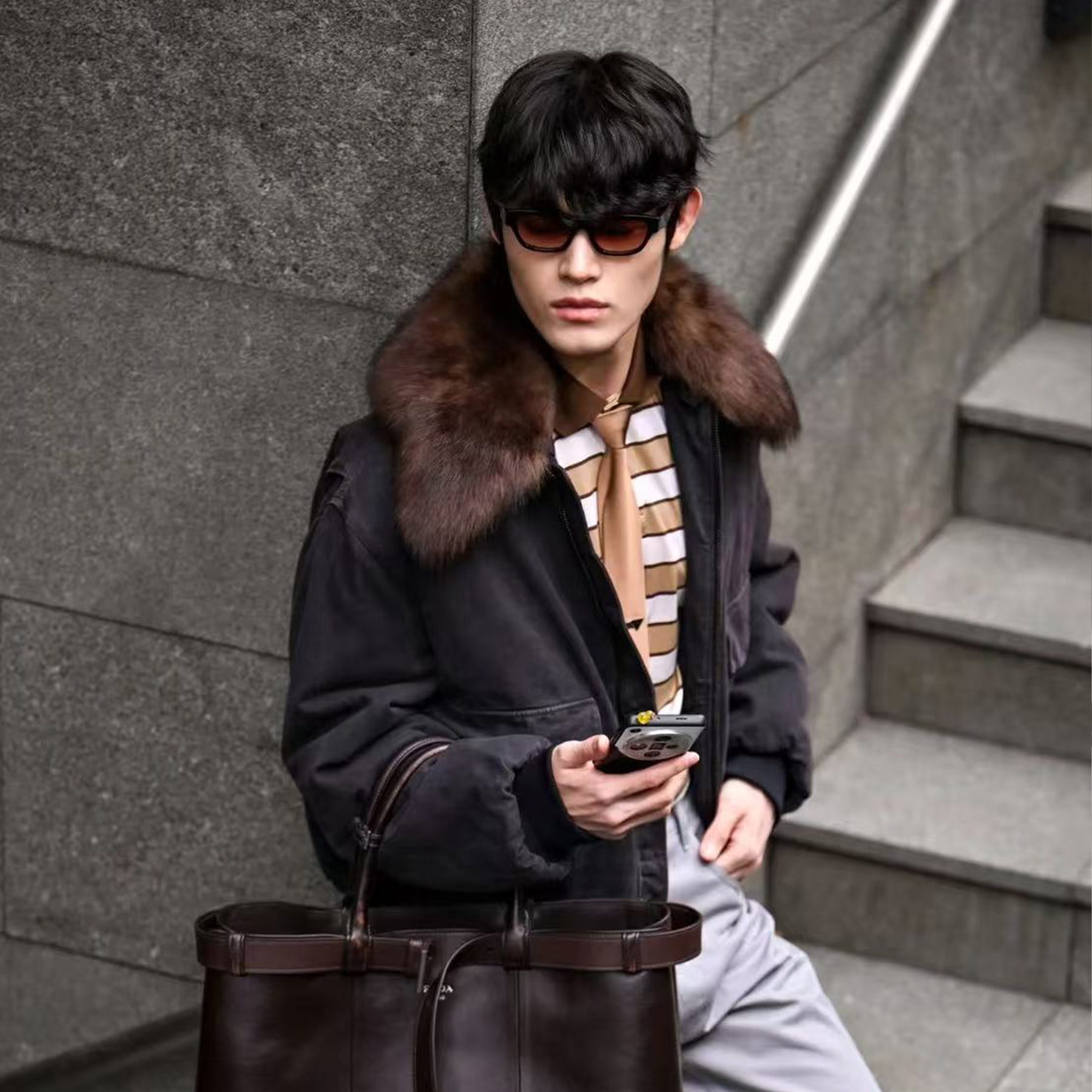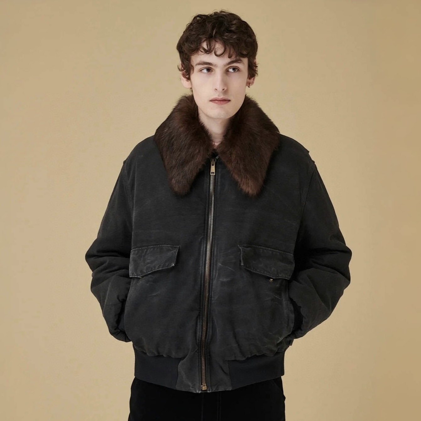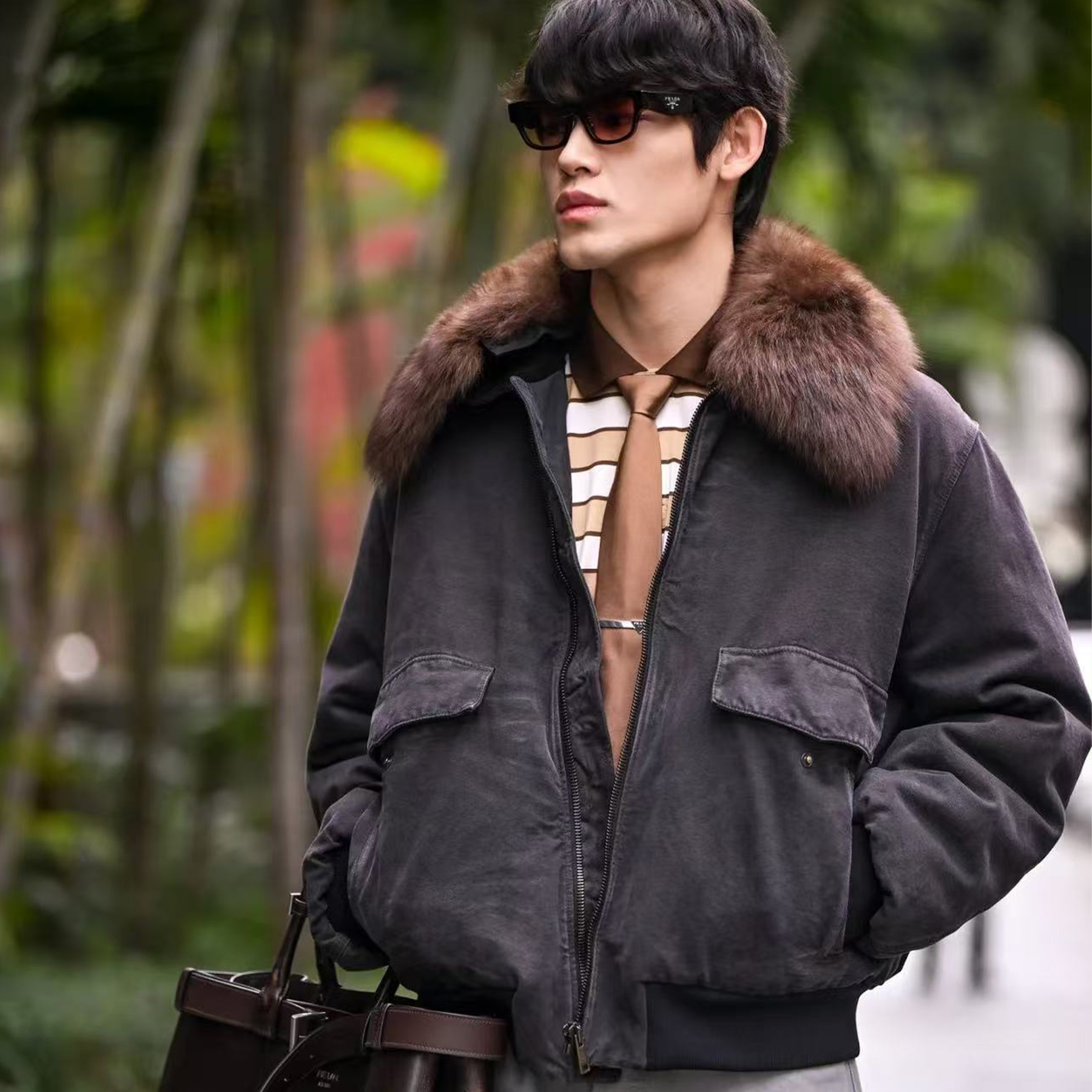 NIGO Prada Men's Fall And Winter Hair Collar Black Cotton Jacket Fashion Trend Warm Casual Zipper Short Jacket Coat Ngvp #nigo2196