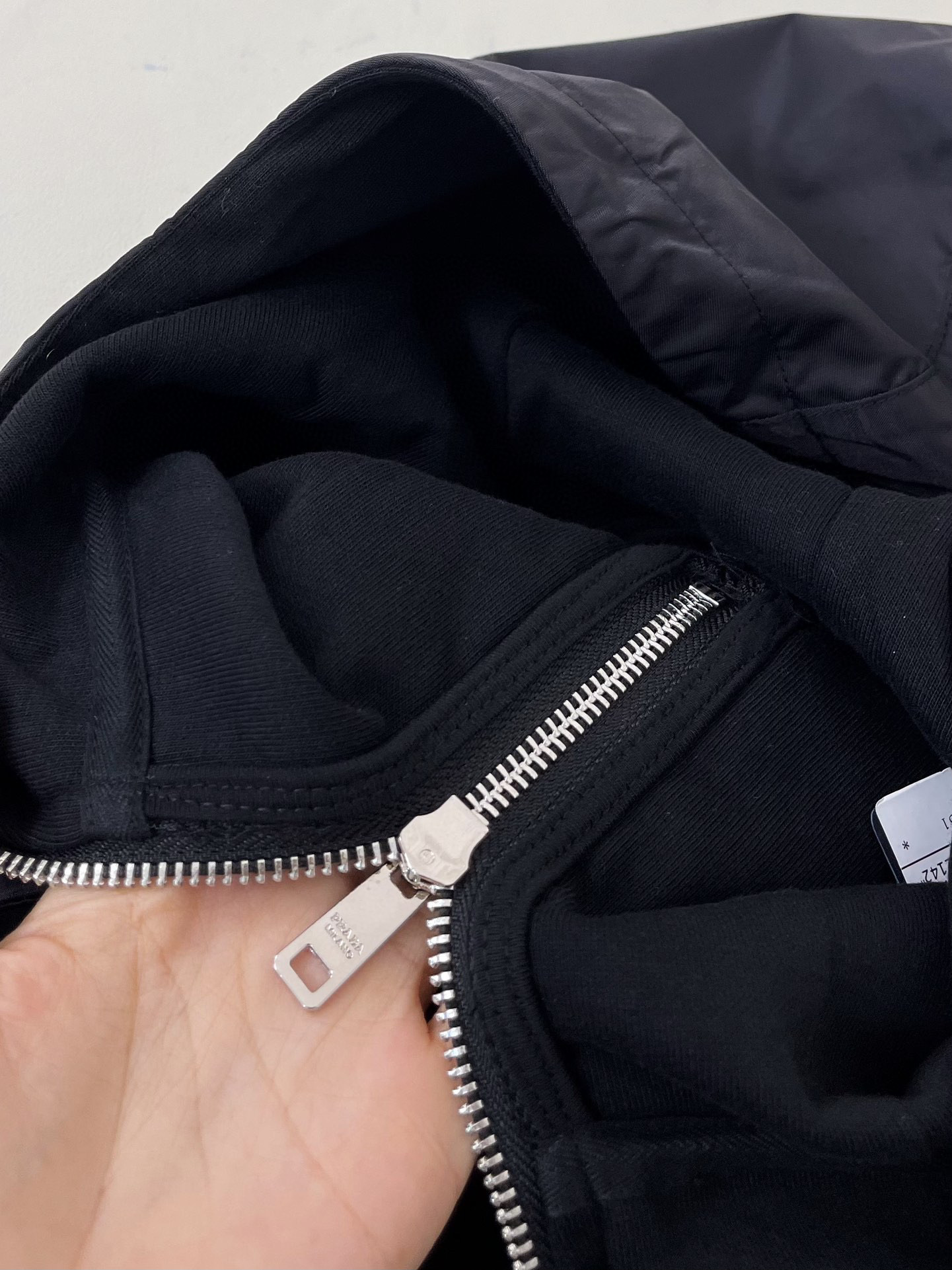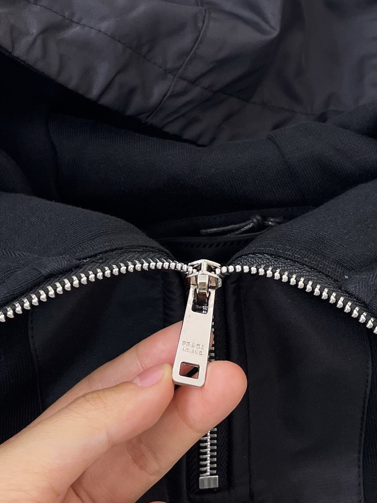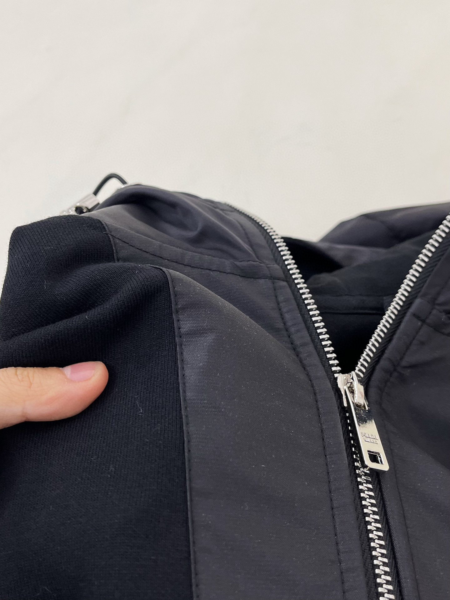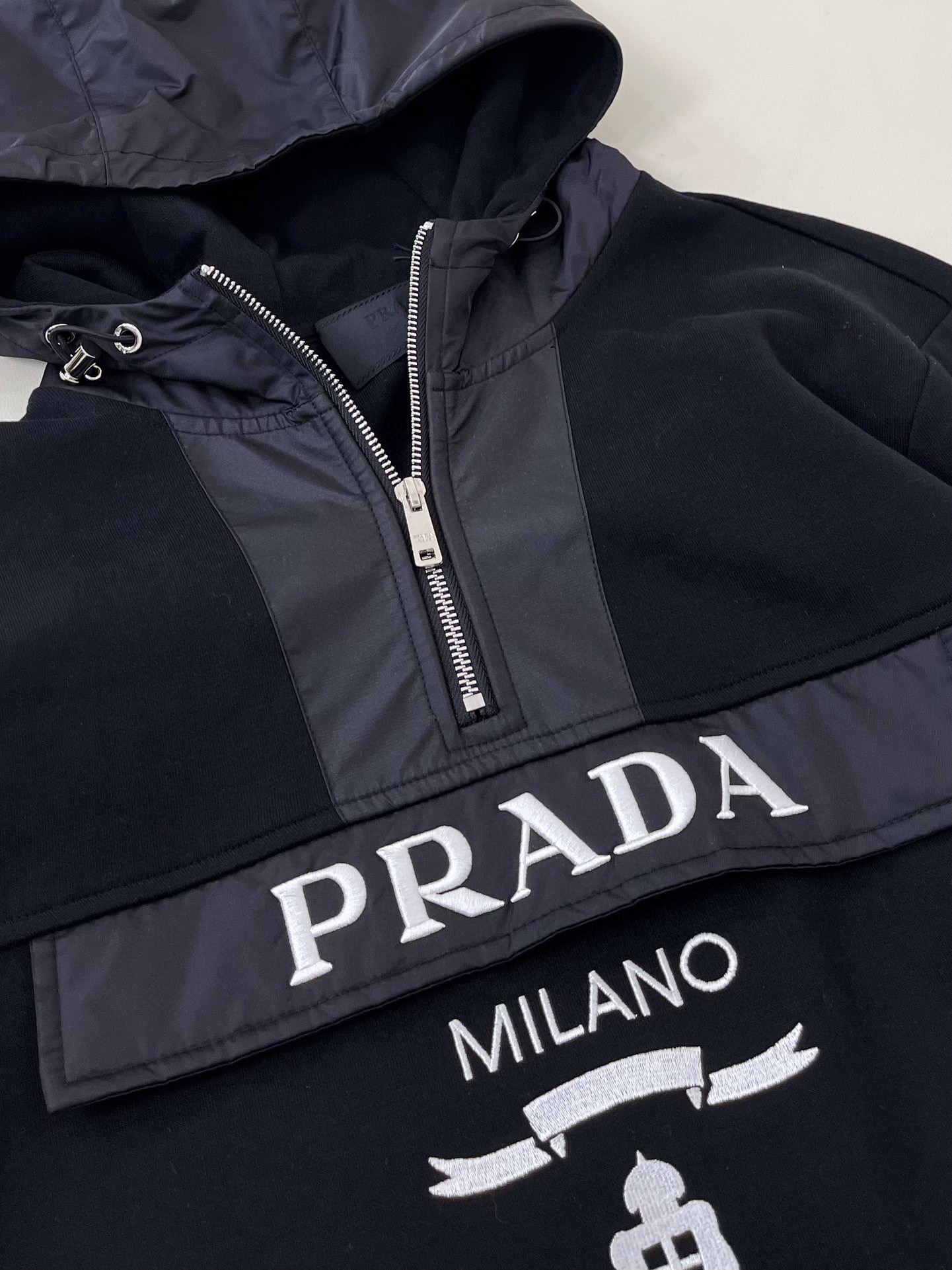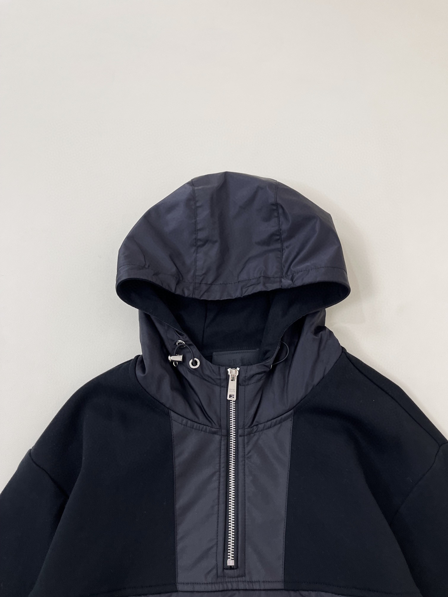 NIGO Prada Men's Fall Black Cotton Nylon Patchwork Half Zip Hoodie #nigo96985