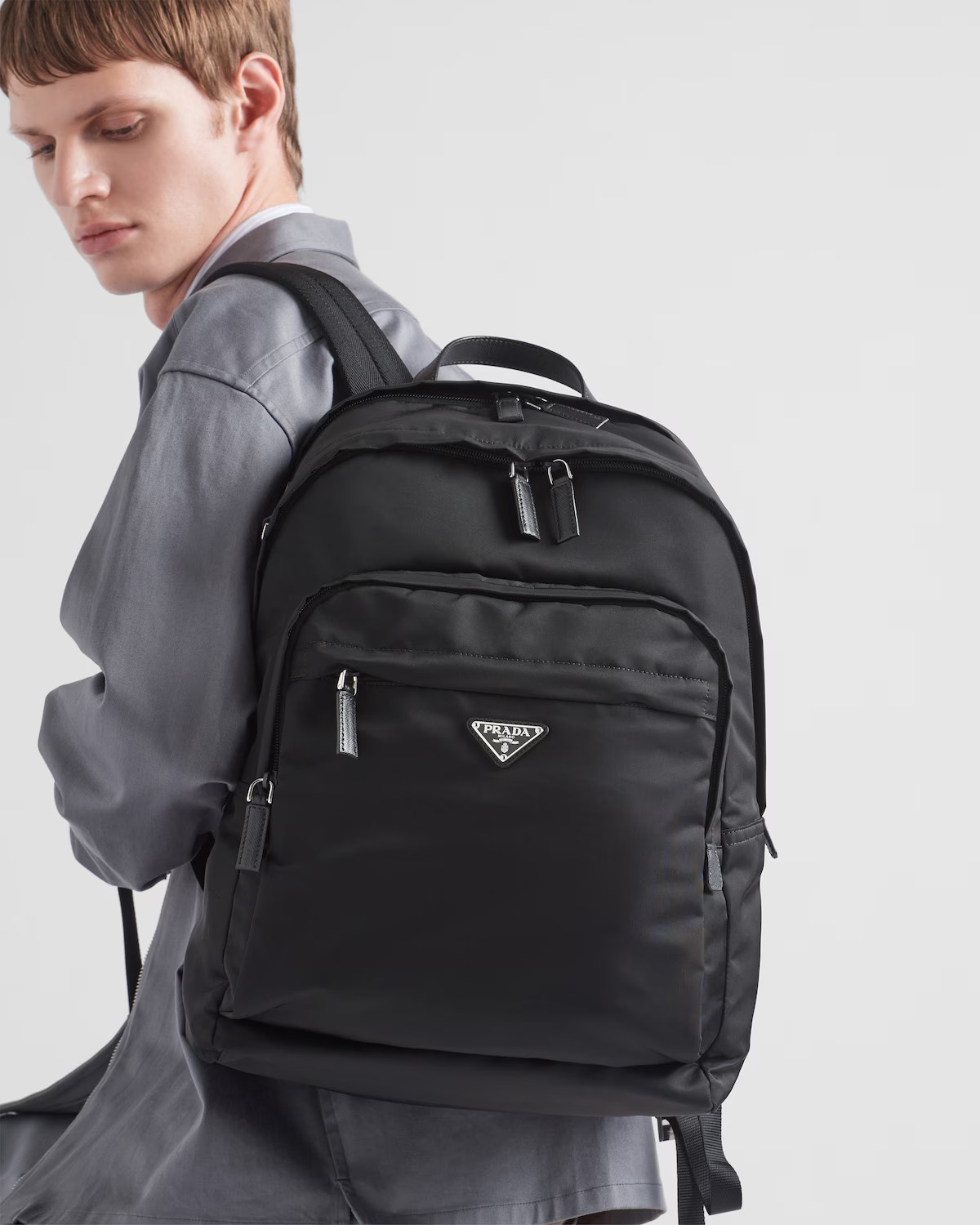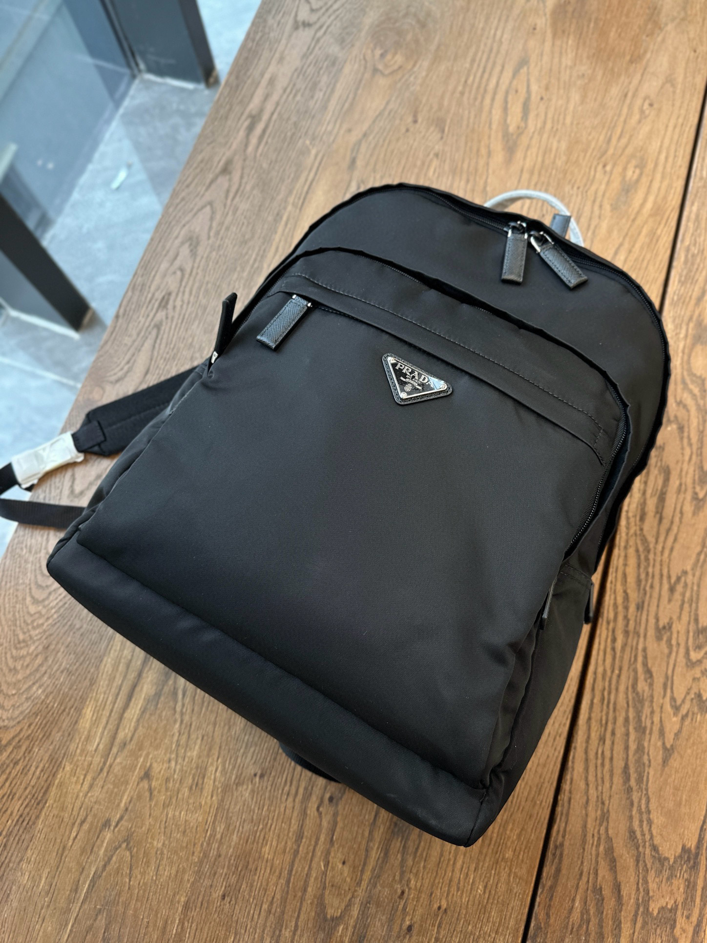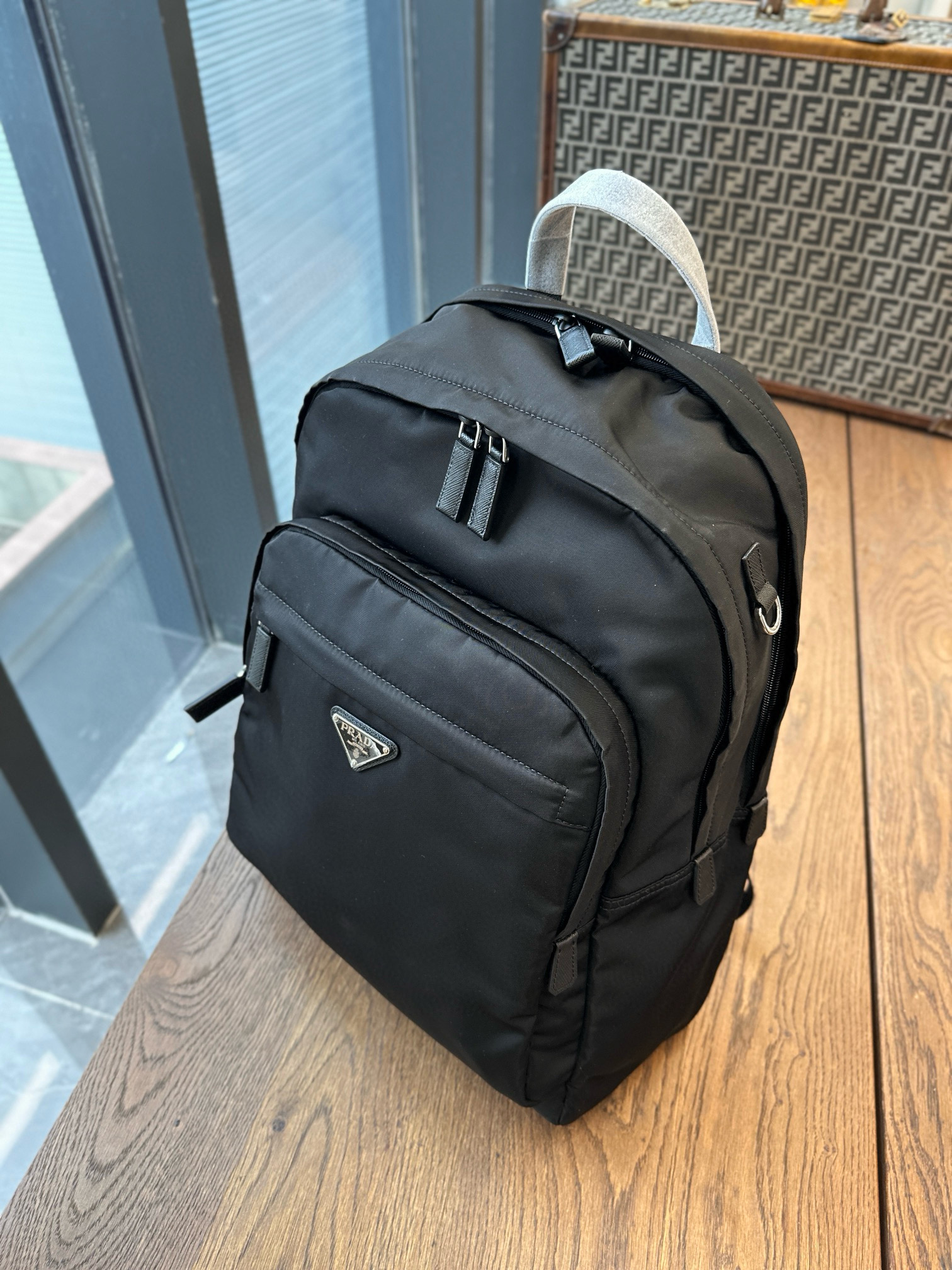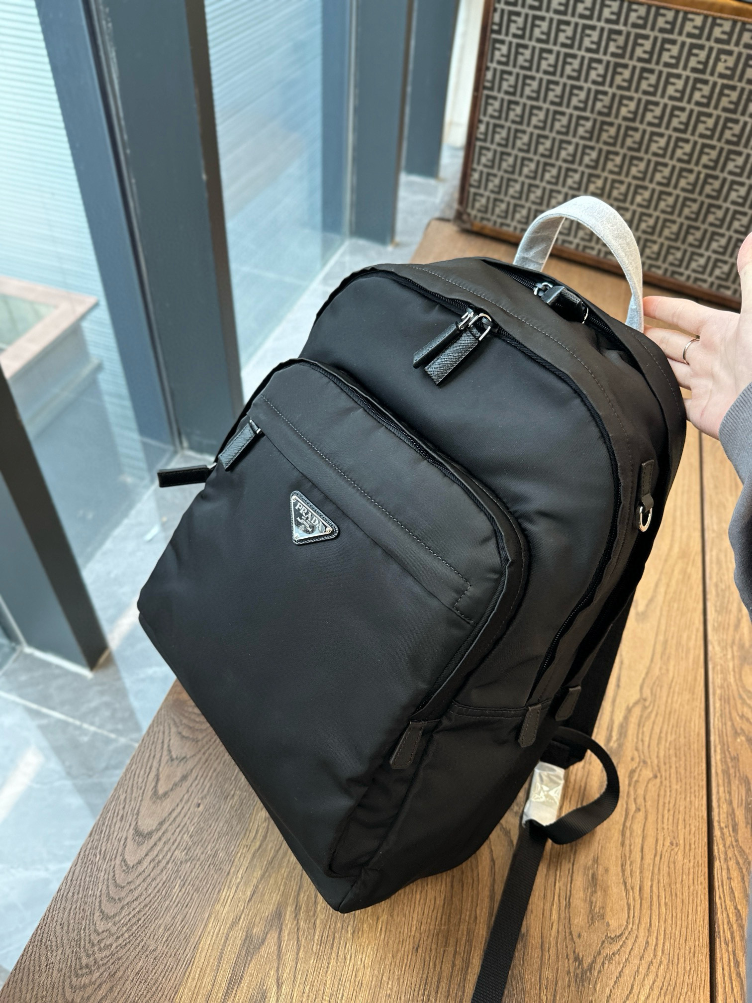 NIGO Prada Men's Fashion Metal Logo Casual Black Re-Nylon With Saffiano Leather Backpack Shoulder Bag #nigo71435