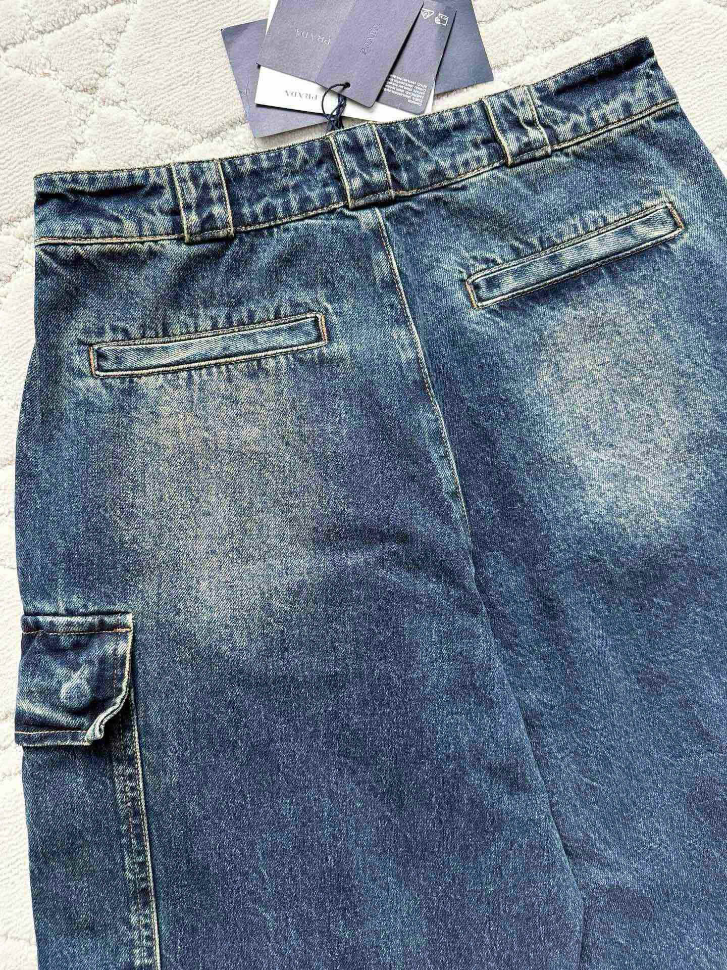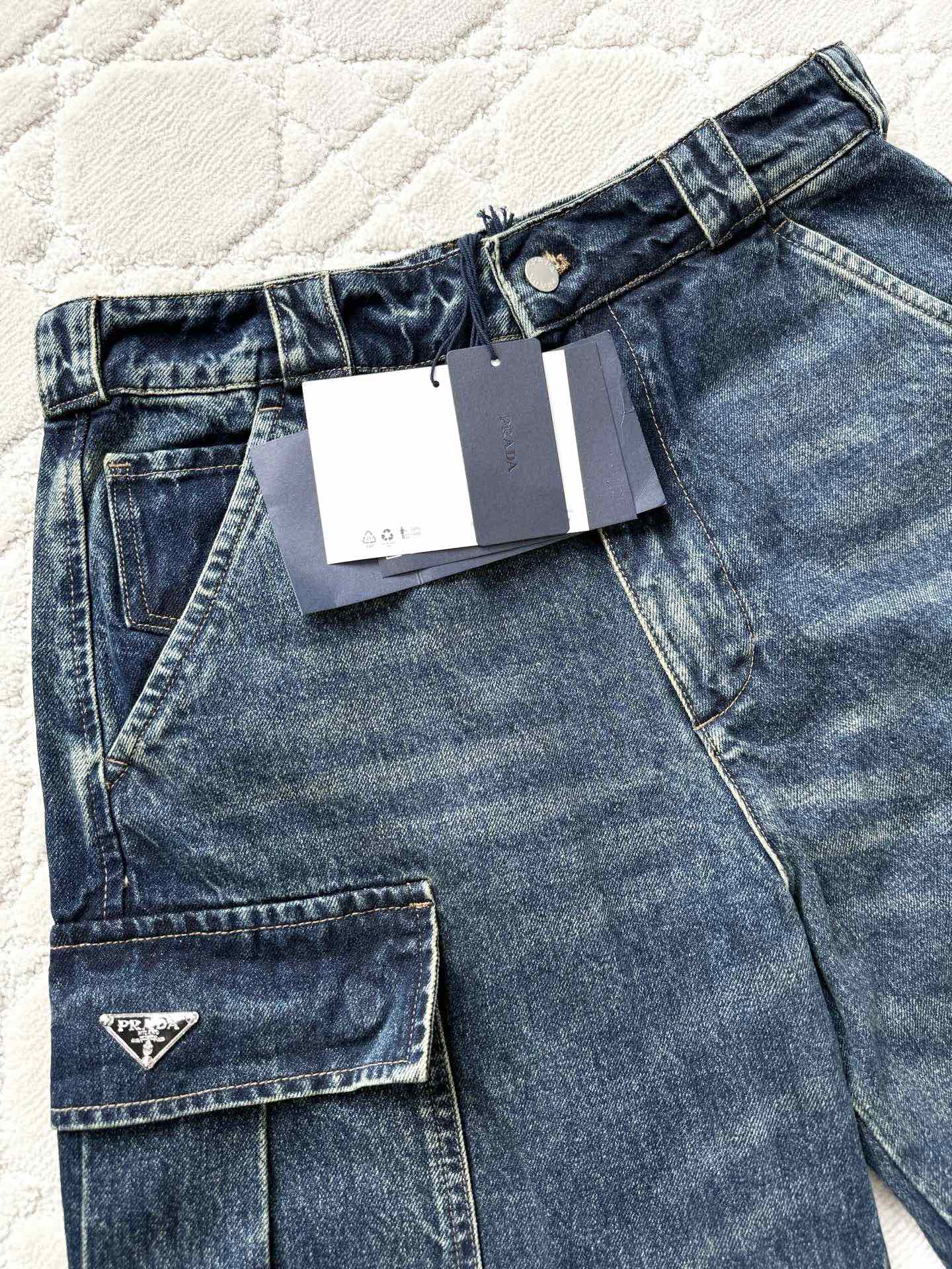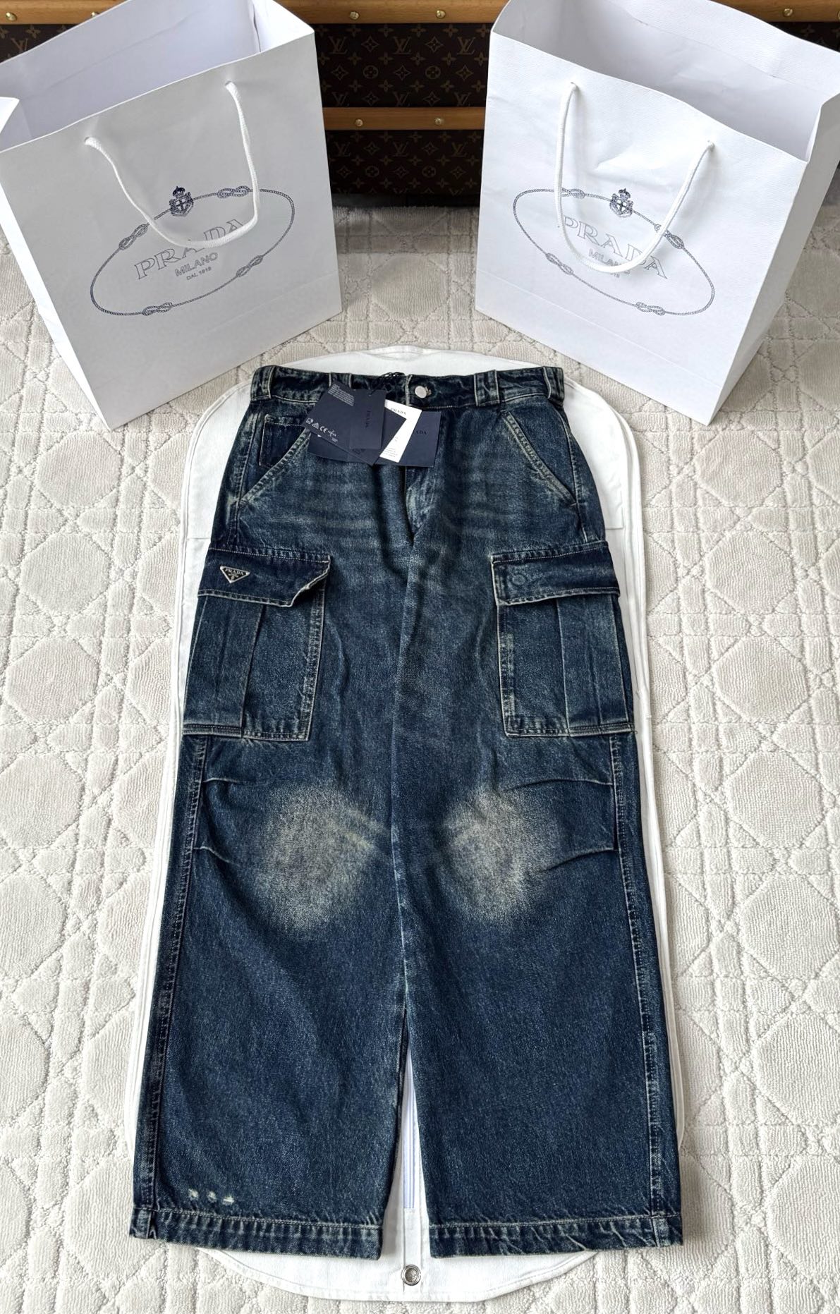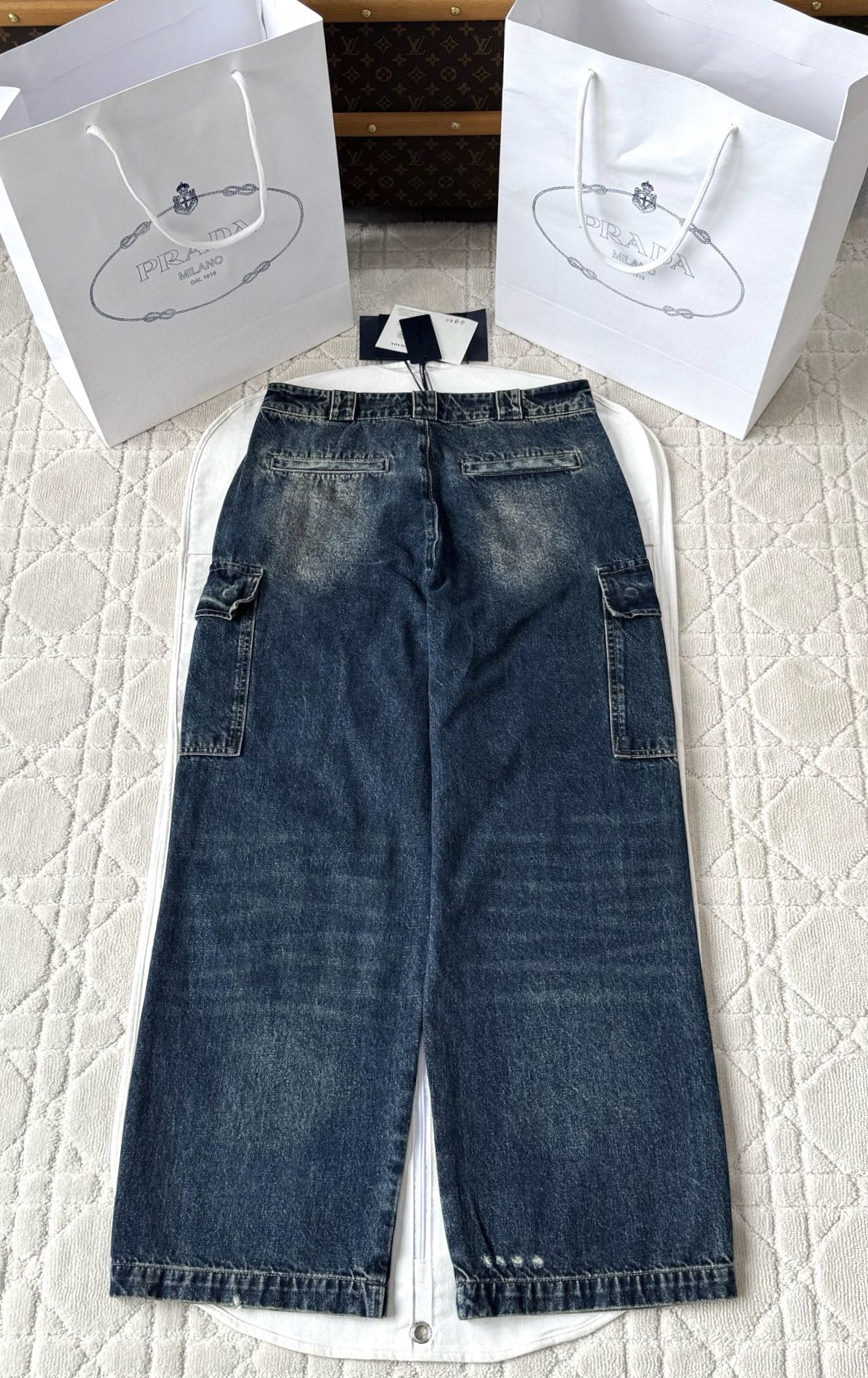 NIGO Prada Men's Four Seasons Logo Old Multi-Pocket Mid-Rise Loose Work Pants Cotton Denim Trousers Pants #nigo81198