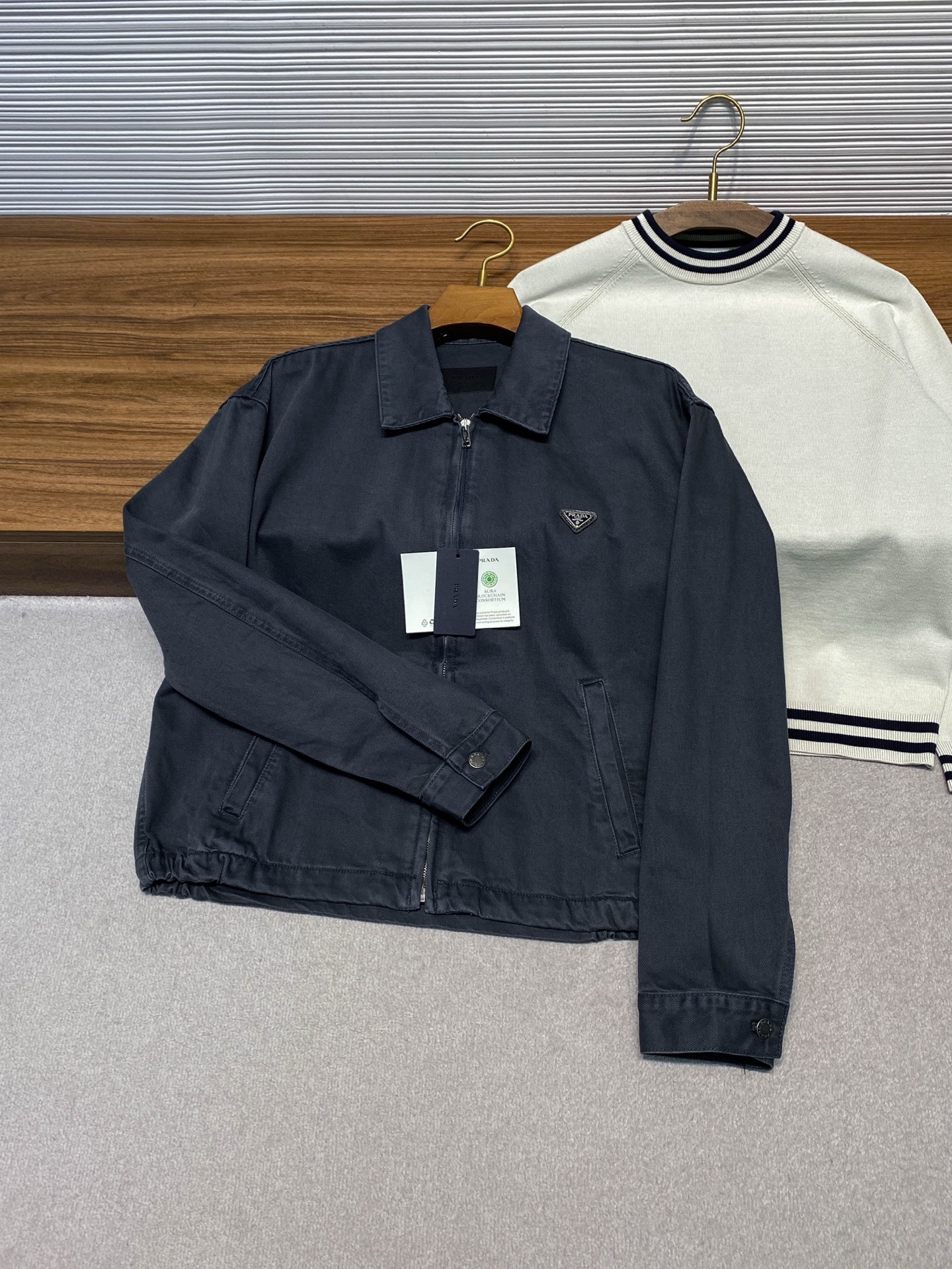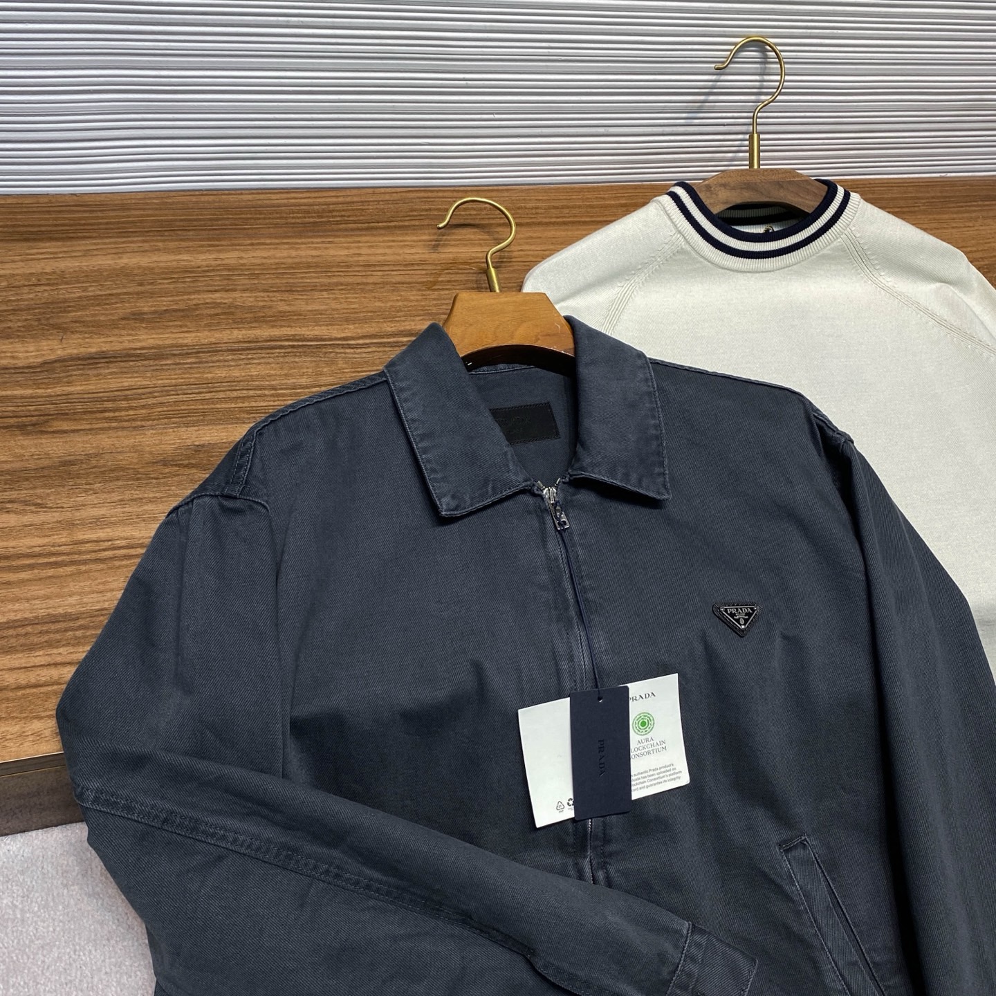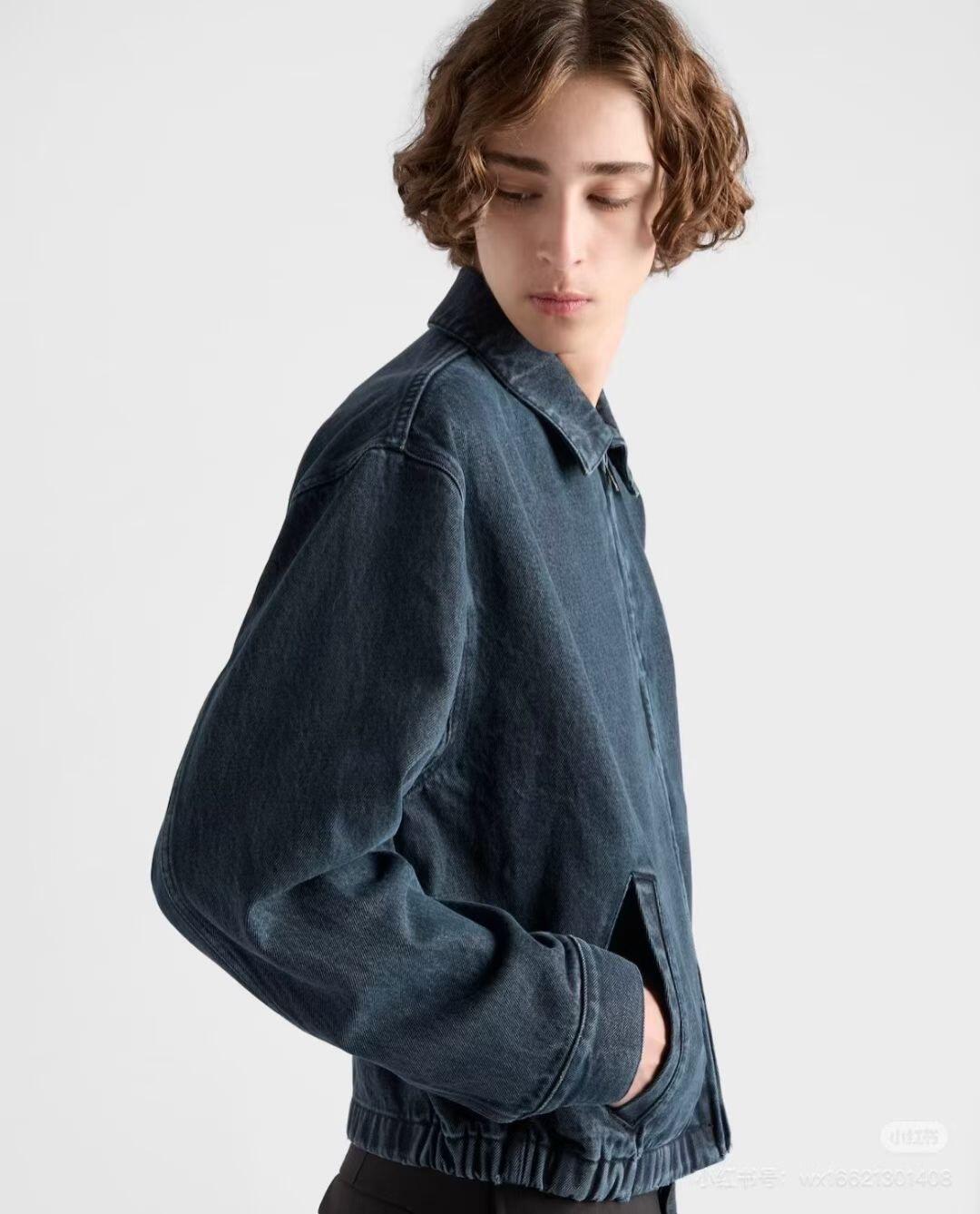 NIGO PRADA Men's Obsidian Denim Bomber Jacket Shirt-collar Zip-up Logo Long-sleeve Denim Jacket #nigo332258