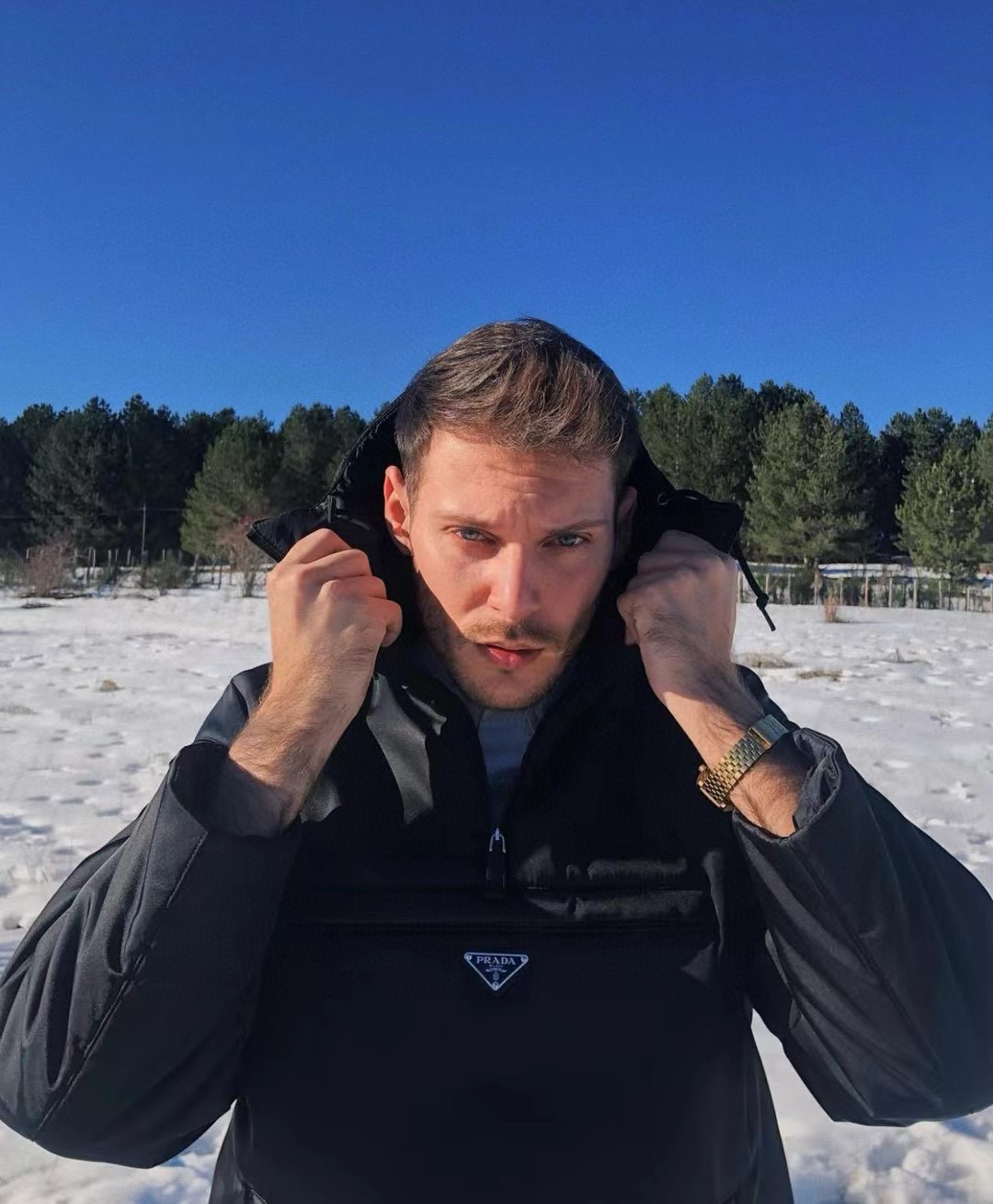 NIGO Prada Men's Spring and Autumn Black Triangle Label Half Zipper Hooded Cotton Jacket #nigo98416