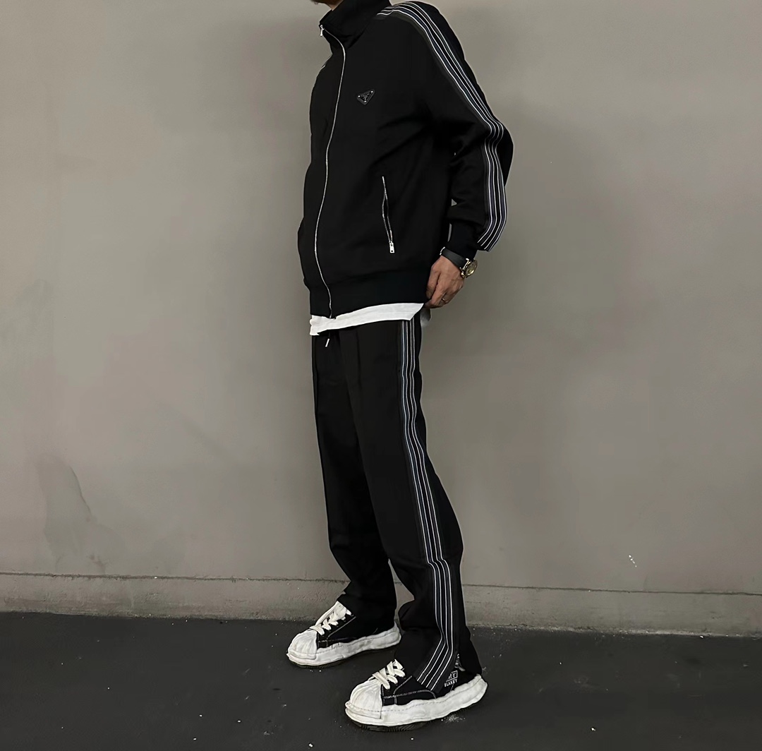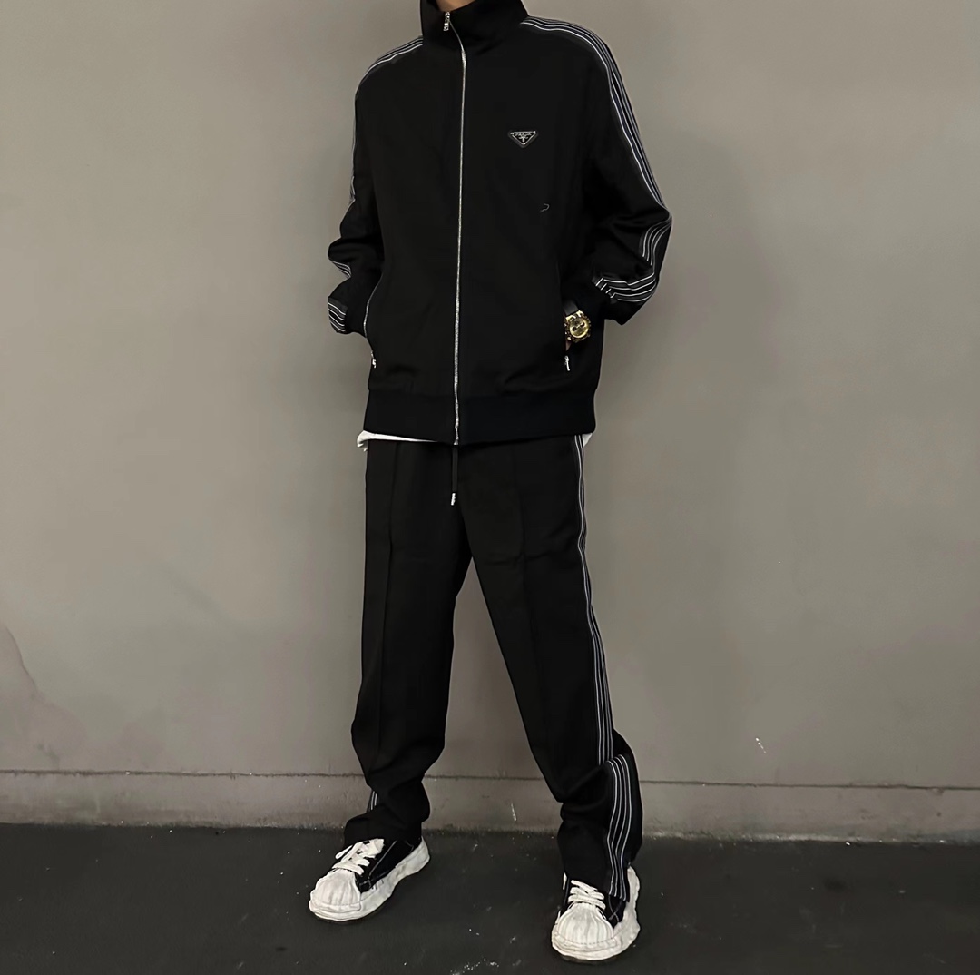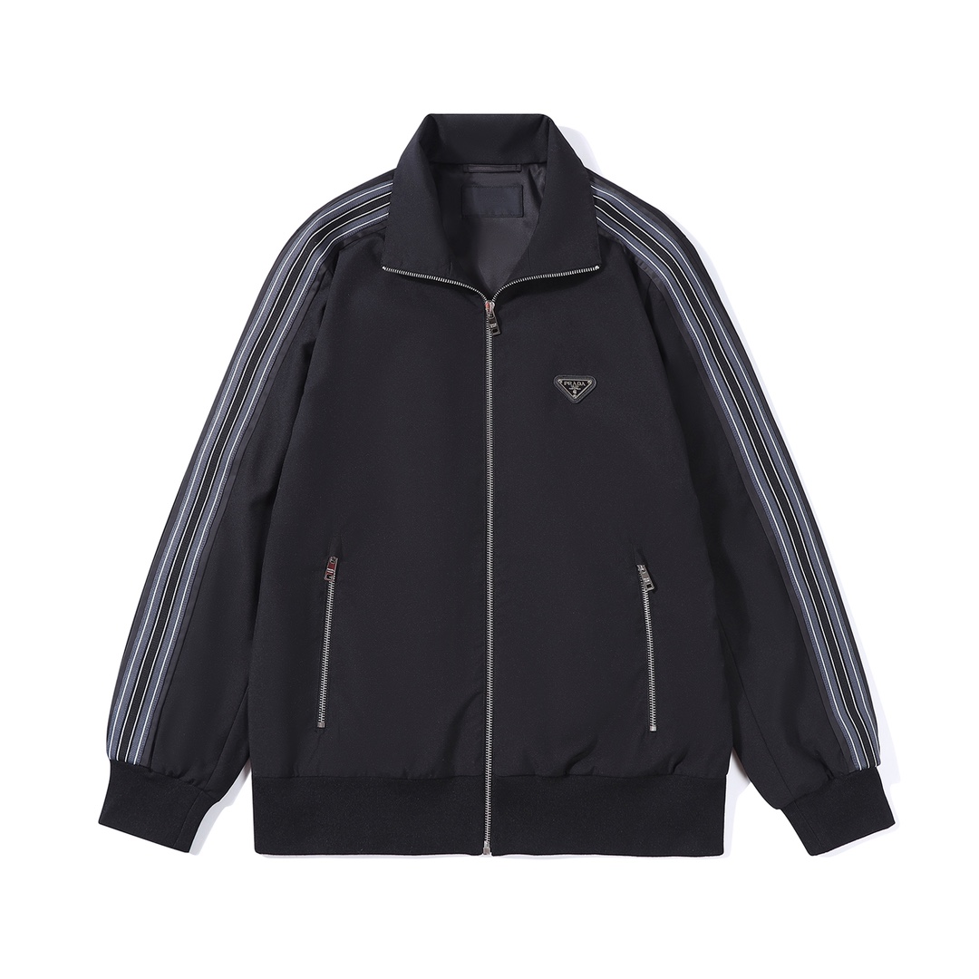 NIGO Prada Men's Spring And Fall Black Striped Single Breasted Zipper Long Sleeved Jacket #nigo73318