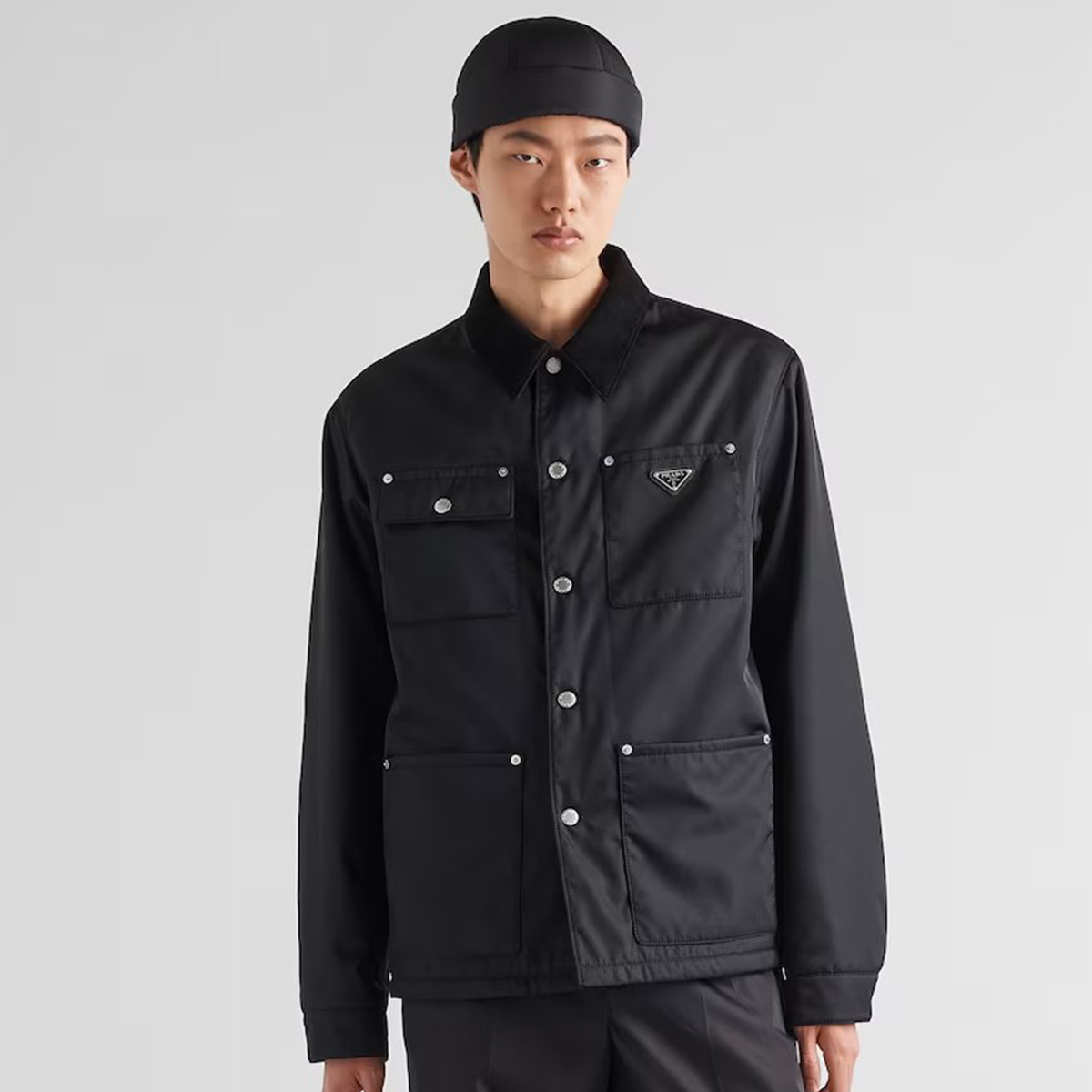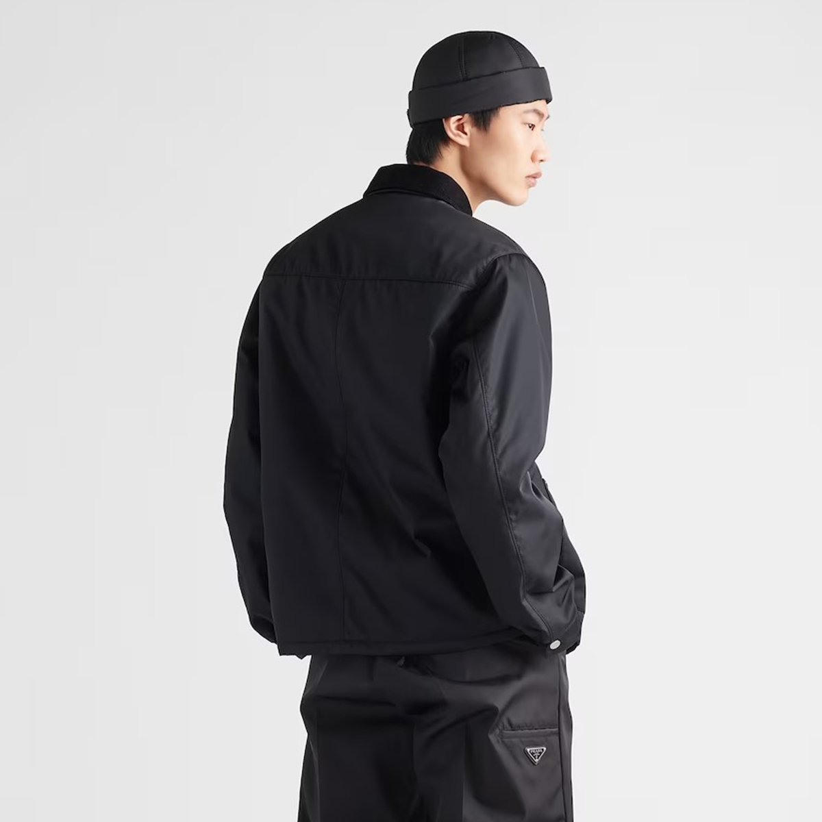 NIGO Prada Men's Spring and Fall Fashion Black Casual Lapel Multi-Pocket Long Sleeve Re-Nylon Drawstring Jacket #nigo98711