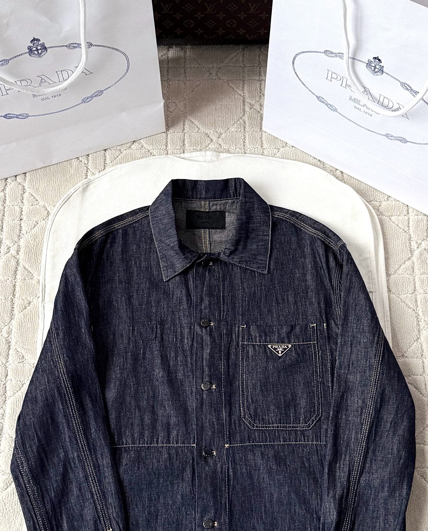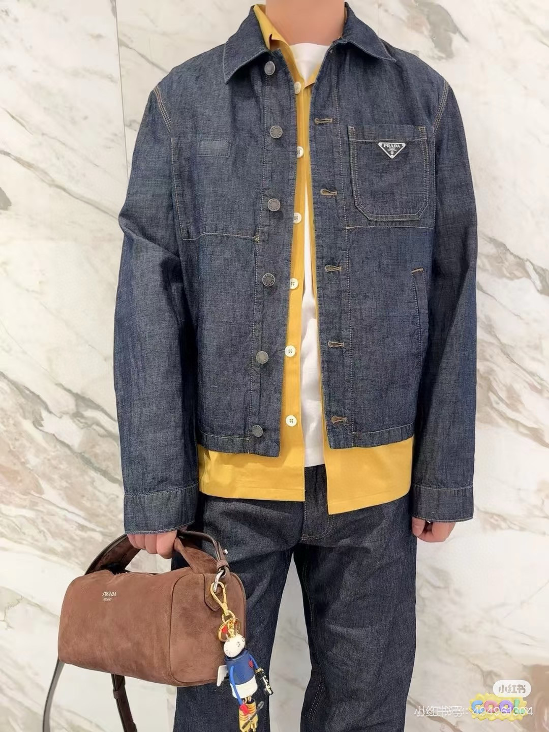 NIGO Prada Men's Spring Autumn Triangle Label Logo Solid Colour Single Breasted Long Sleeve Denim Jacket #nigo76865