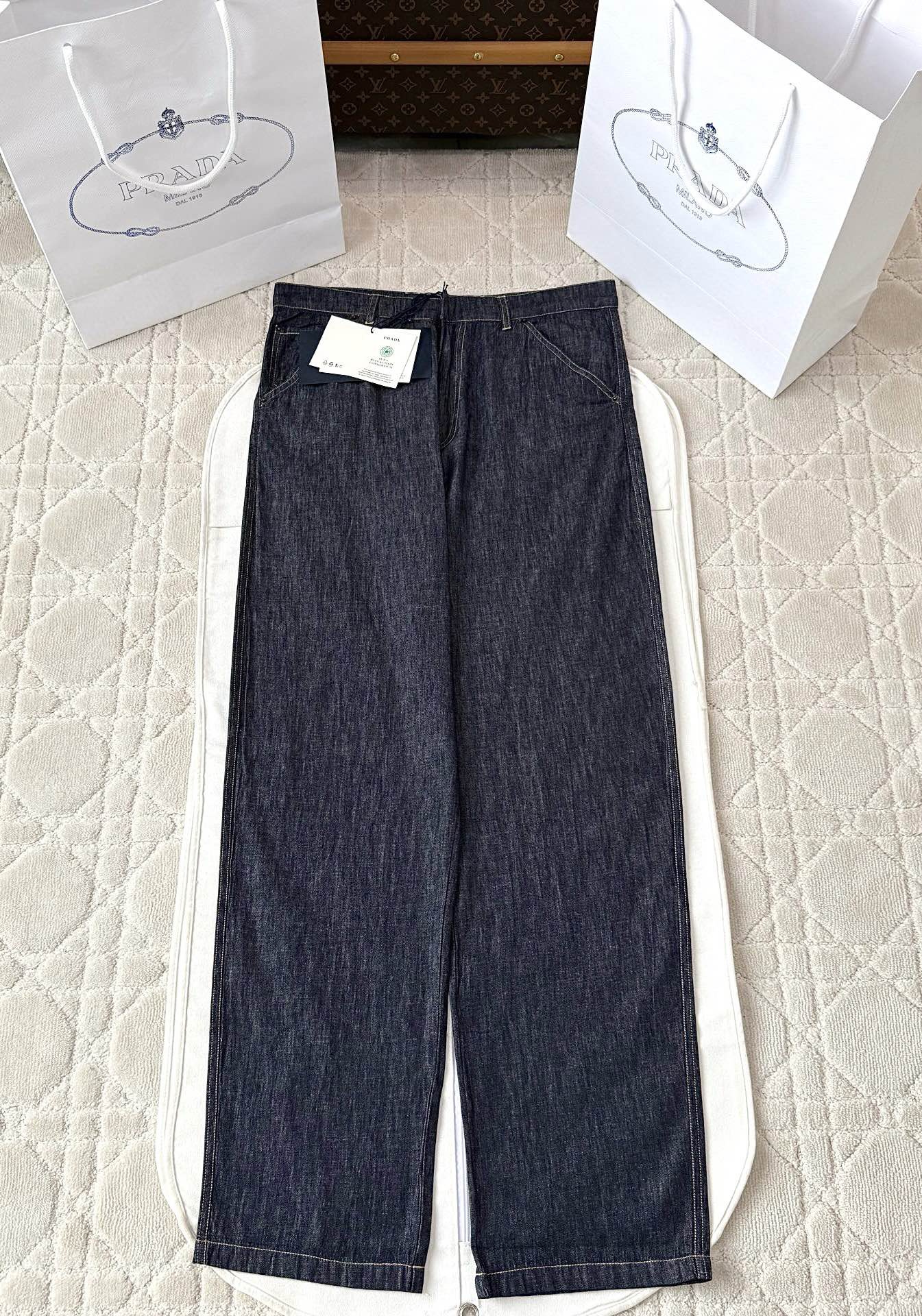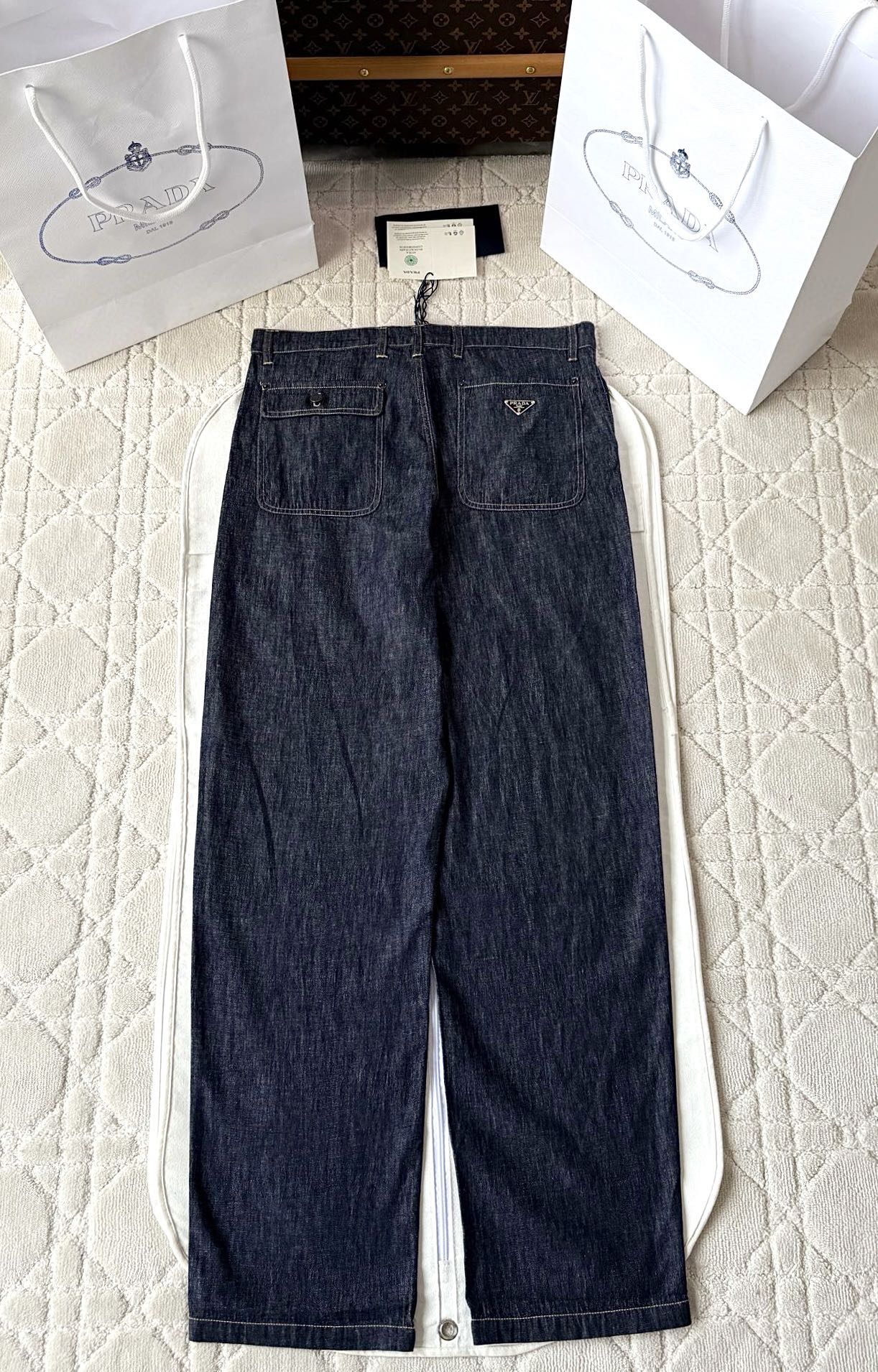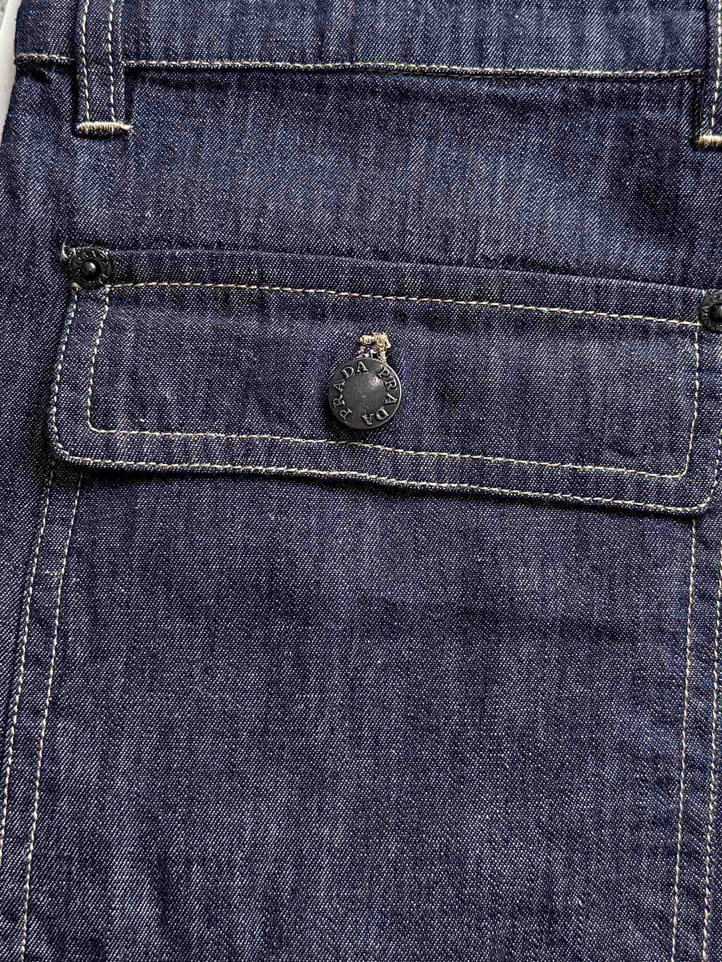 NIGO Prada Men's Spring Summer Solid Colour Metallic Triangle Logo Jeans Pants #nigo76866