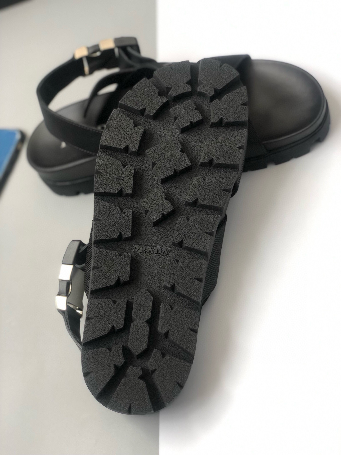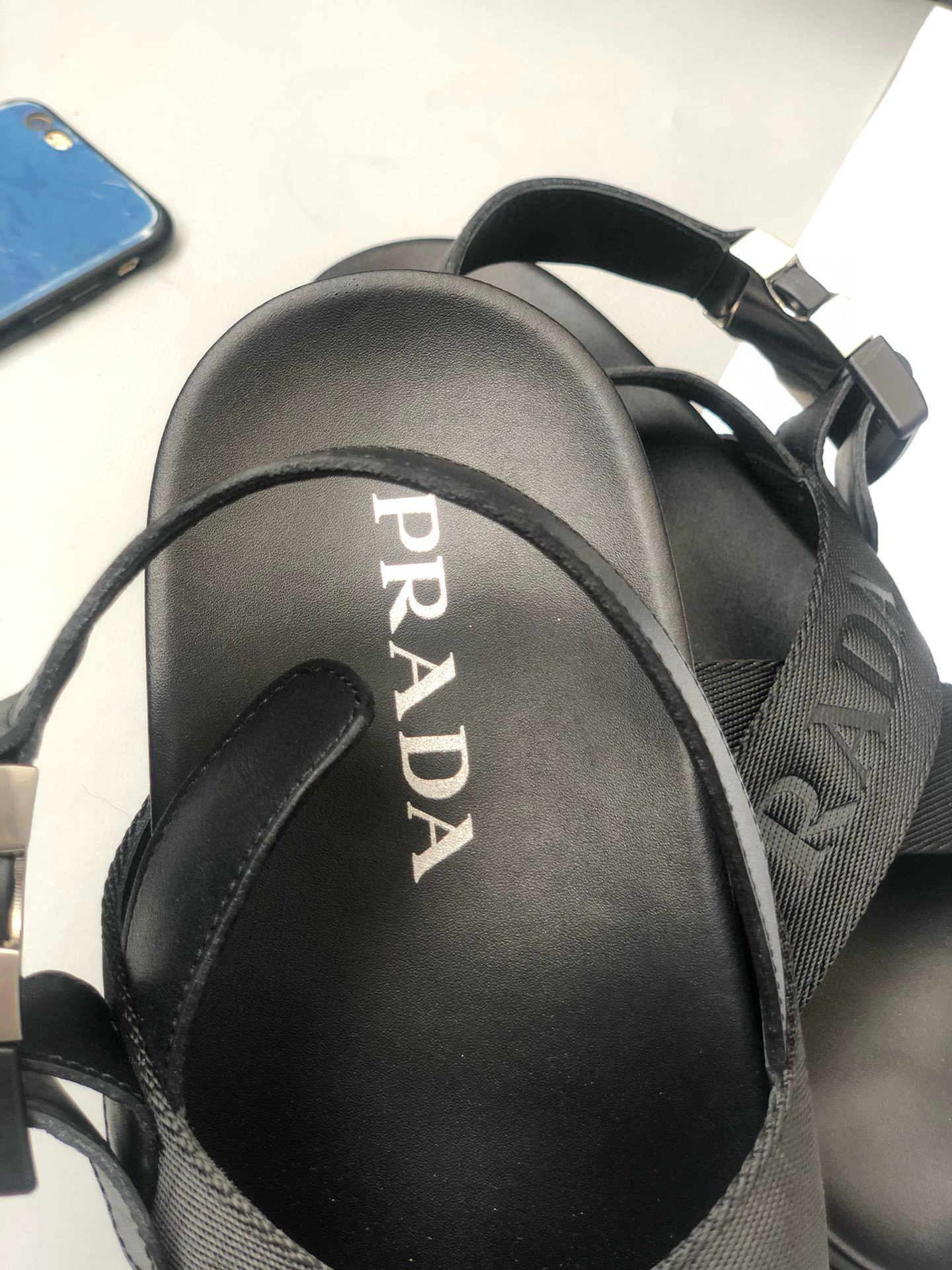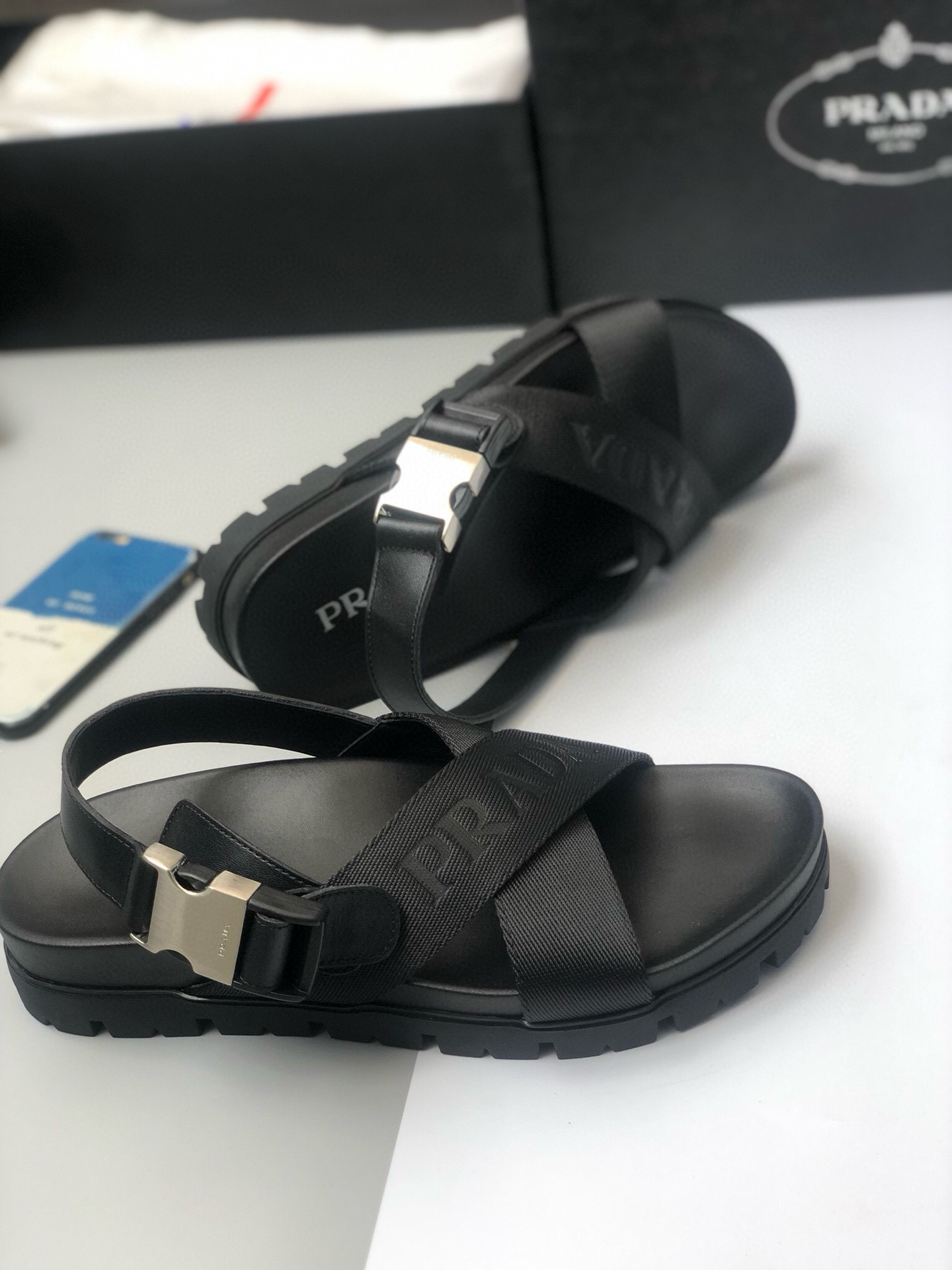 NIGO Prada Men's Summer Black Leather And Nylon Tape Crisscross Sandals Shoes #nigo97755