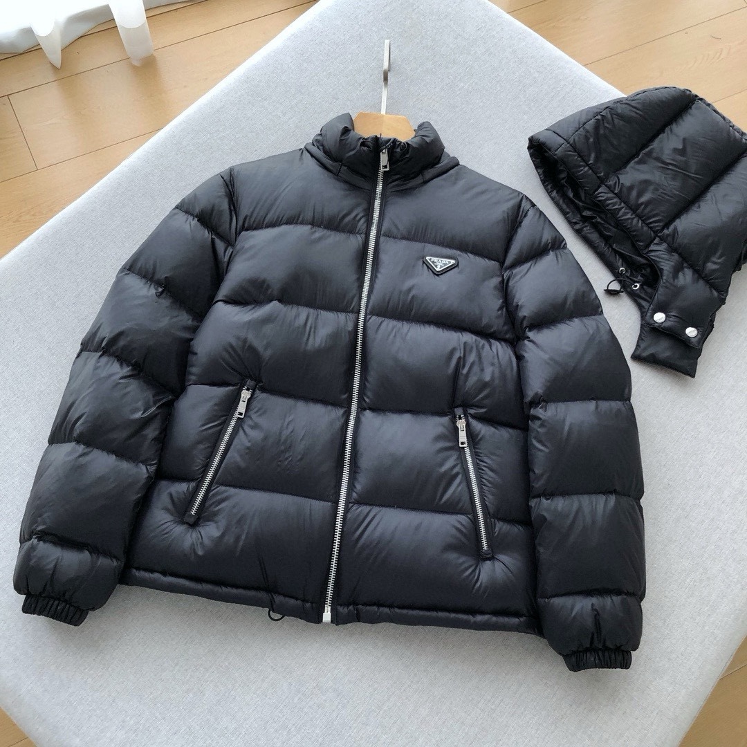 NIGO Prada Men's Winter Black High Collar Hooded Zipper Long Sleeve Puffer Down Jacket #nigo73569