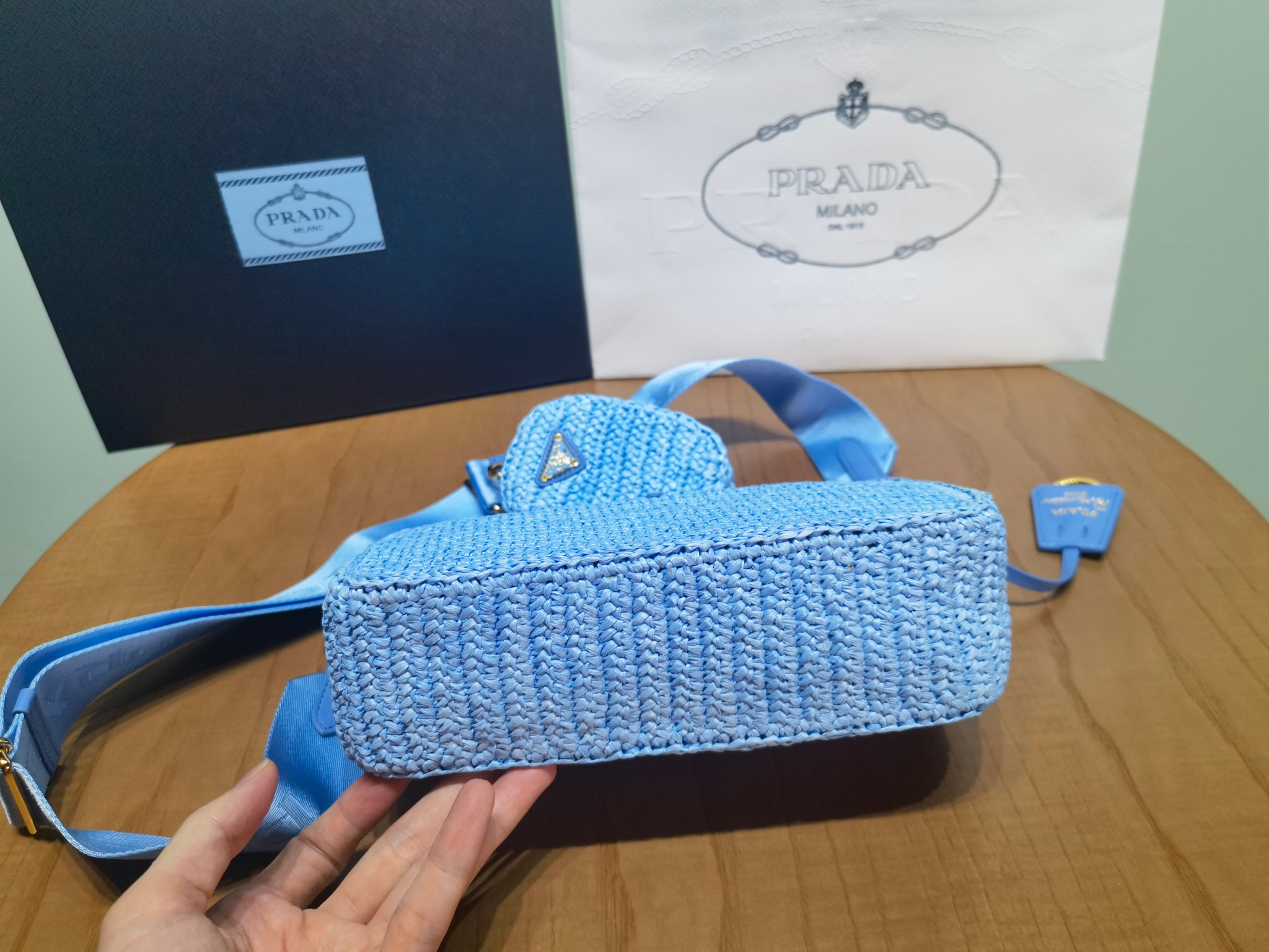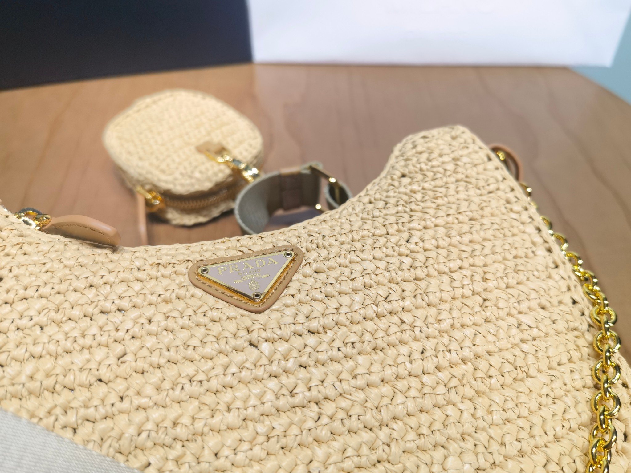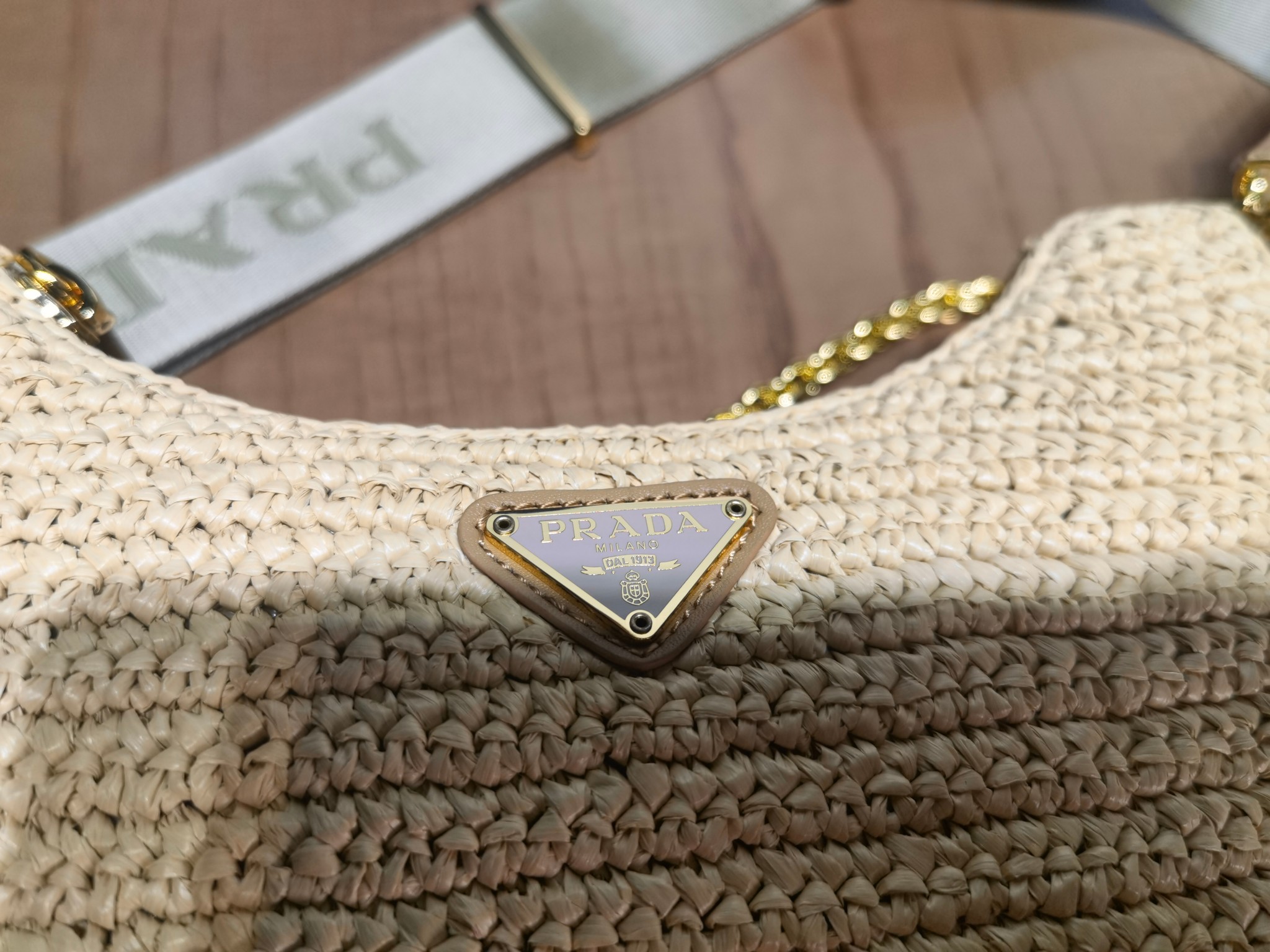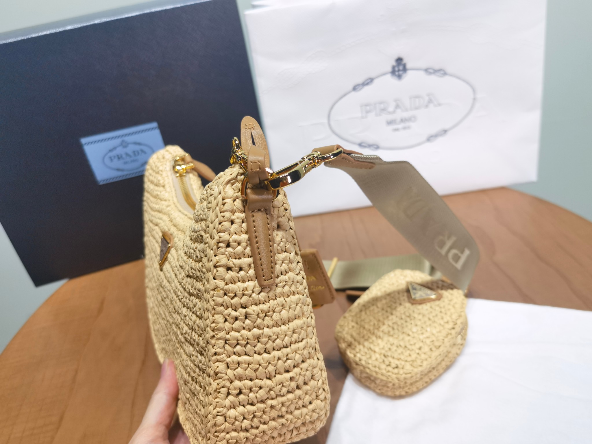 NIGO Prada Re-Edition 2005 Women's Logo Embroidered Fashionable Straw And Willow Mini Shoulder Bag Casual Underarm Bag #nigo99744