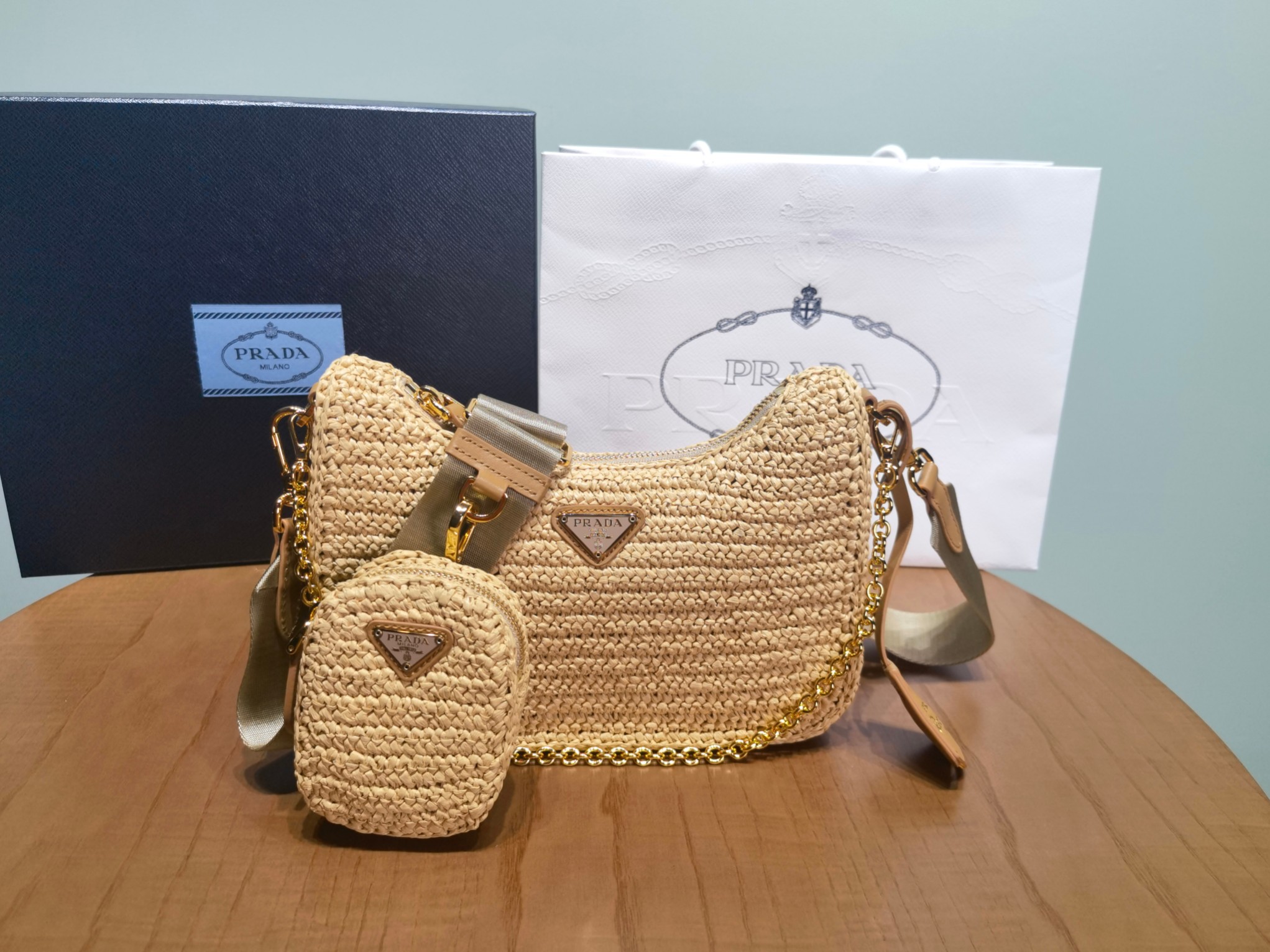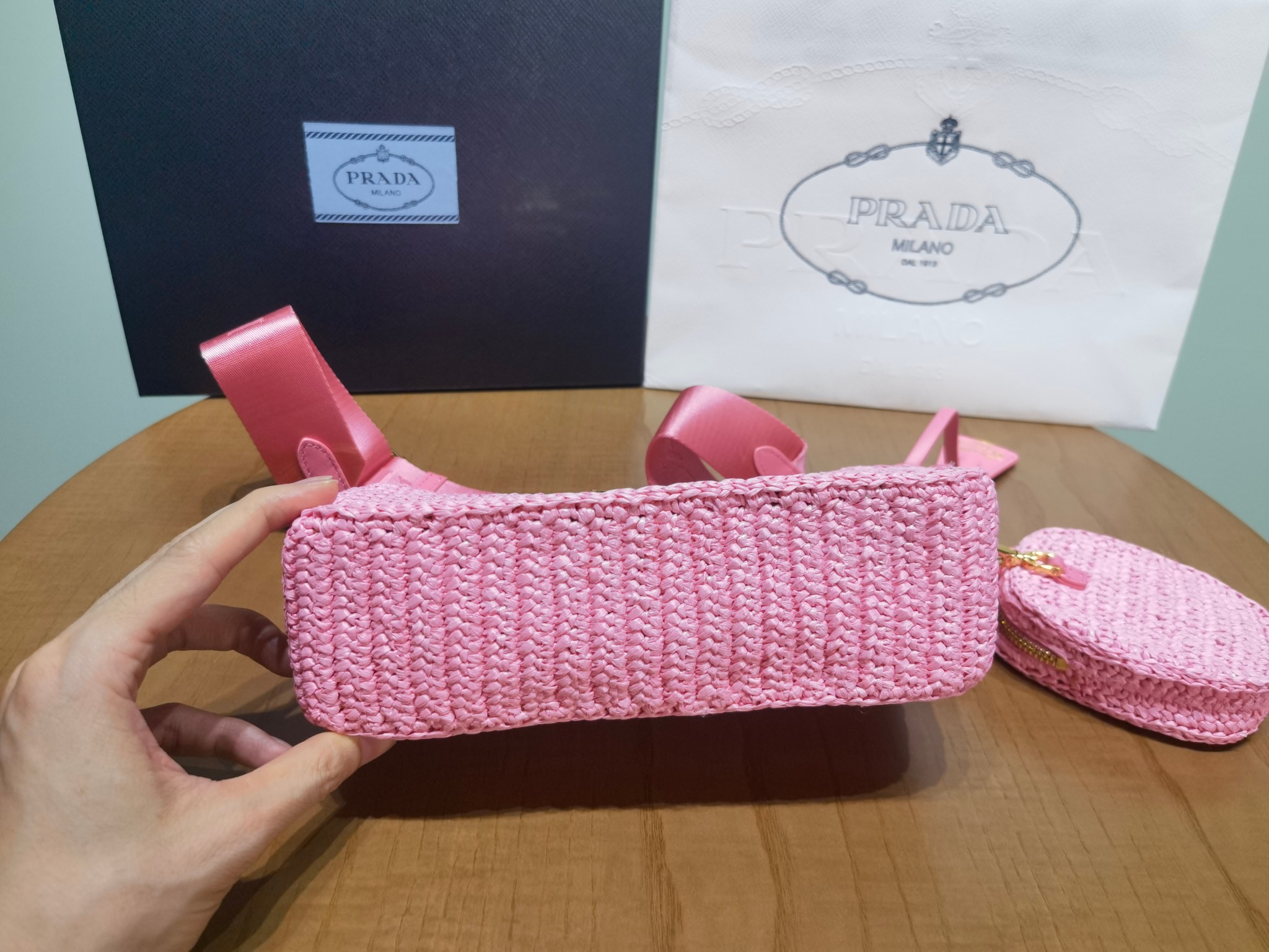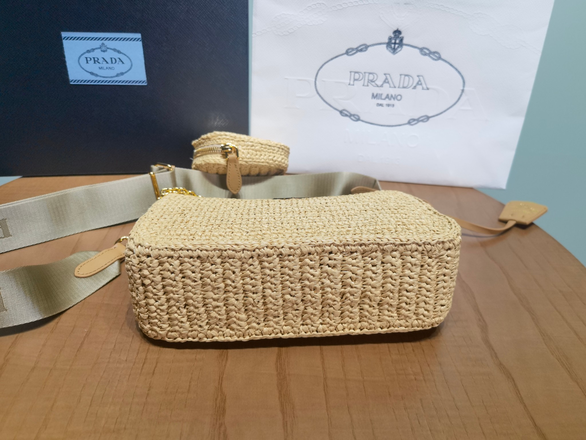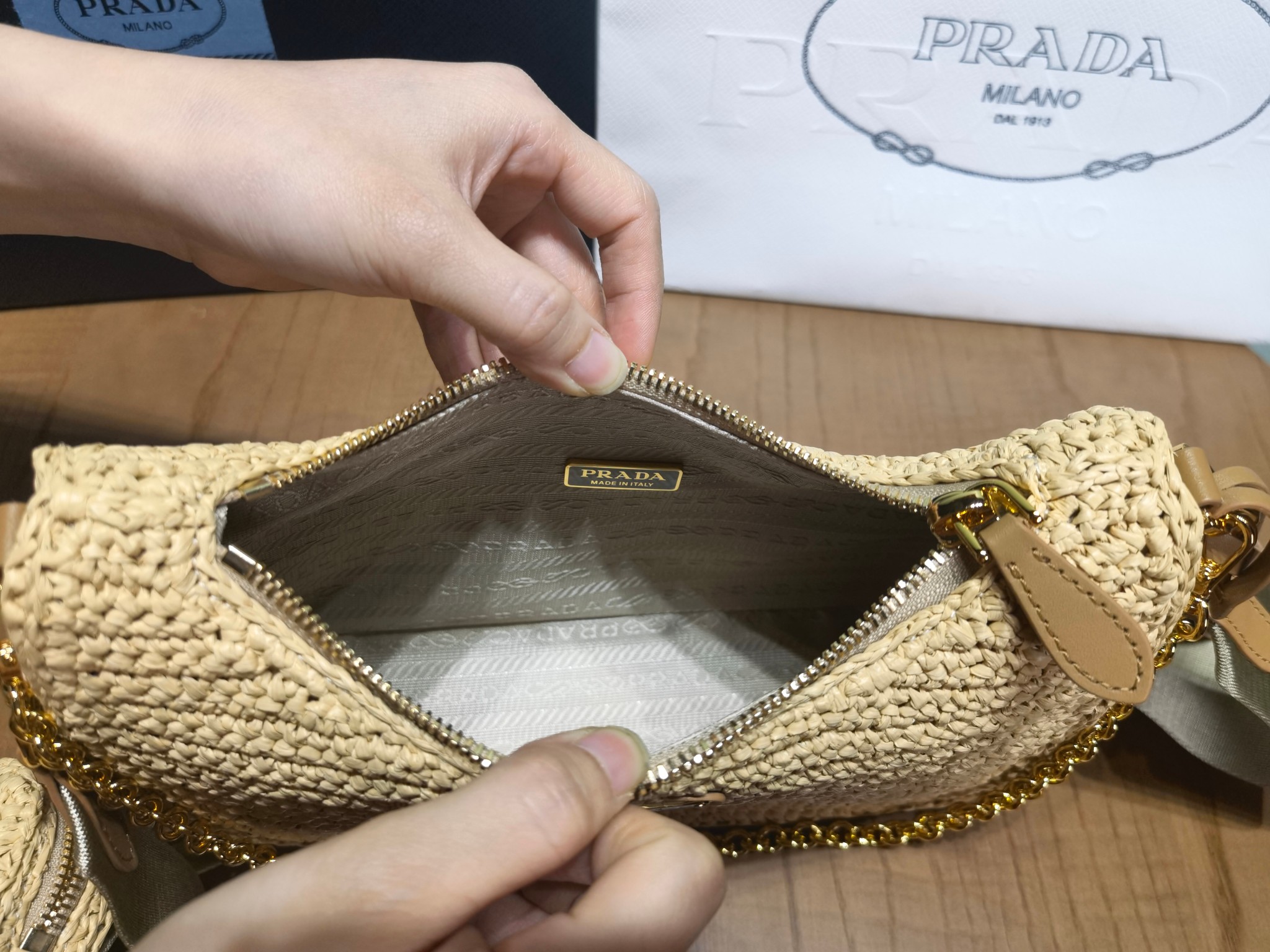 NIGO Prada Re-Edition 2005 Women's Logo Embroidered Fashionable Straw And Willow Mini Shoulder Bag Casual Underarm Bag #nigo99744
