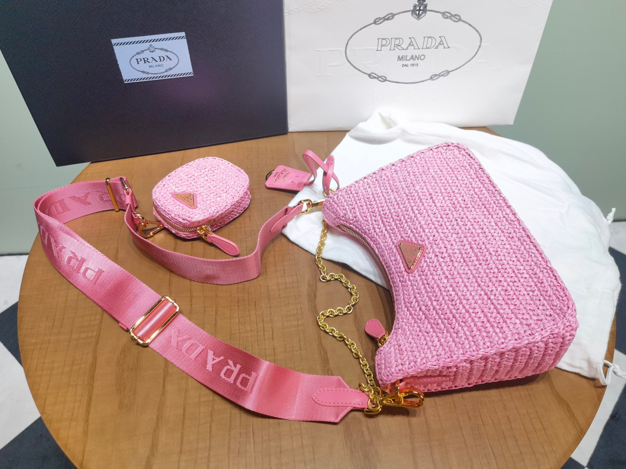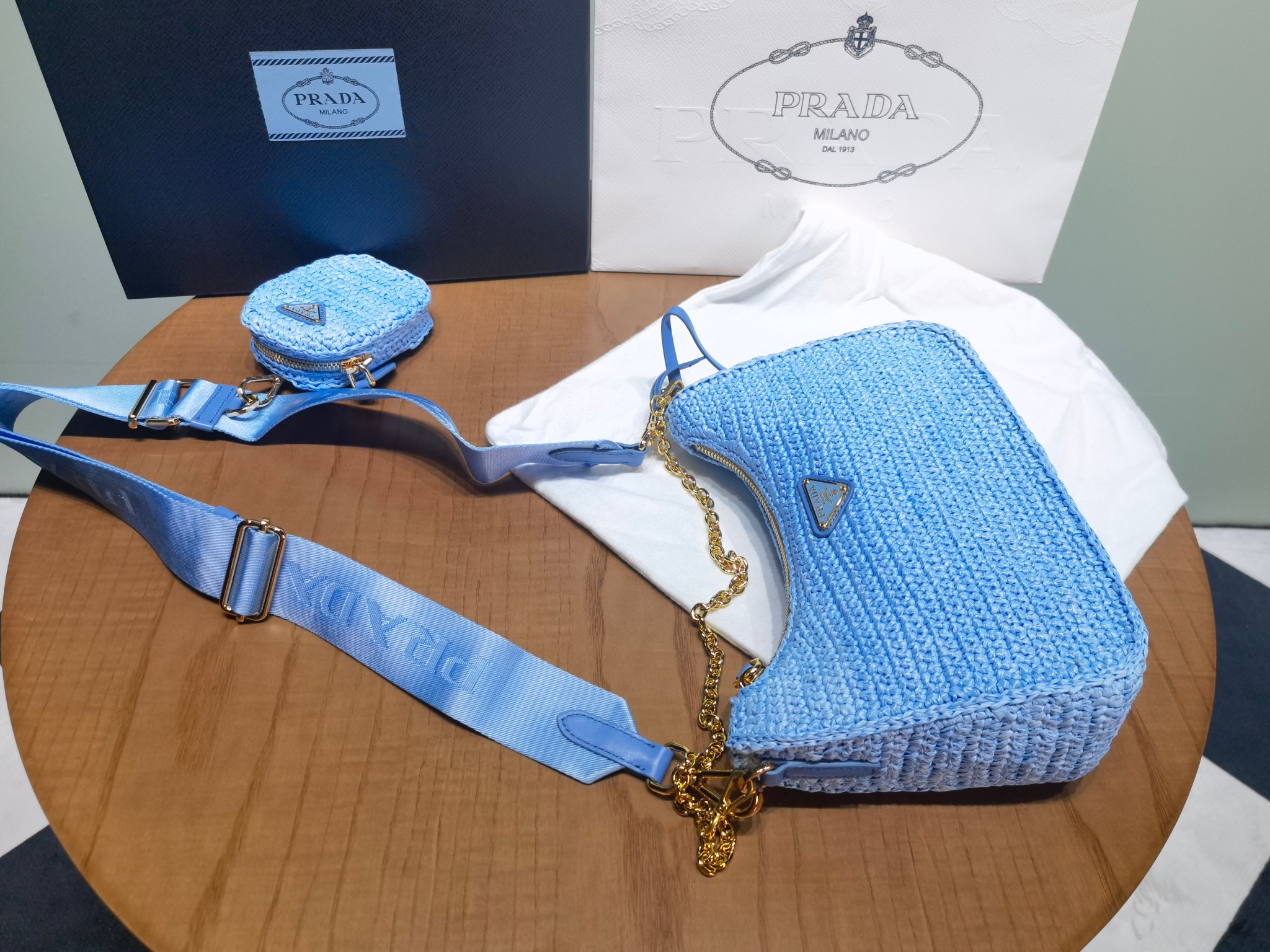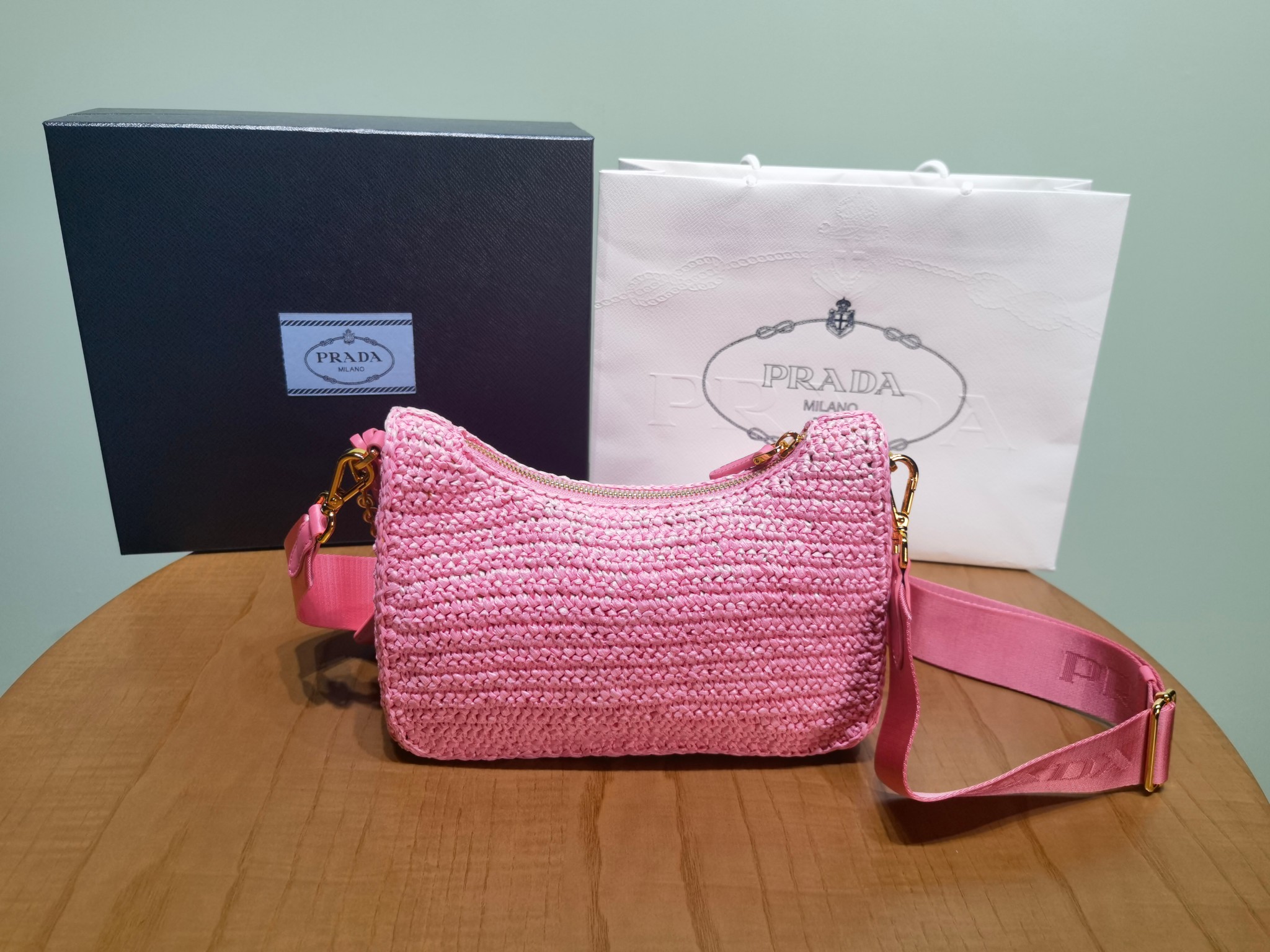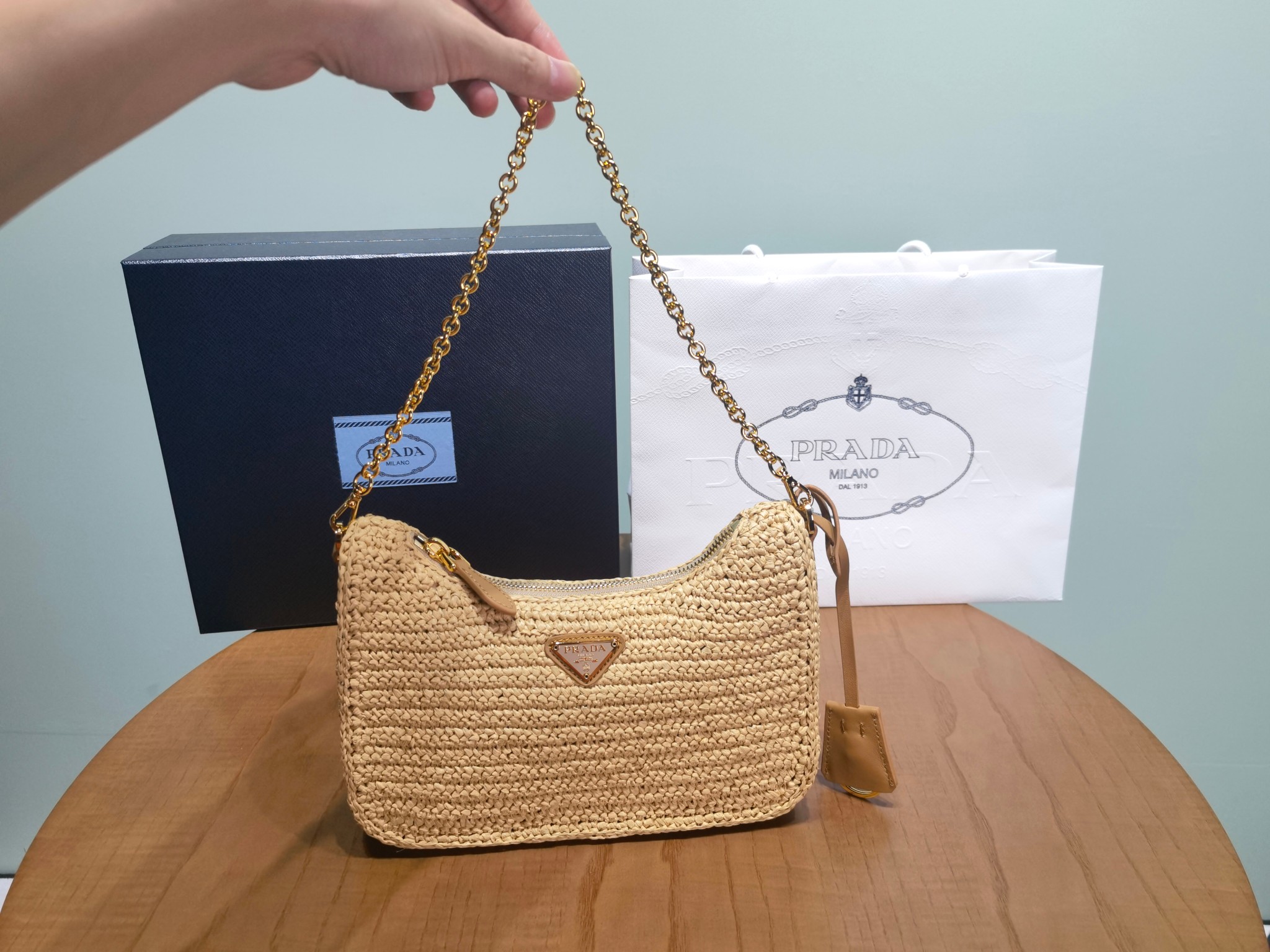 NIGO Prada Re-Edition 2005 Women's Logo Embroidered Fashionable Straw And Willow Mini Shoulder Bag Casual Underarm Bag #nigo99744
