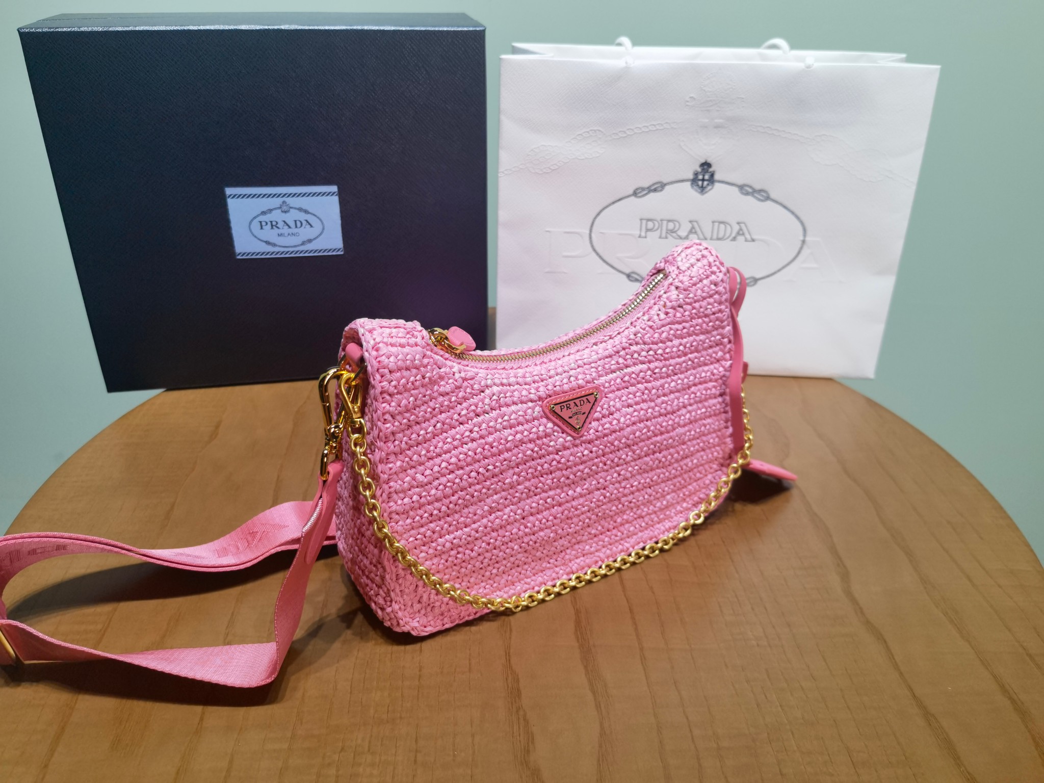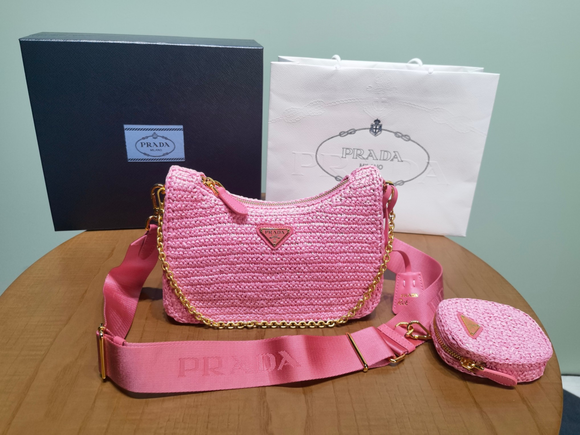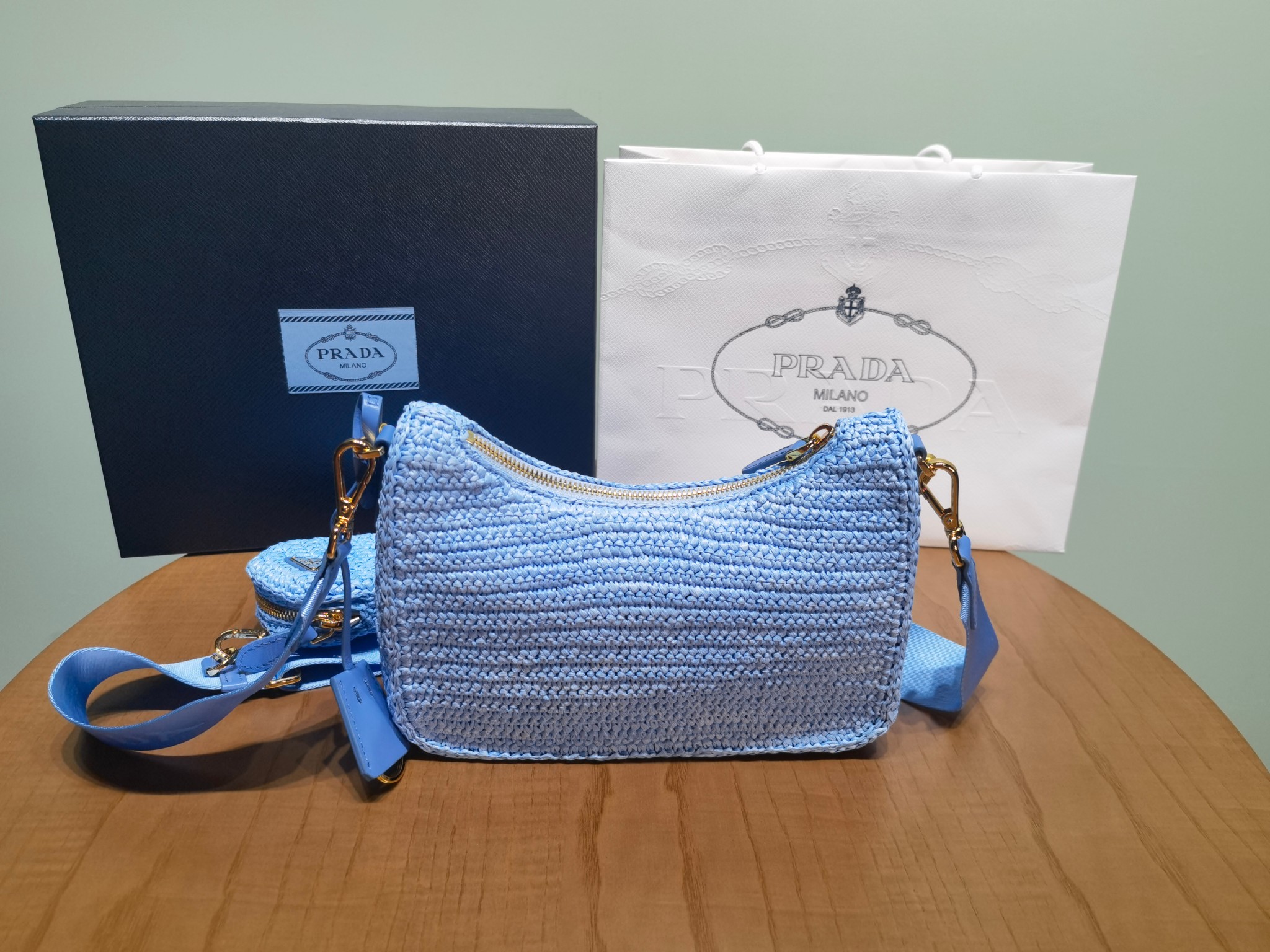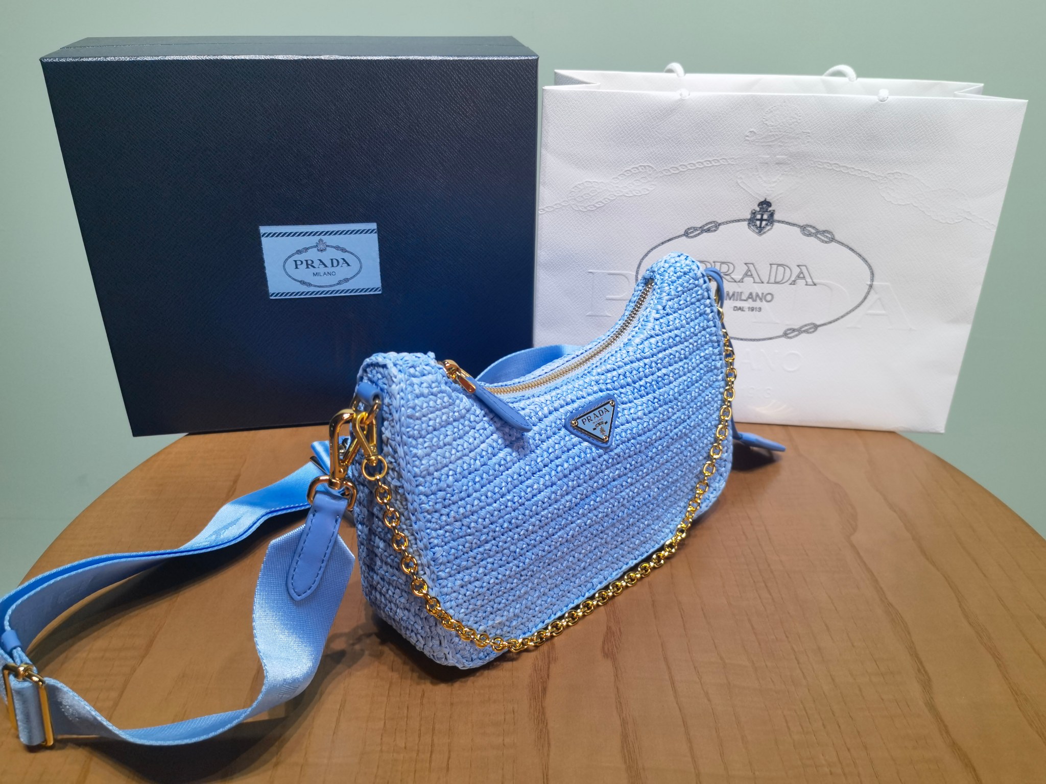 NIGO Prada Re-Edition 2005 Women's Logo Embroidered Fashionable Straw And Willow Mini Shoulder Bag Casual Underarm Bag #nigo99744