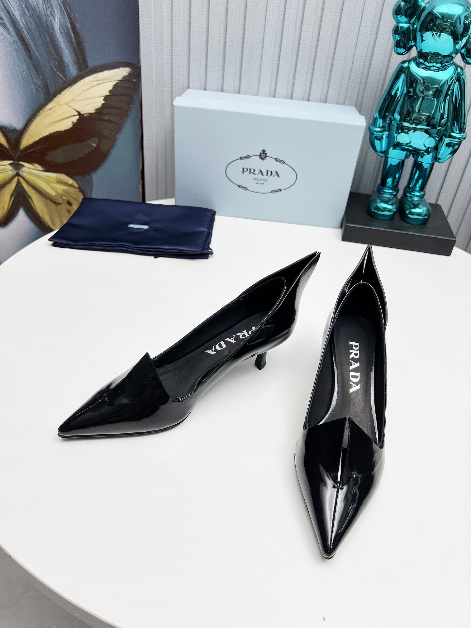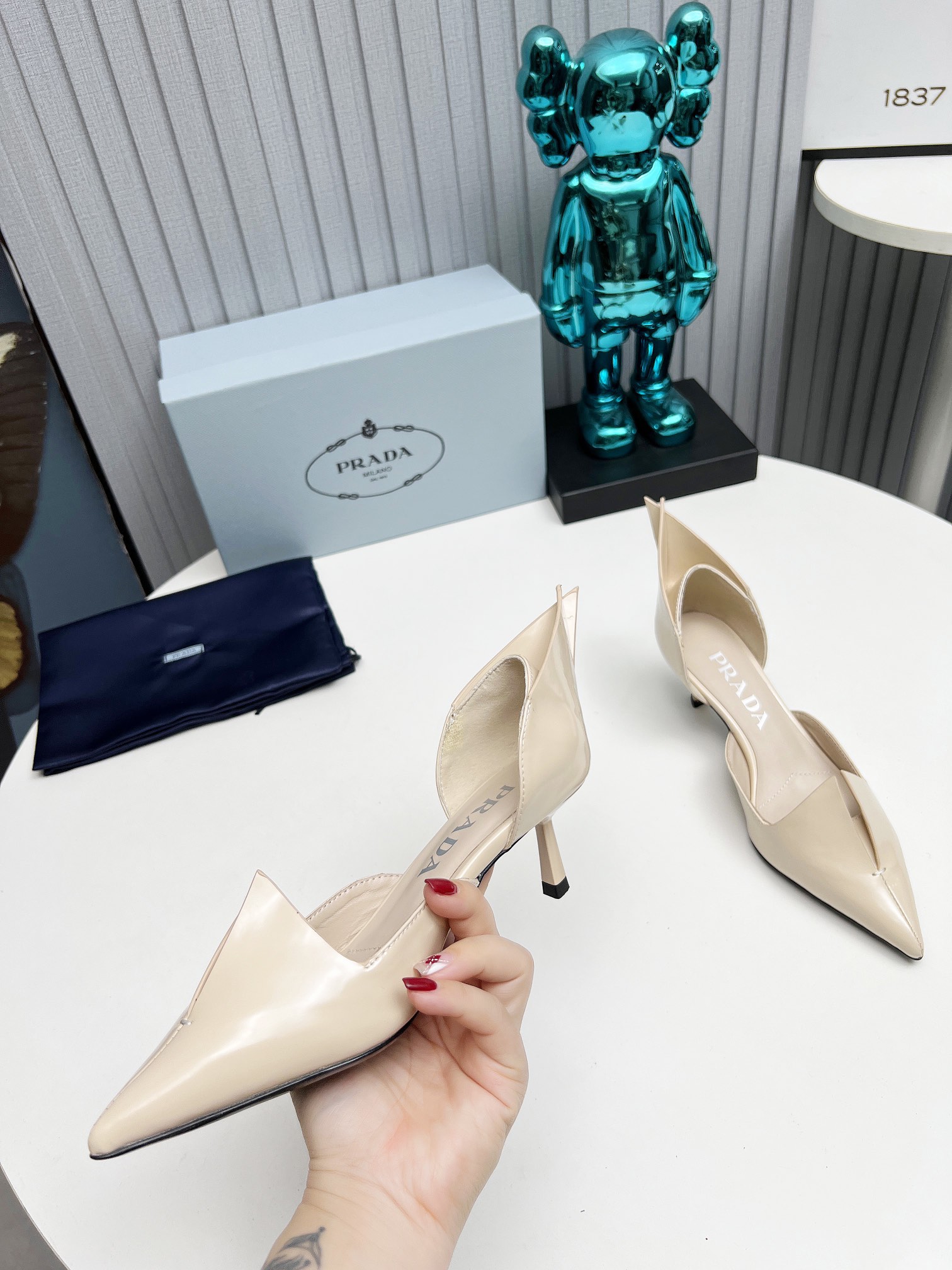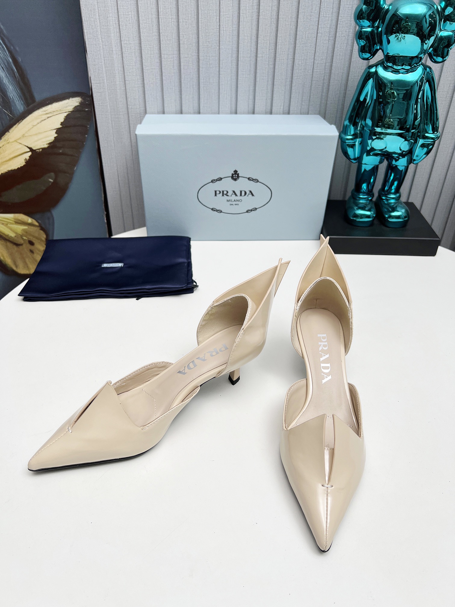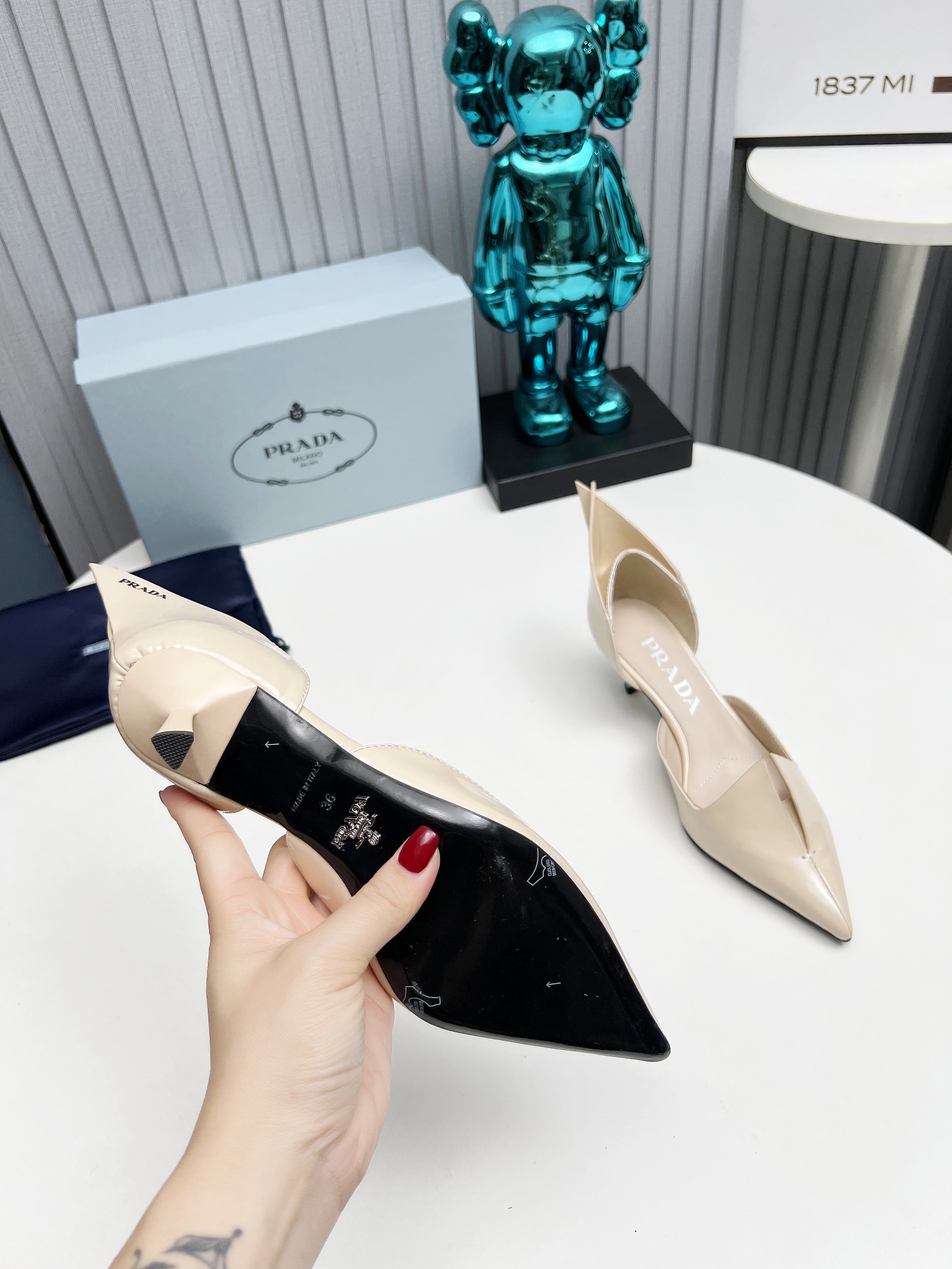 NIGO Prada Two-tone Brushed Leather Pumps Fashionable And Luxurious Pointed-toe High Heels Shoes With Elegant Heel Height Of 5.5 Cm #nigo81395