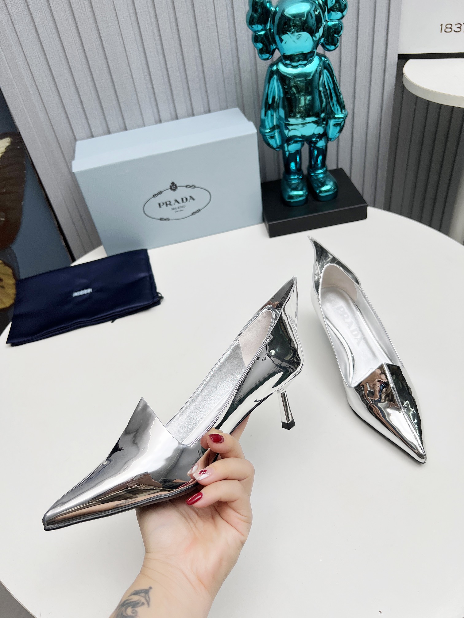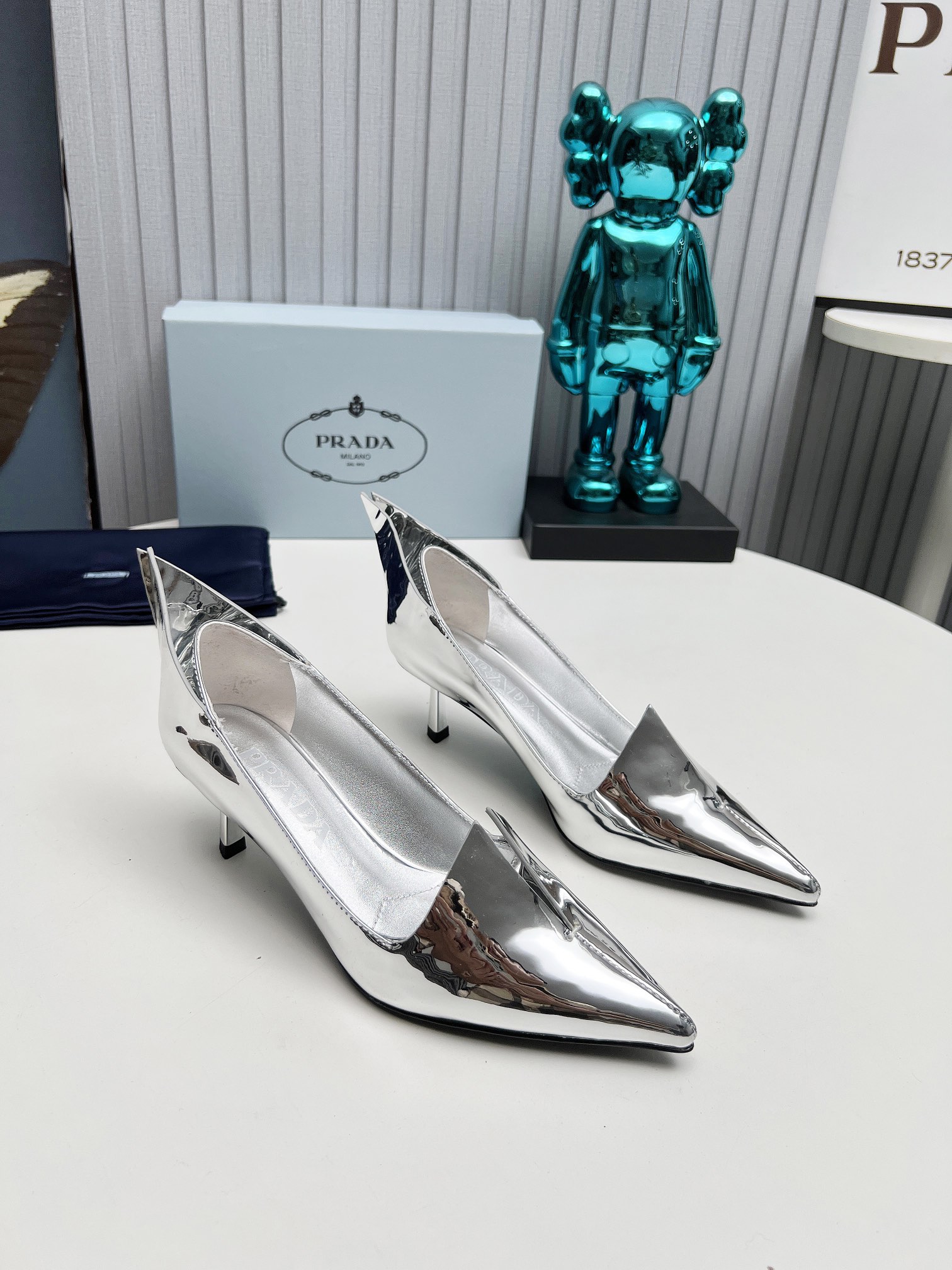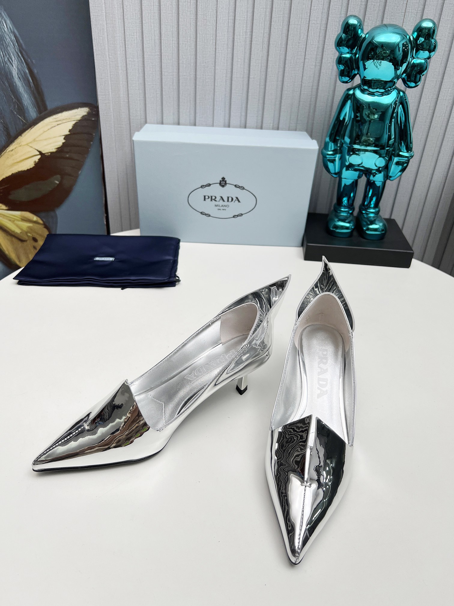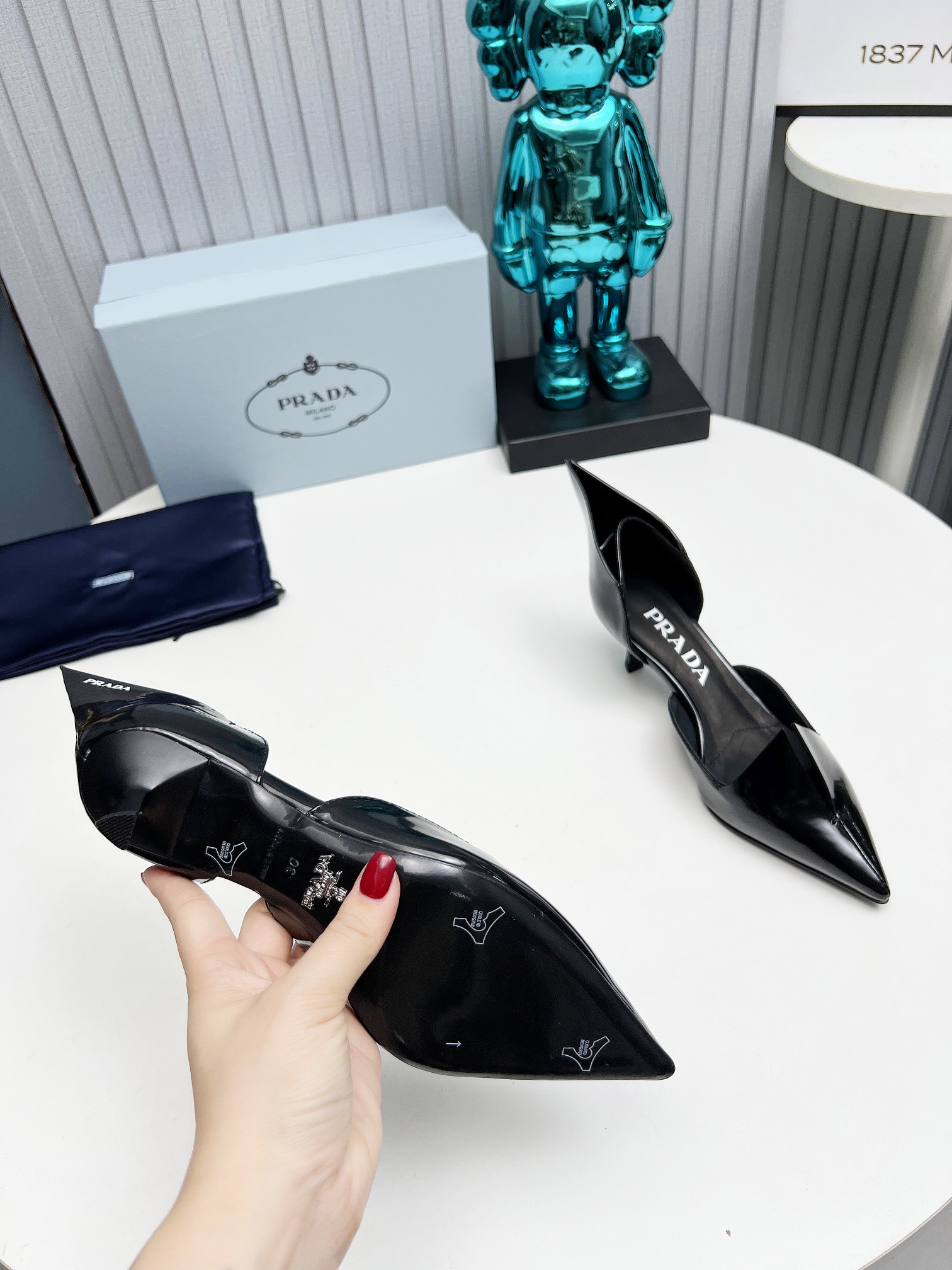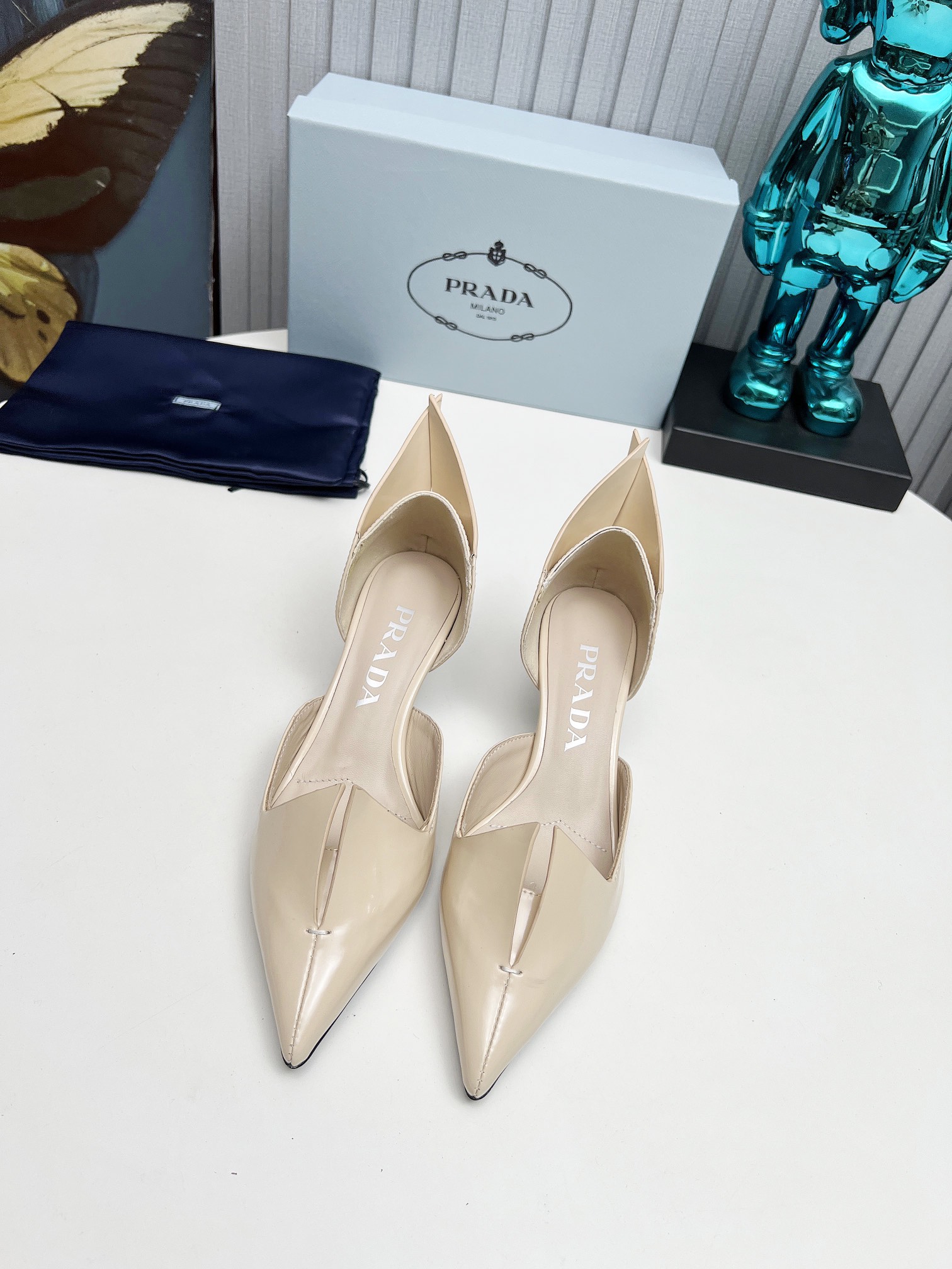 NIGO Prada Two-tone Brushed Leather Pumps Fashionable And Luxurious Pointed-toe High Heels Shoes With Elegant Heel Height Of 5.5 Cm #nigo81395