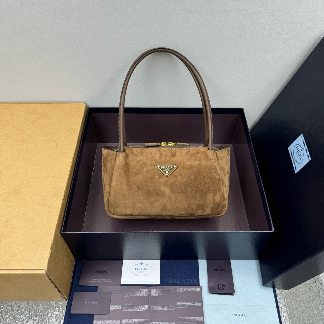 NIGO Prada Women's Brown Metal Triangle Label Suede Shoulder Handbag Bag Bags #nigo73879