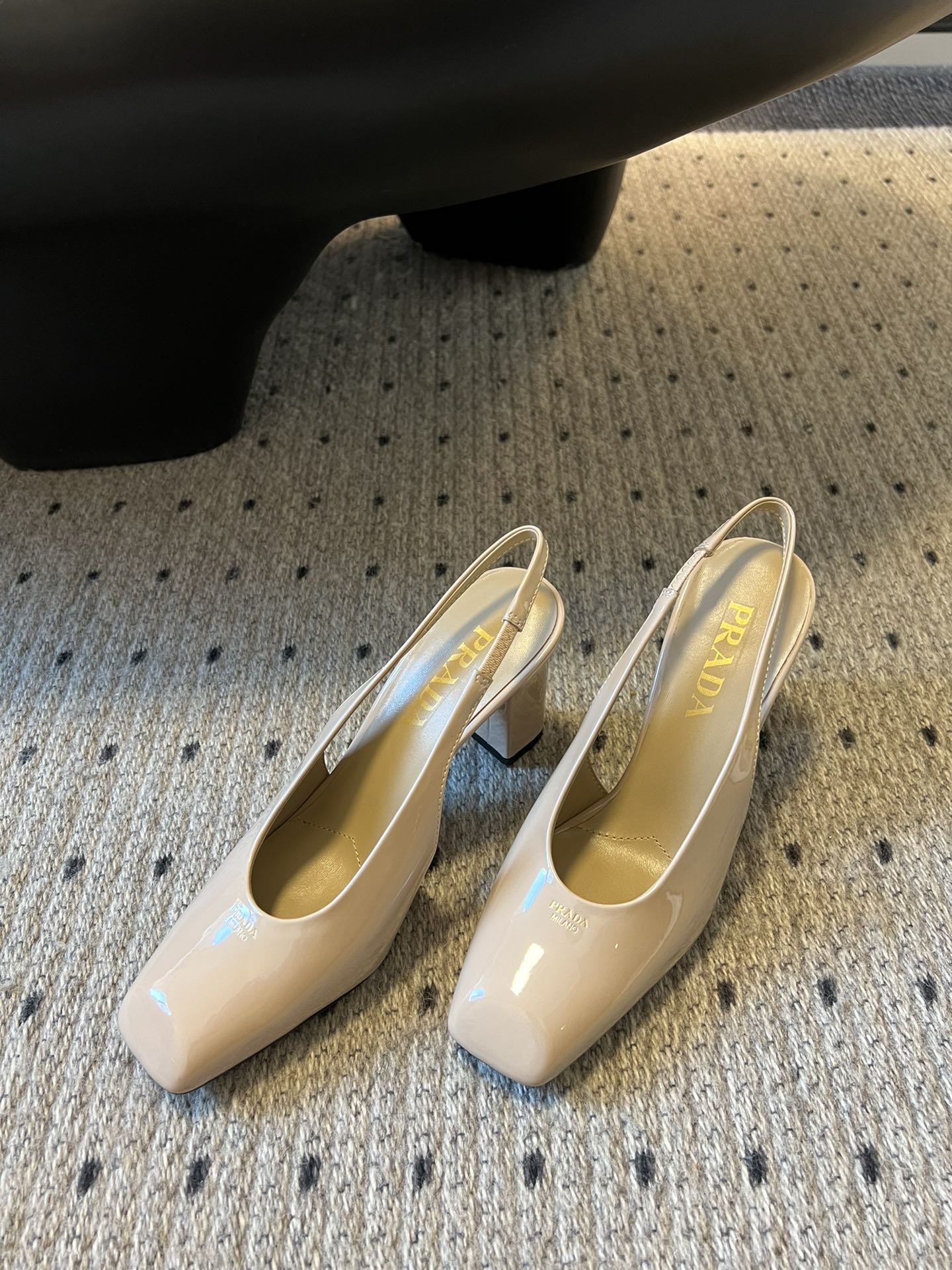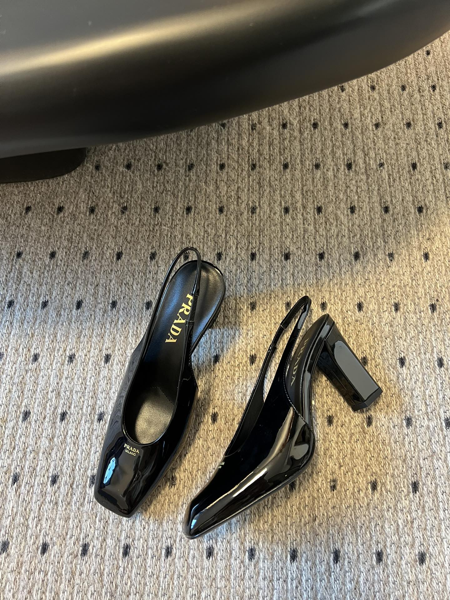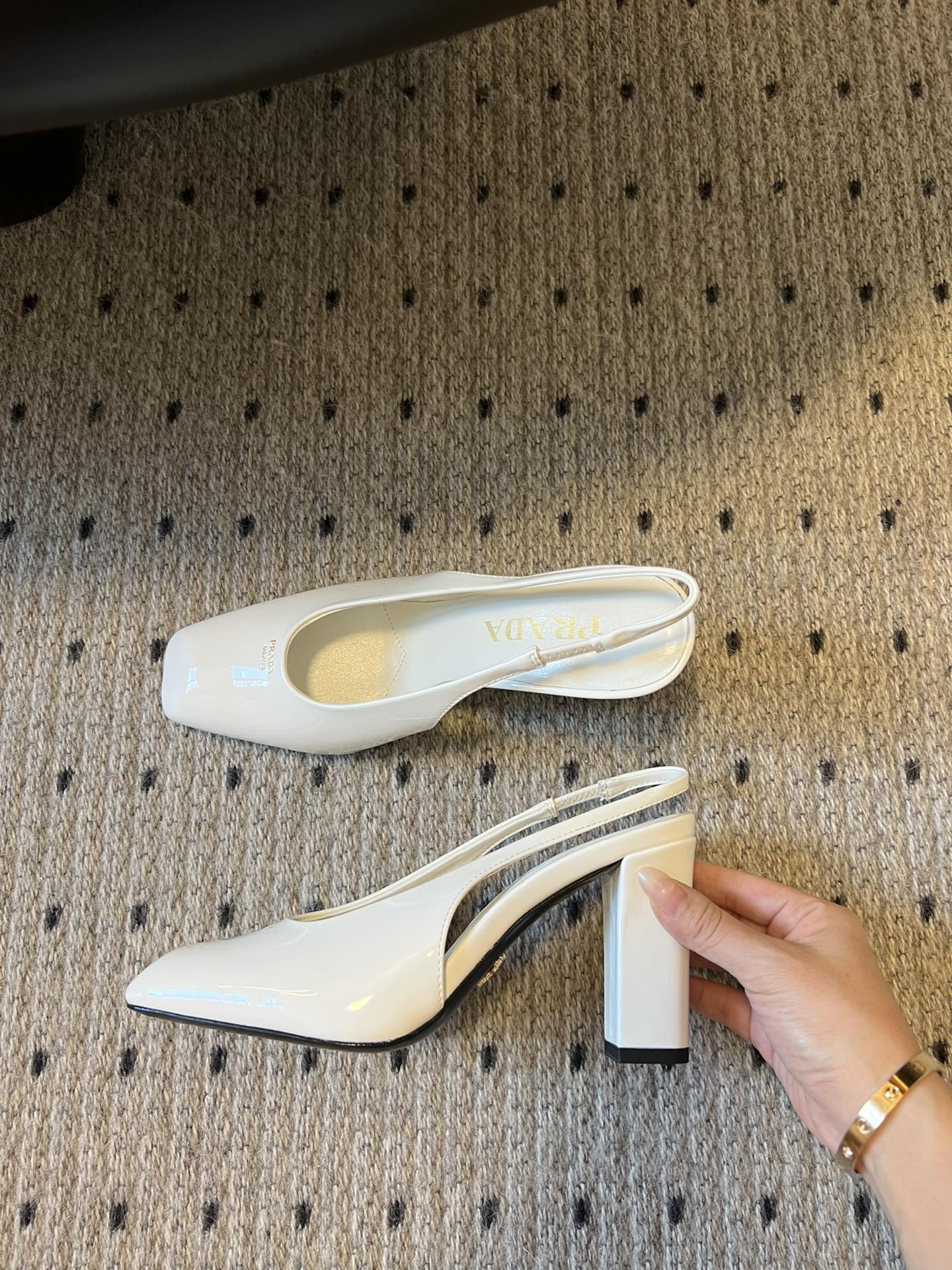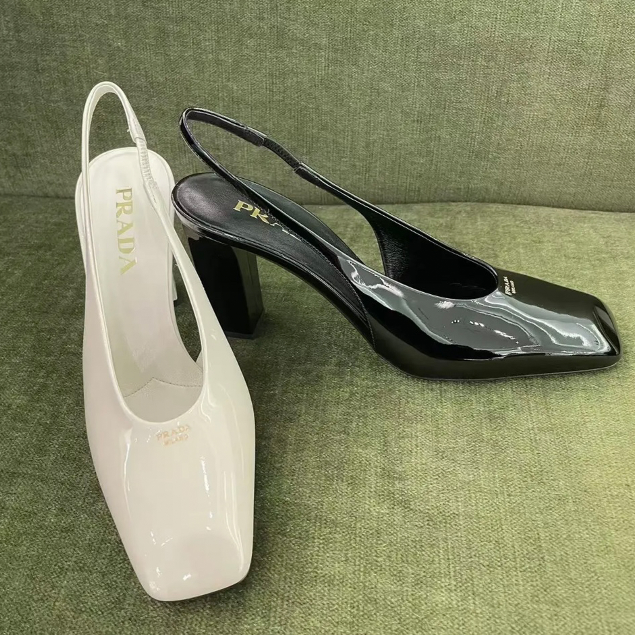 NIGO Prada Women's Elegant Sexy Patent Leather Thick Square Head High Heels Fashion Single Shoes Spring And Summer High-end Sandals Shoes Heel 8.5cm #nigo81114