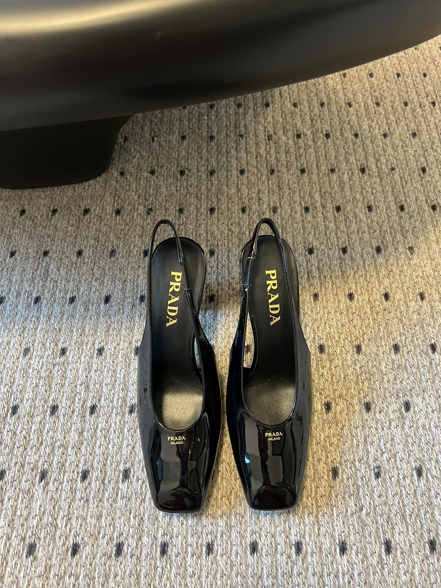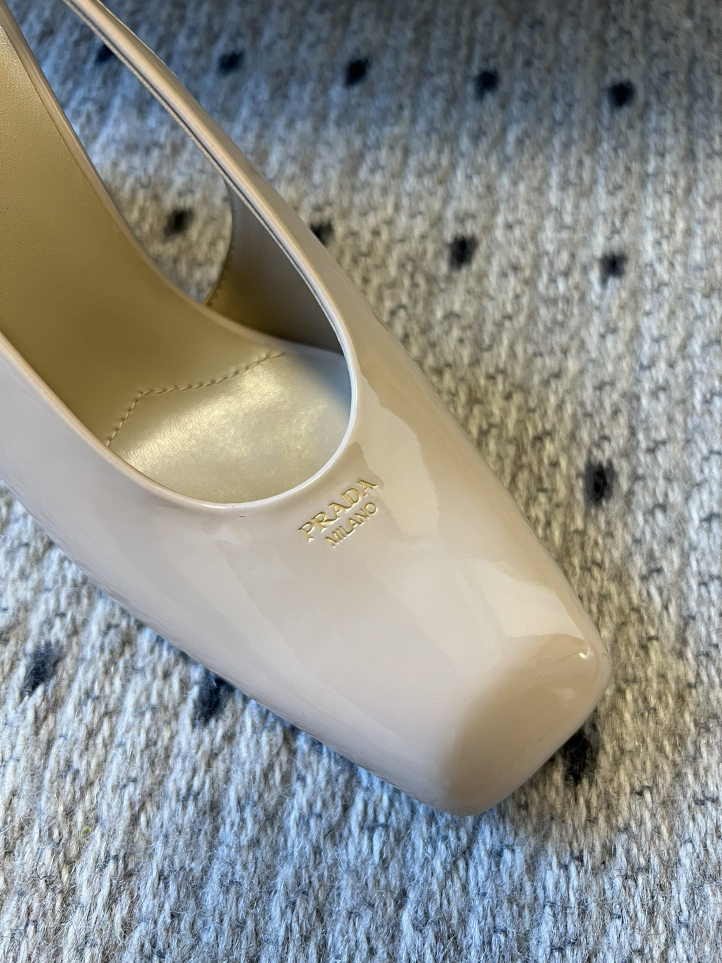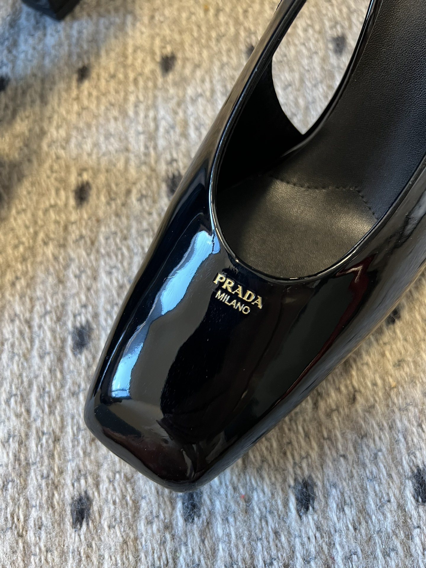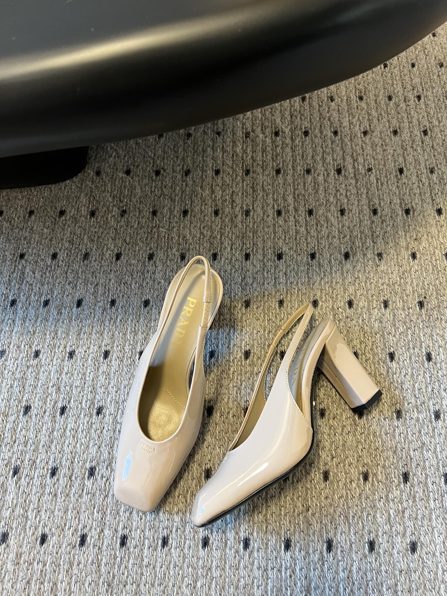 NIGO Prada Women's Elegant Sexy Patent Leather Thick Square Head High Heels Fashion Single Shoes Spring And Summer High-end Sandals Shoes Heel 8.5cm #nigo81114