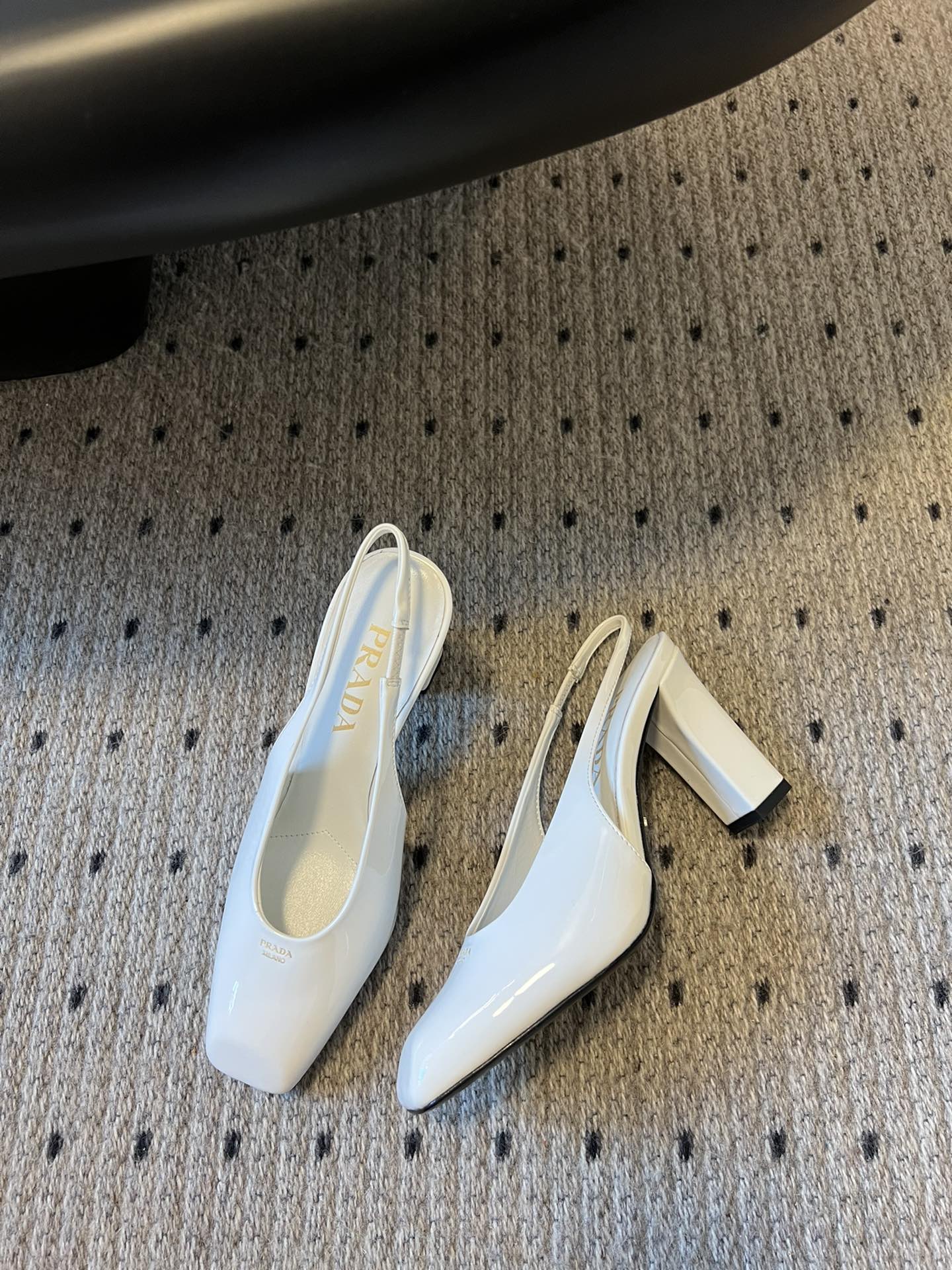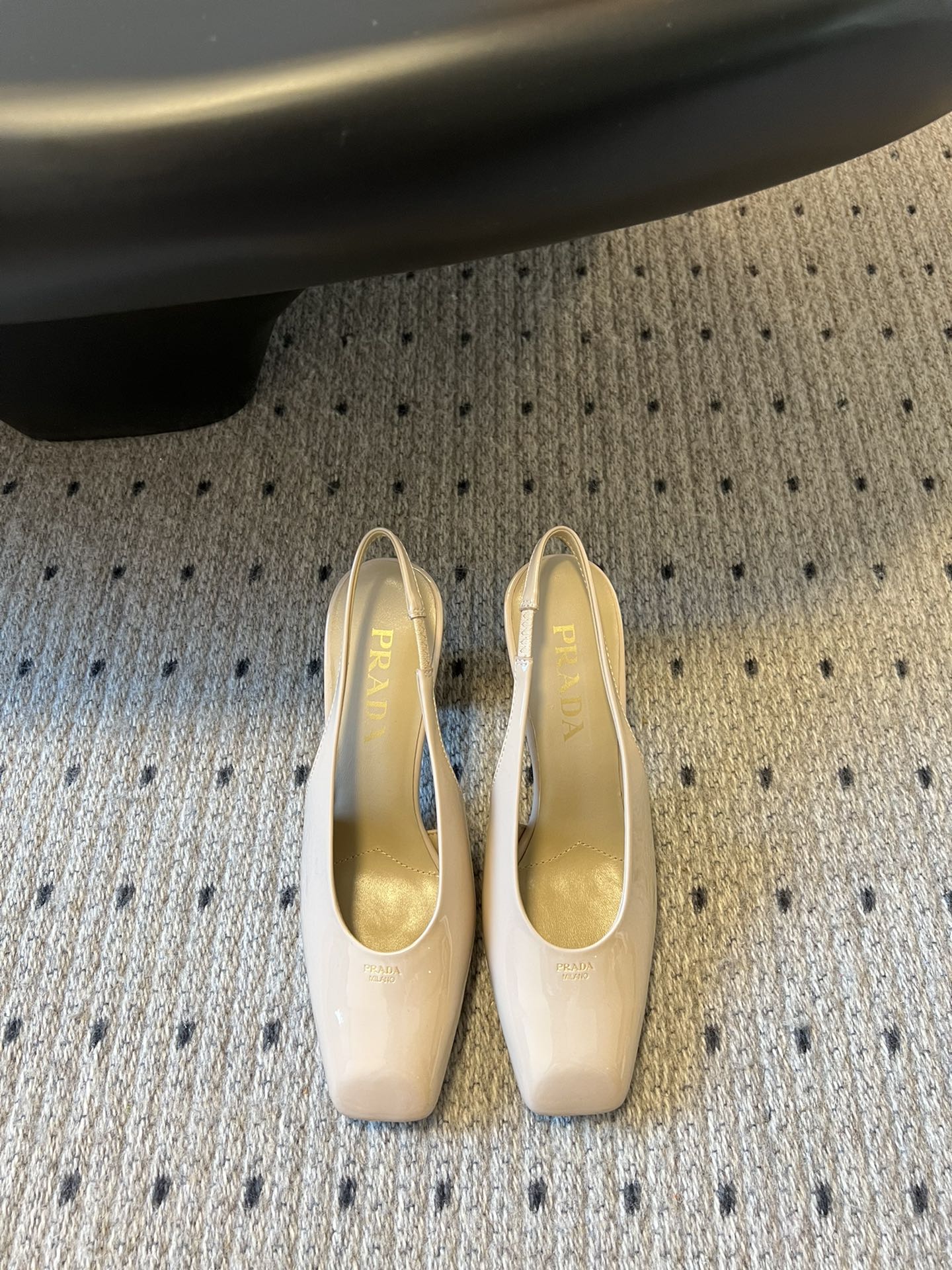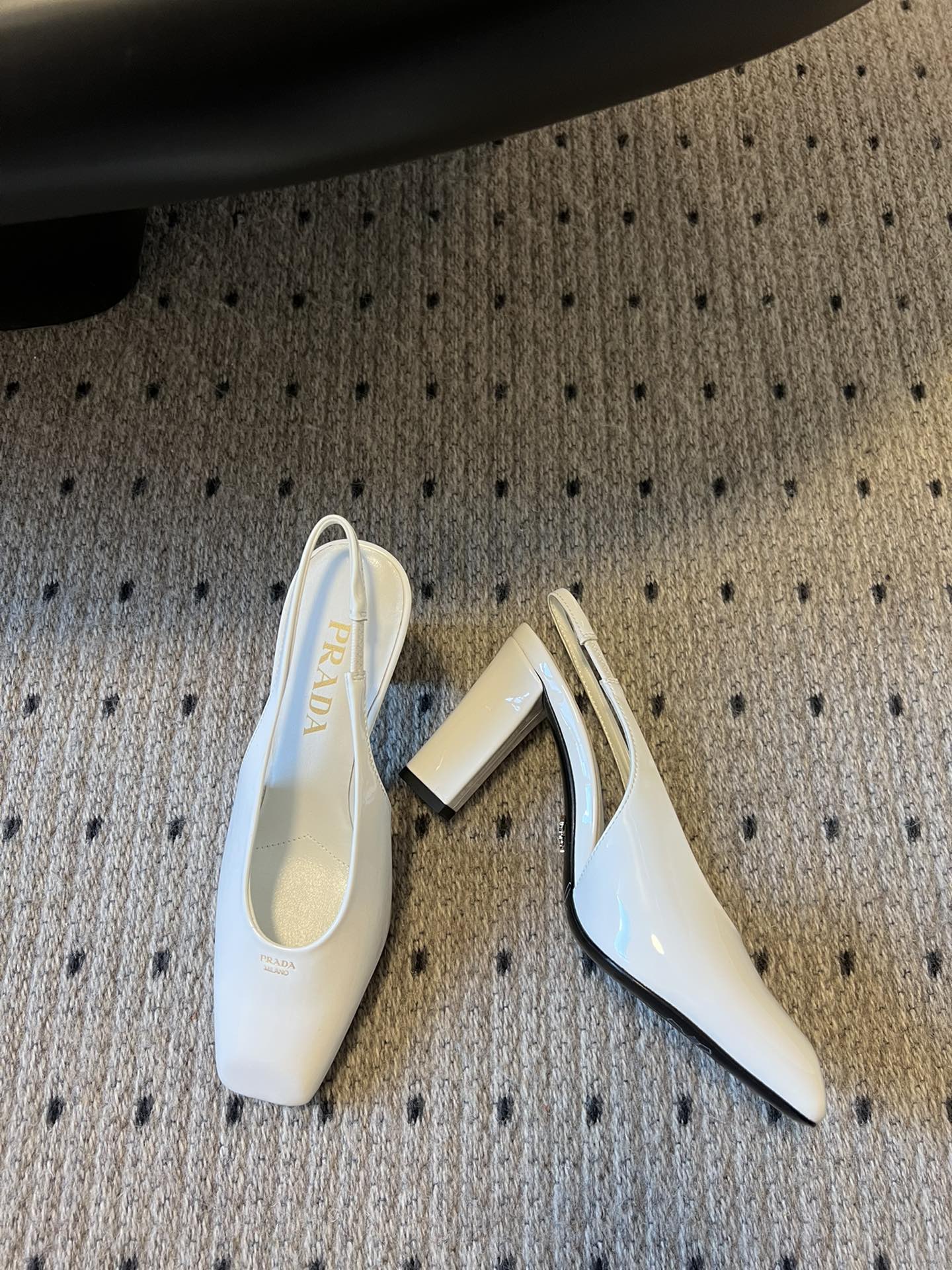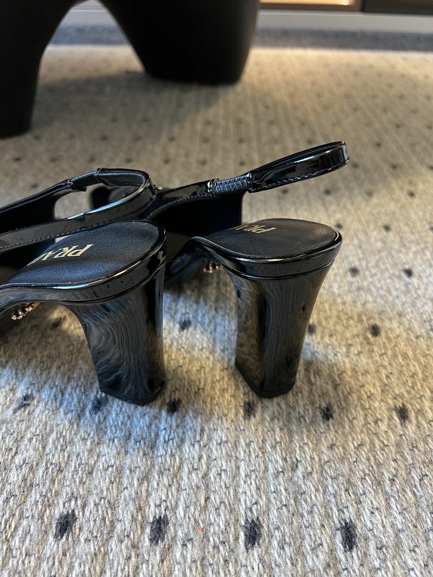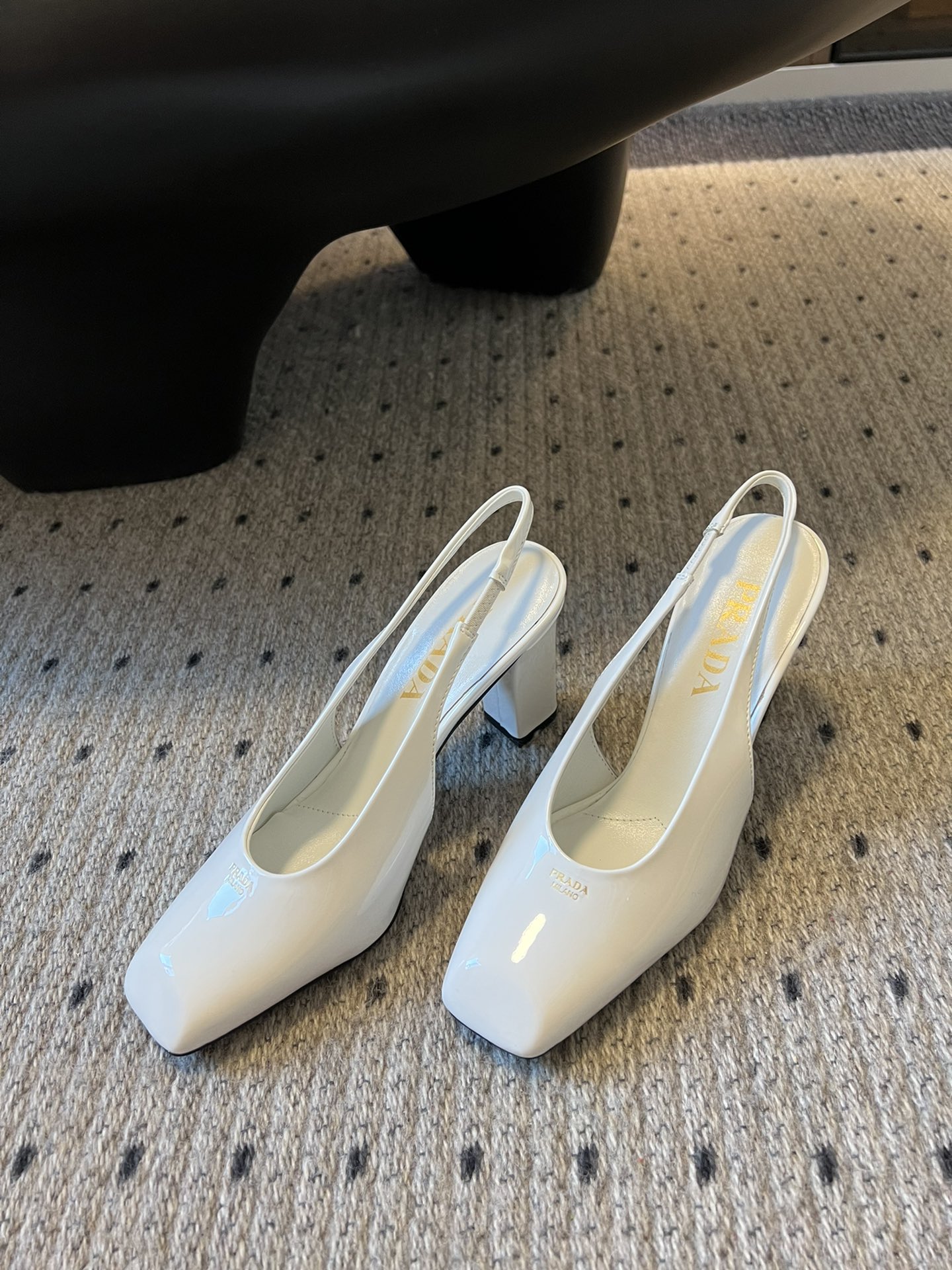NIGO Prada Women's Elegant Sexy Patent Leather Thick Square Head High Heels Fashion Single Shoes Spring And Summer High-end Sandals Shoes Heel 8.5cm #nigo81114