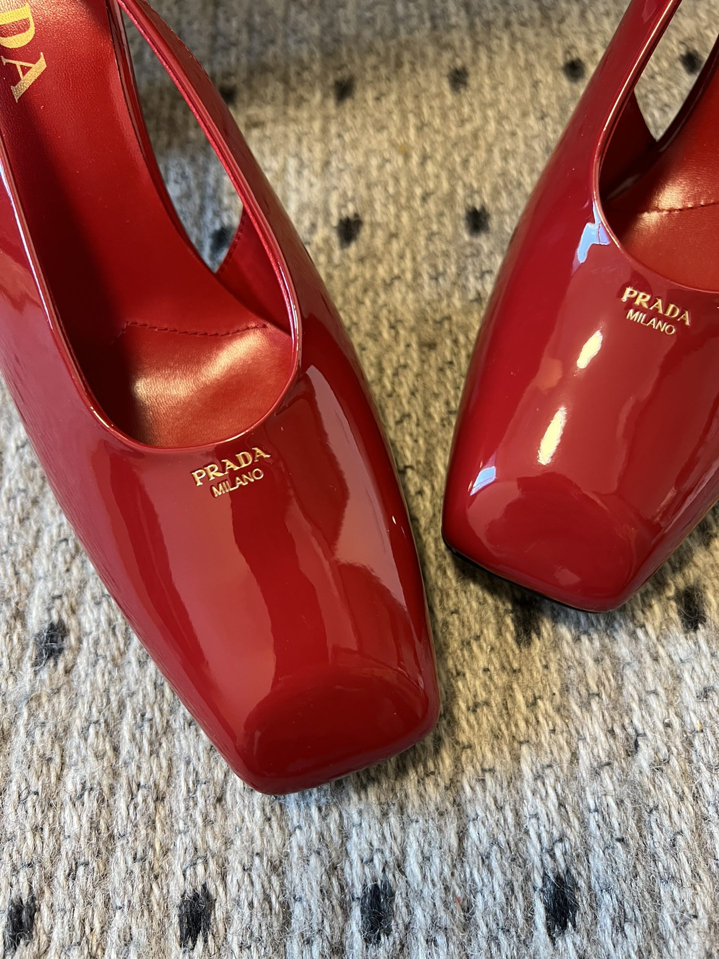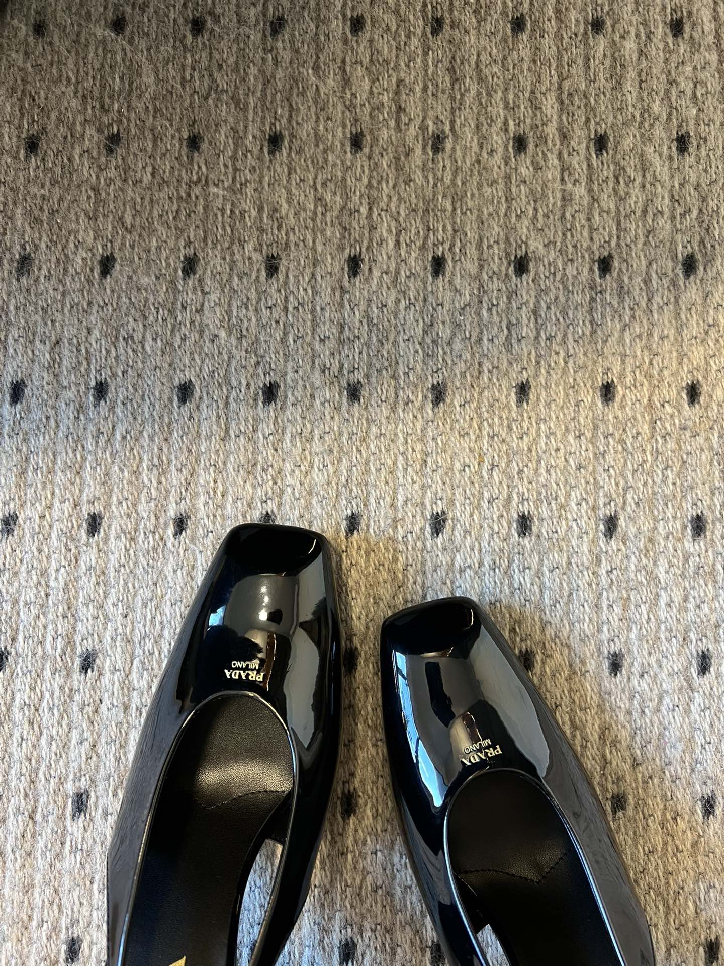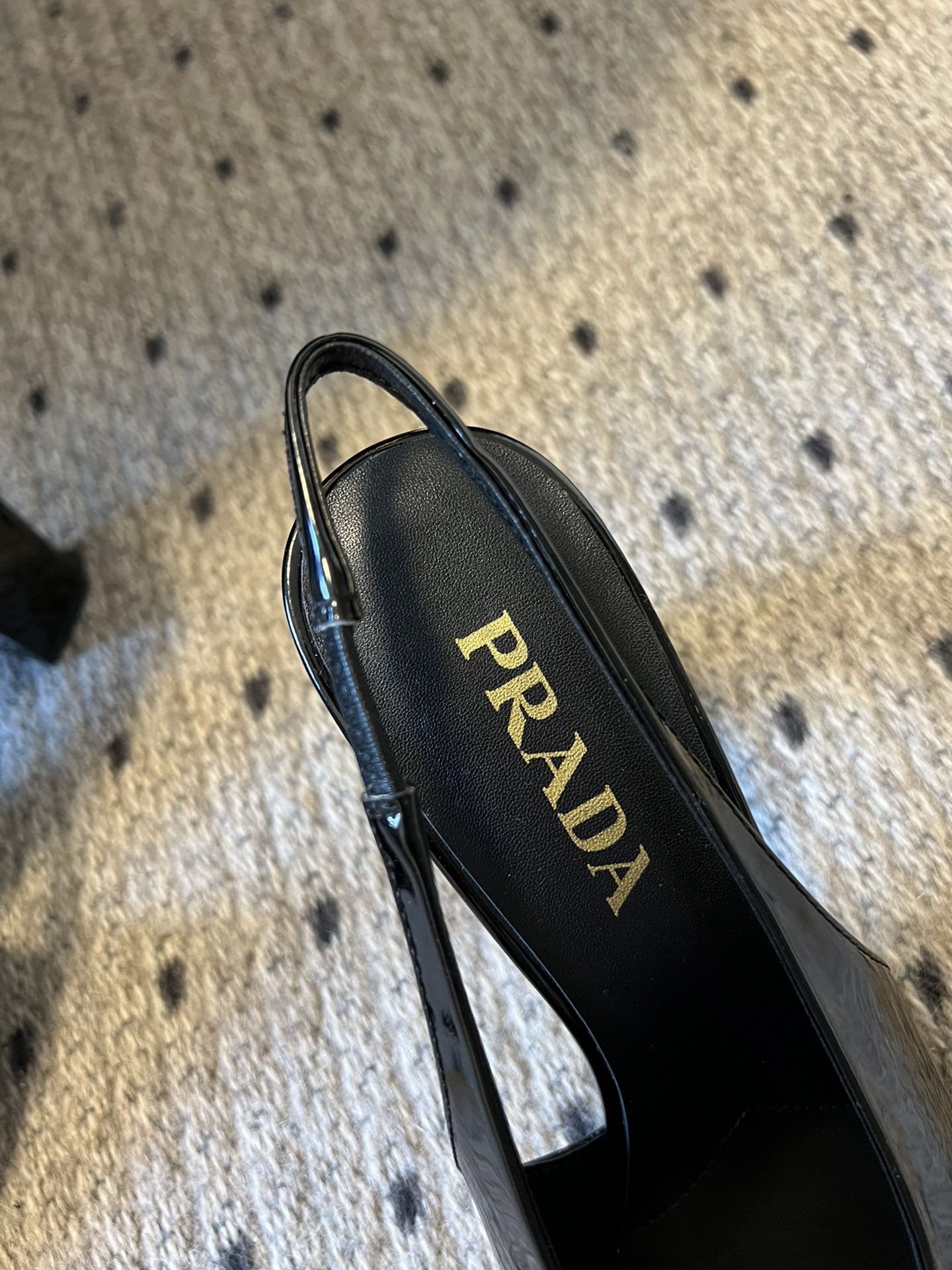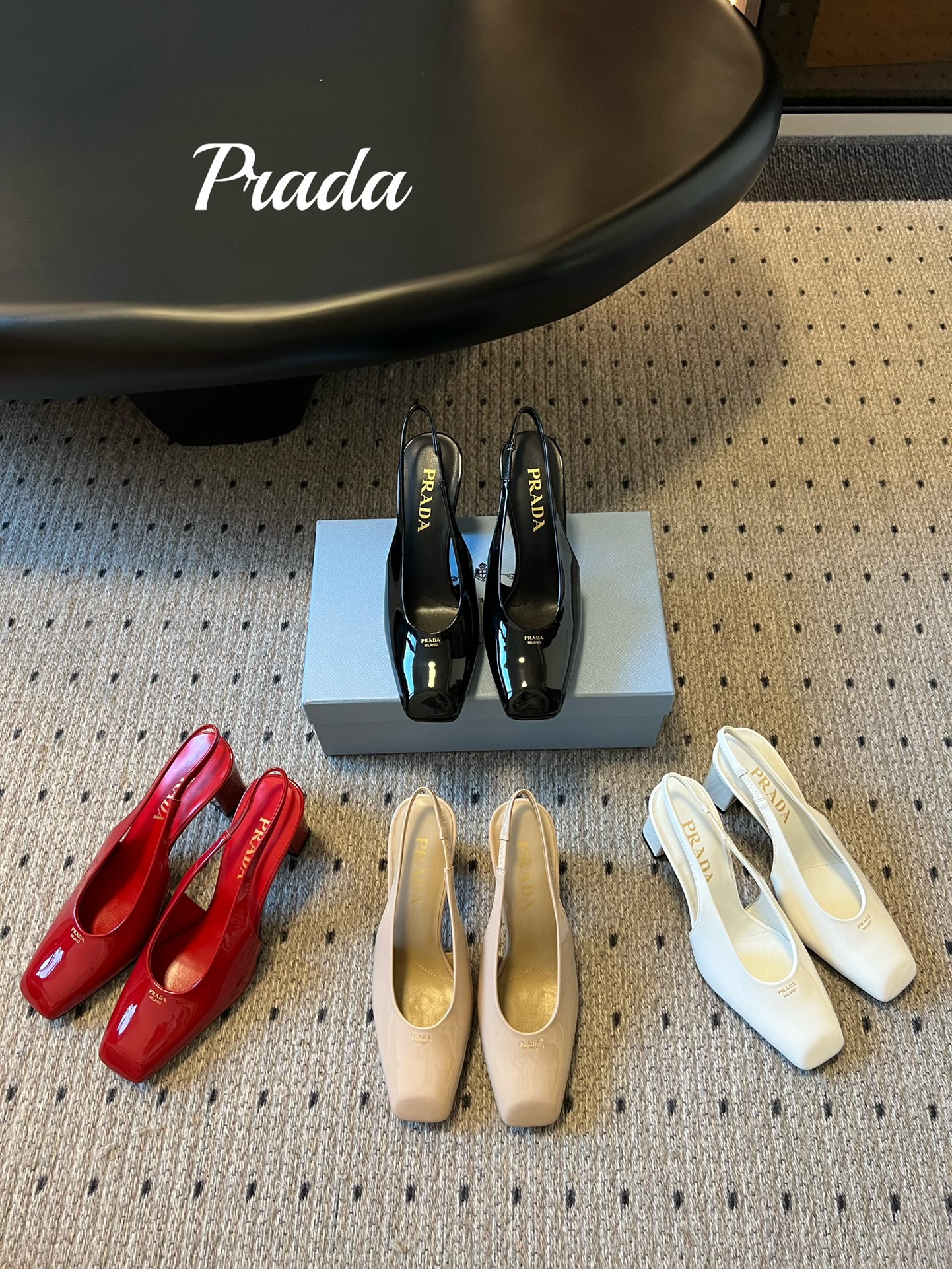 NIGO Prada Women's Elegant Sexy Patent Leather Thick Square Head High Heels Fashion Single Shoes Spring And Summer High-end Sandals Shoes Heel 8.5cm #nigo81114