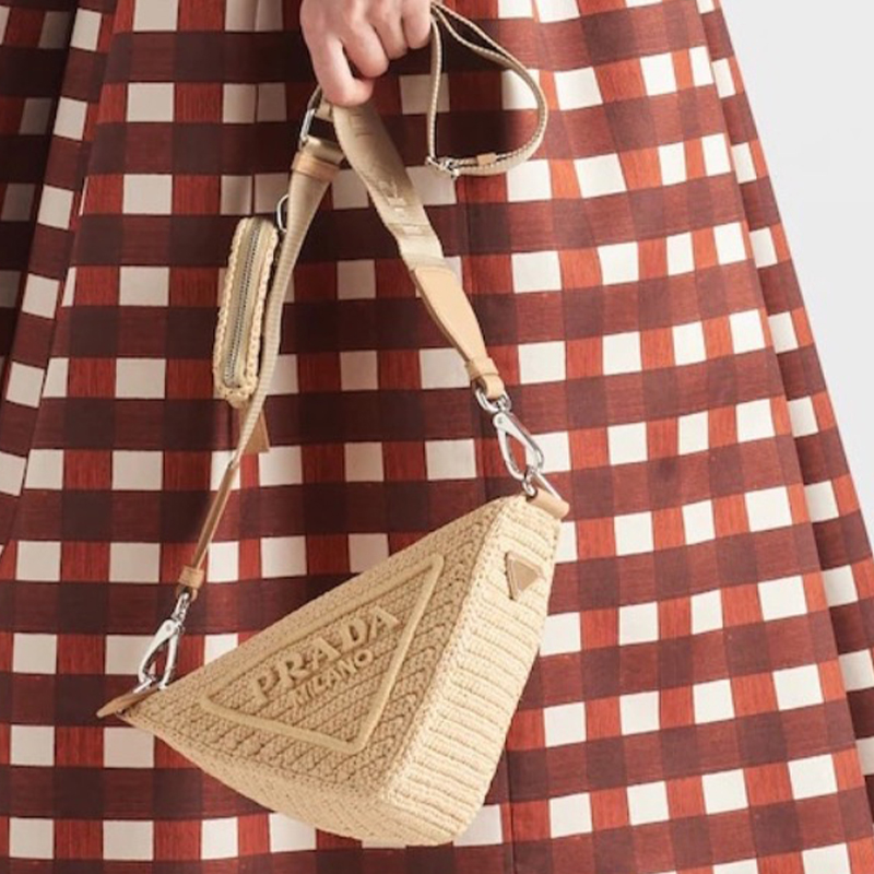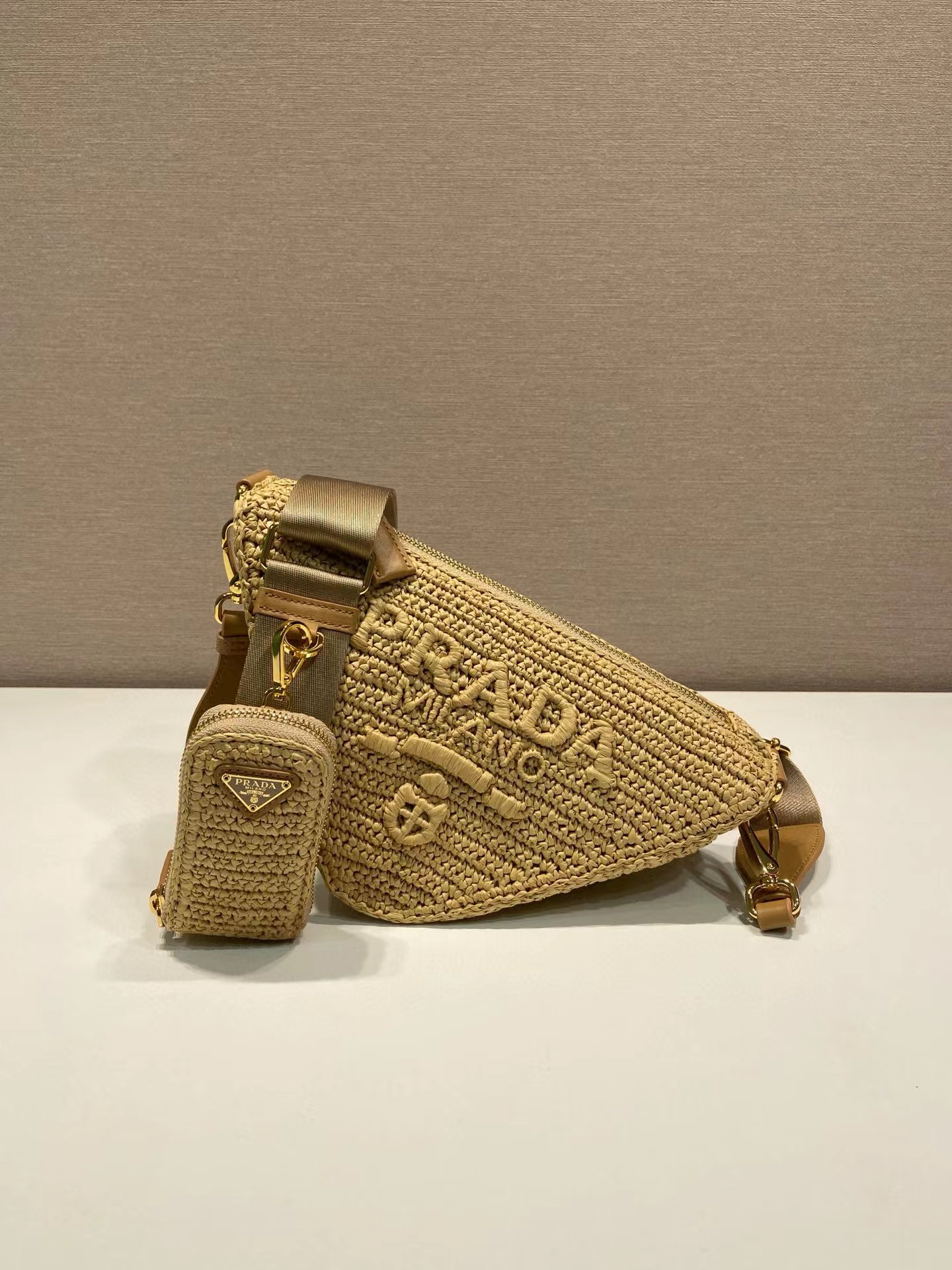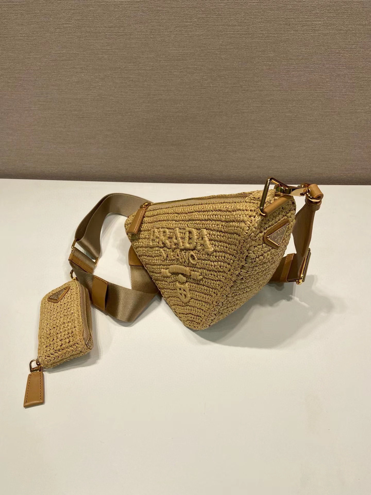 NIGO Prada Women's Embroidered Triangle Logo Zipper Grass Woven Handbag Triangle Bag #nigo98286