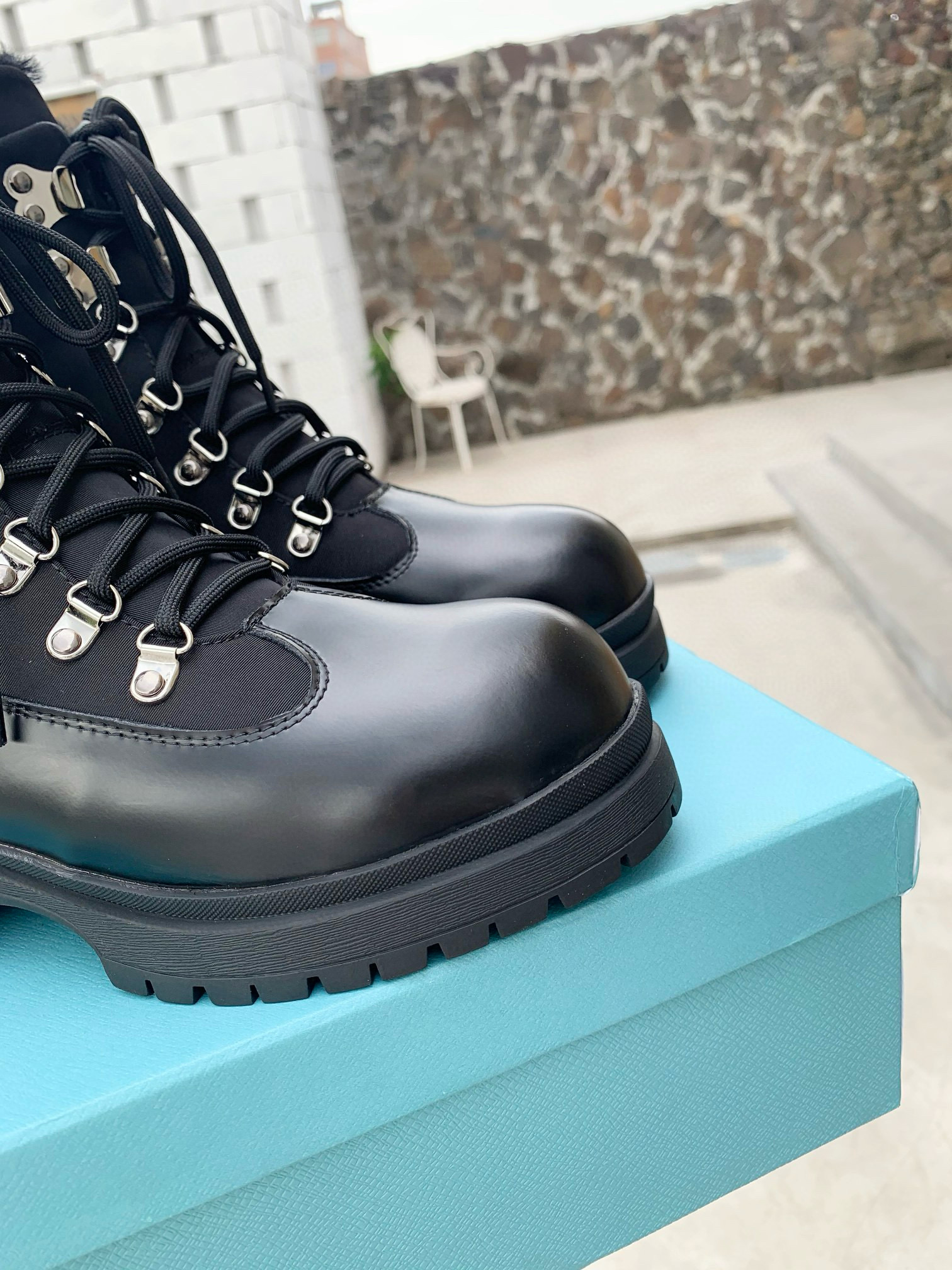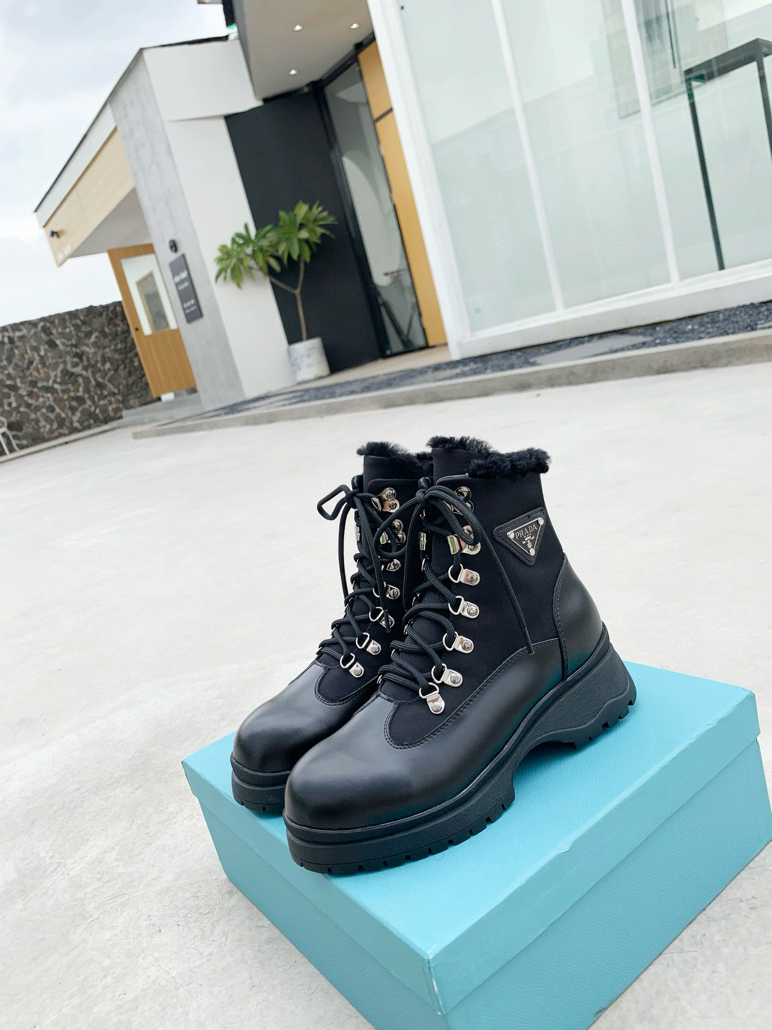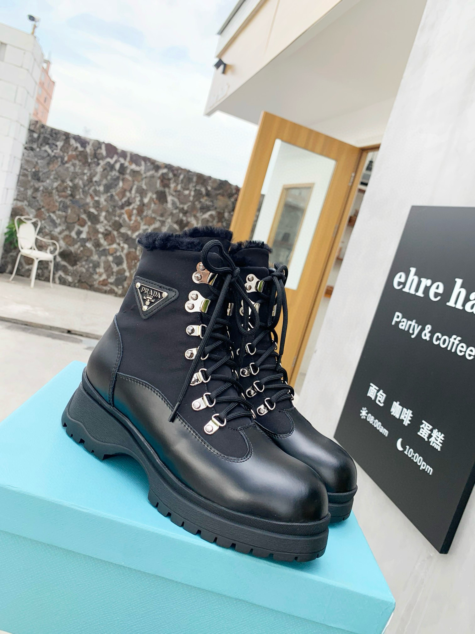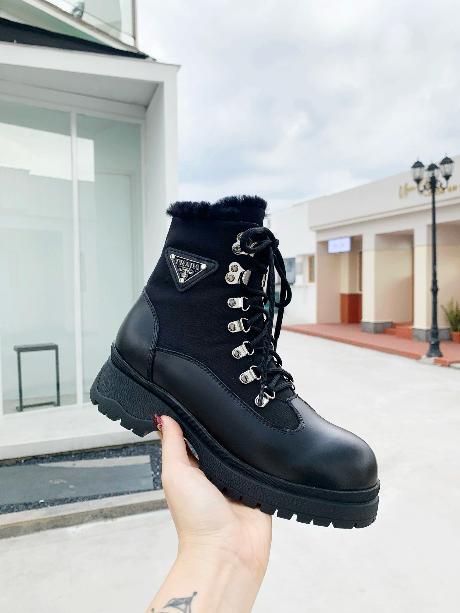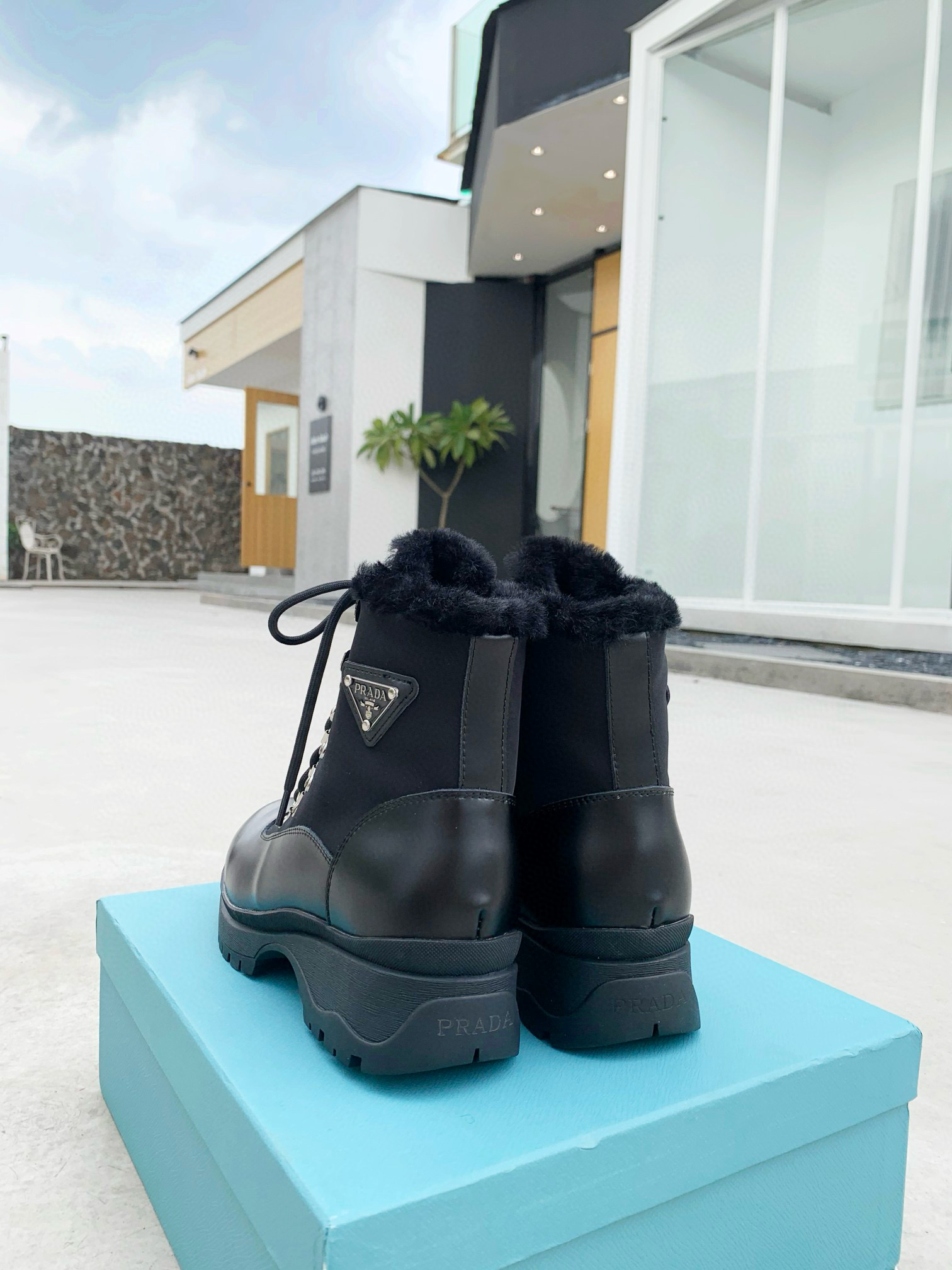 NIGO Prada Women's Fall And Winter Black Nylon Leather Fashion Warm Wool Lining Short Boots Shoes #nigo73885