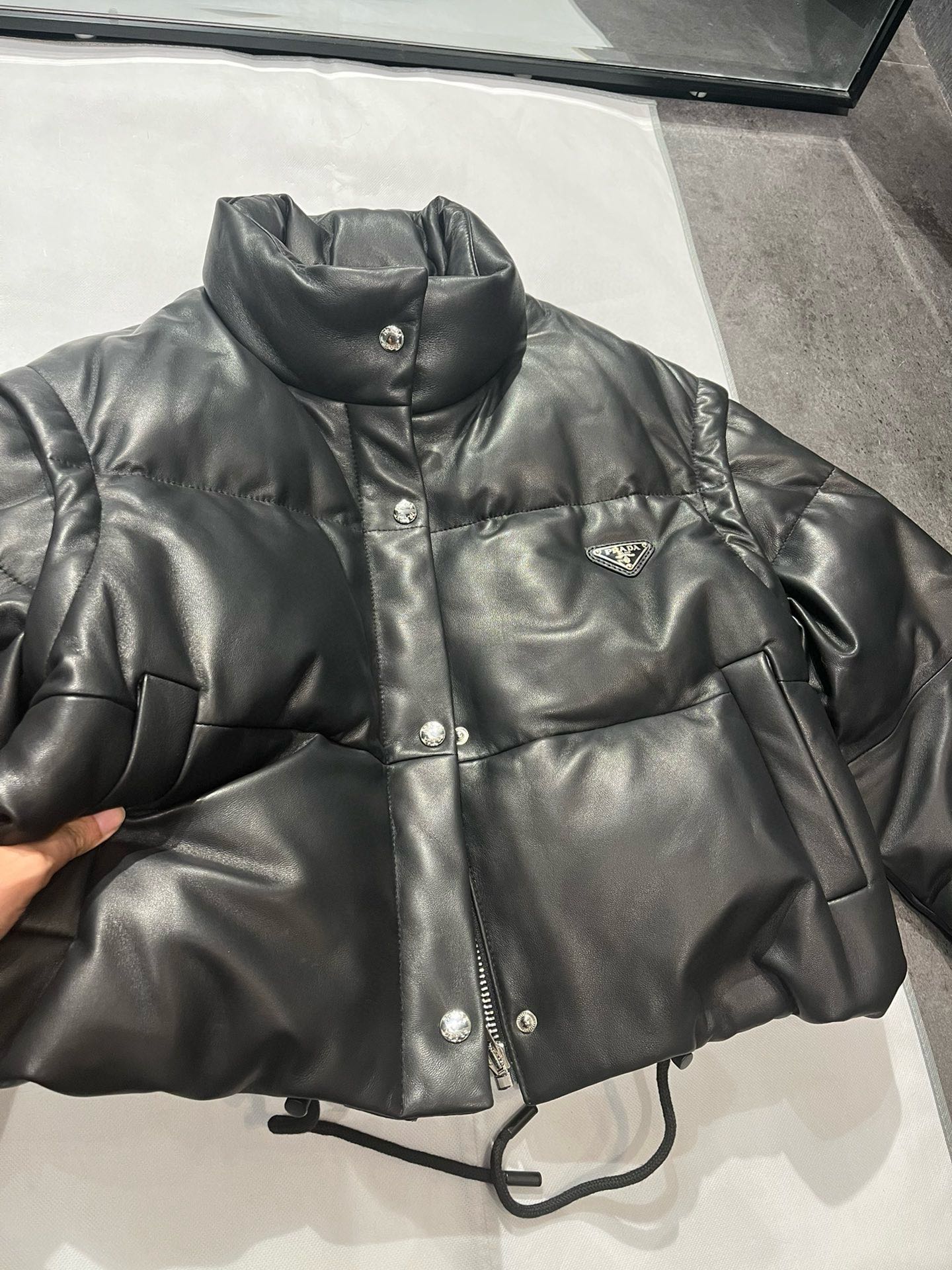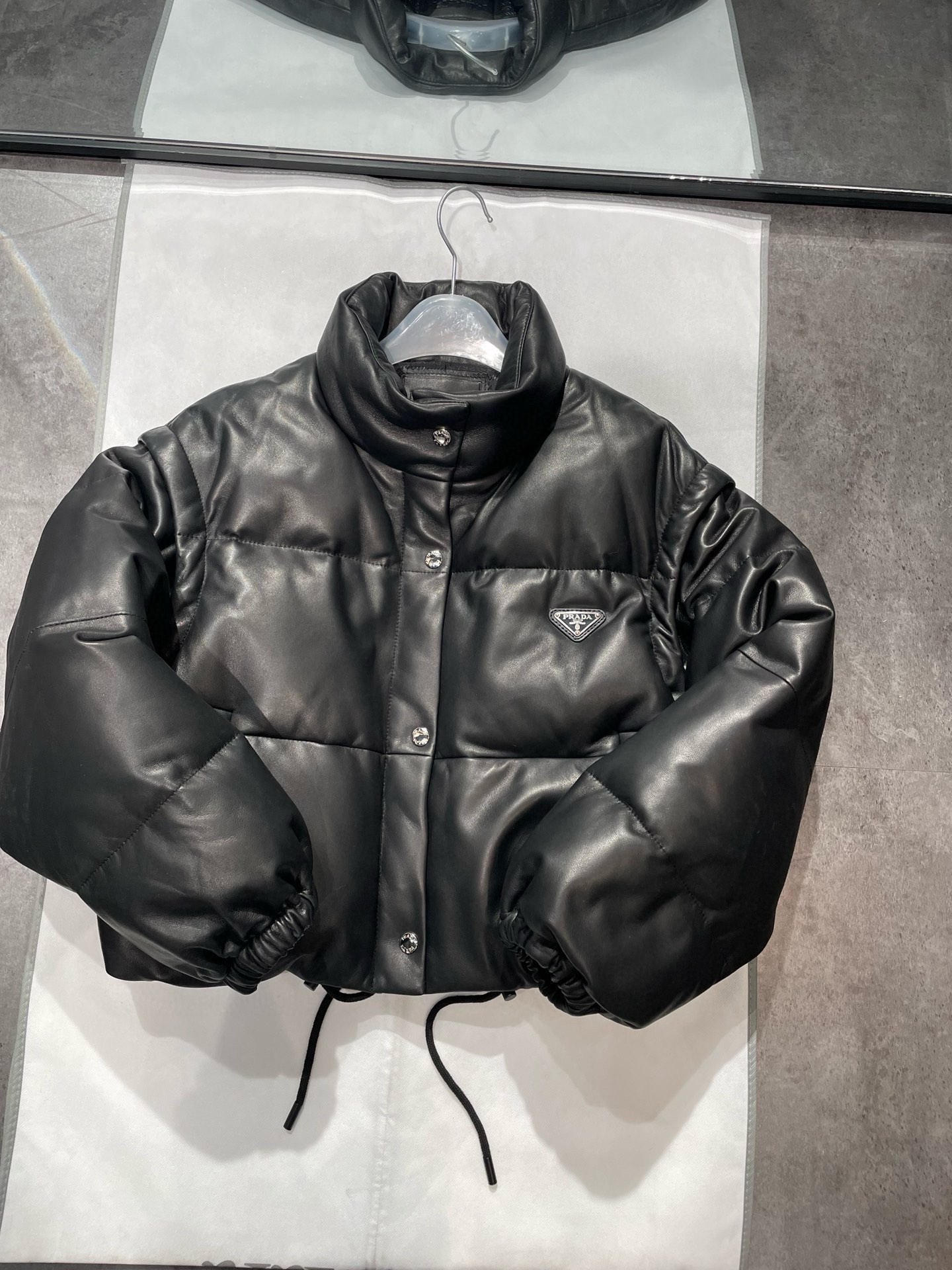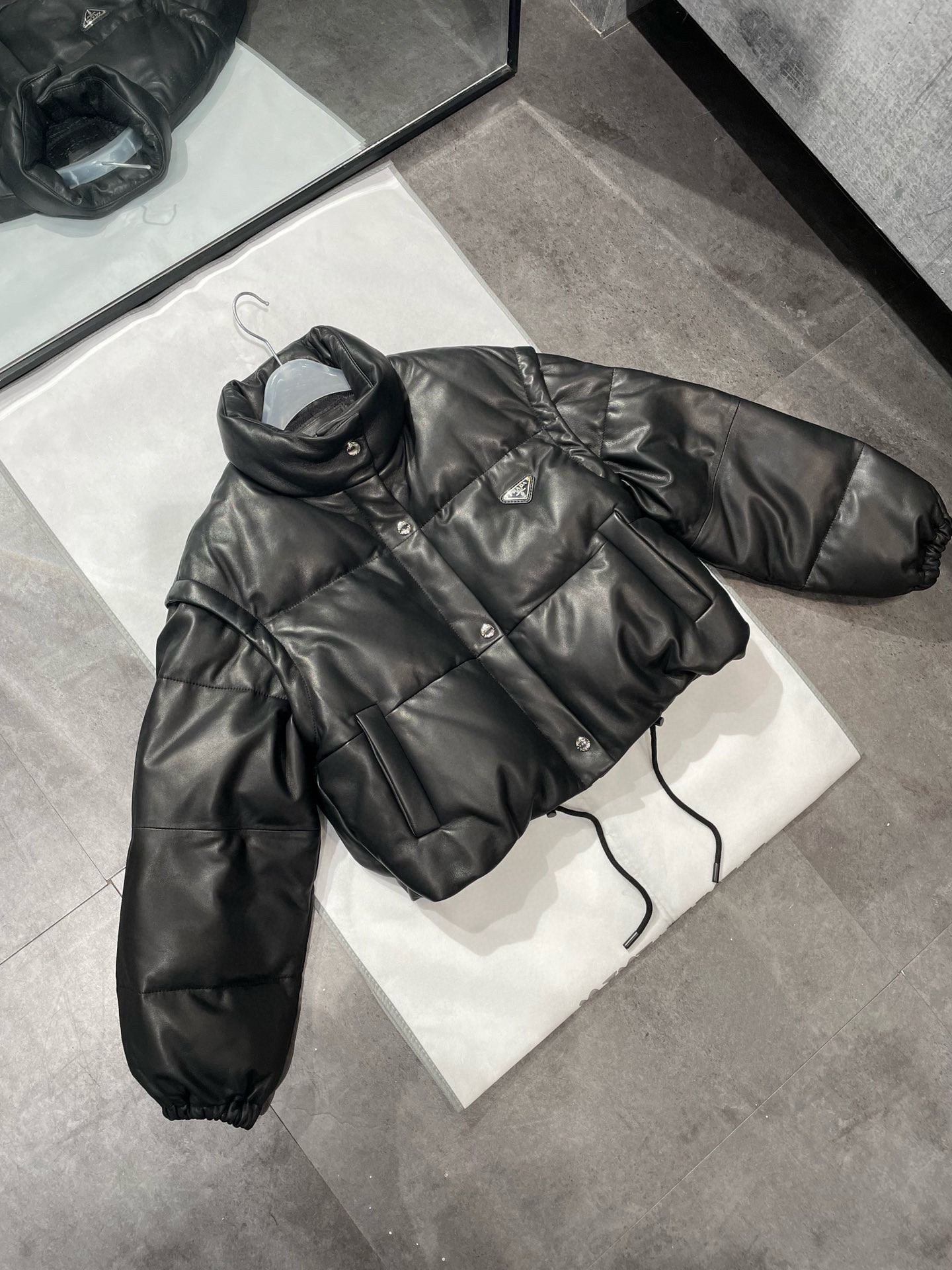 NIGO Prada Women's Fall And Winter Black Stand-up Collar Single-breasted Detachable Sleeve Sheepskin Puffer Down Jacket #nigo74758
