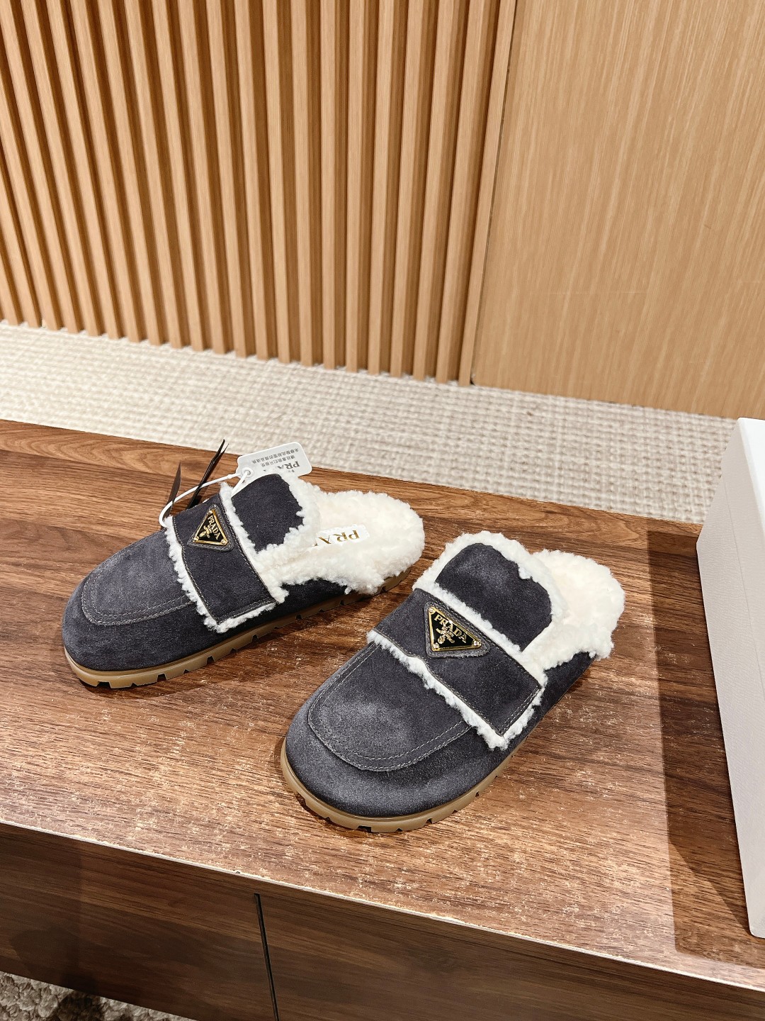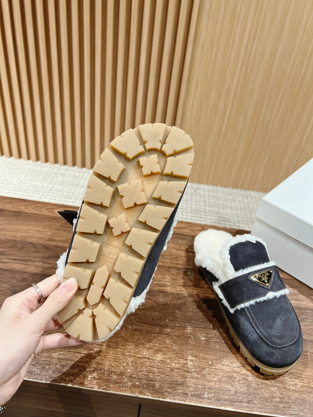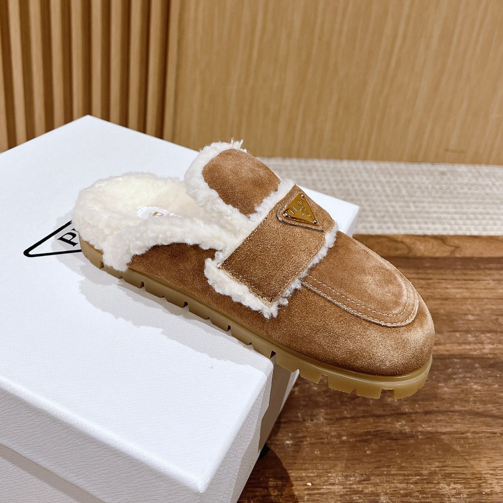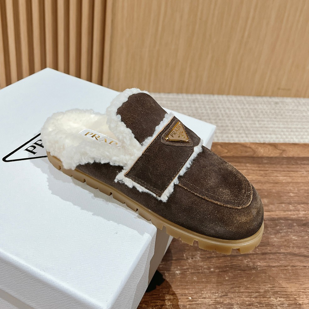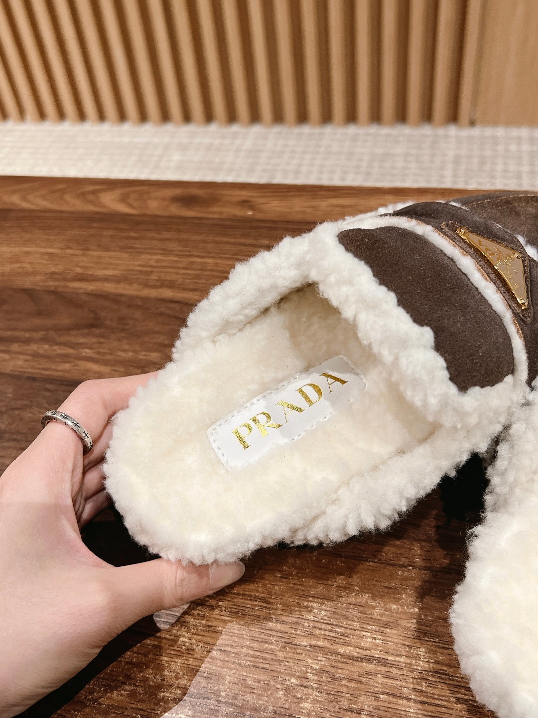 NIGO Prada Women's Fall/winter Casual Round Toe Slip On Fleece Lined Triangular Logo Birkenstock Style Slippers Shoes #nigo79271