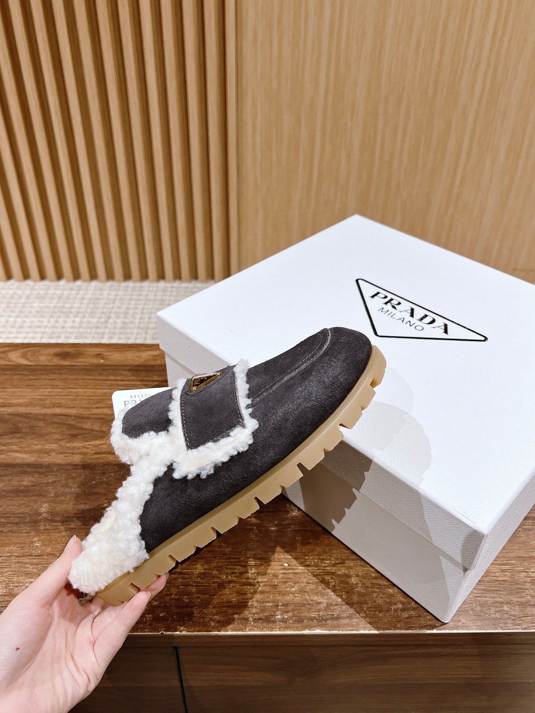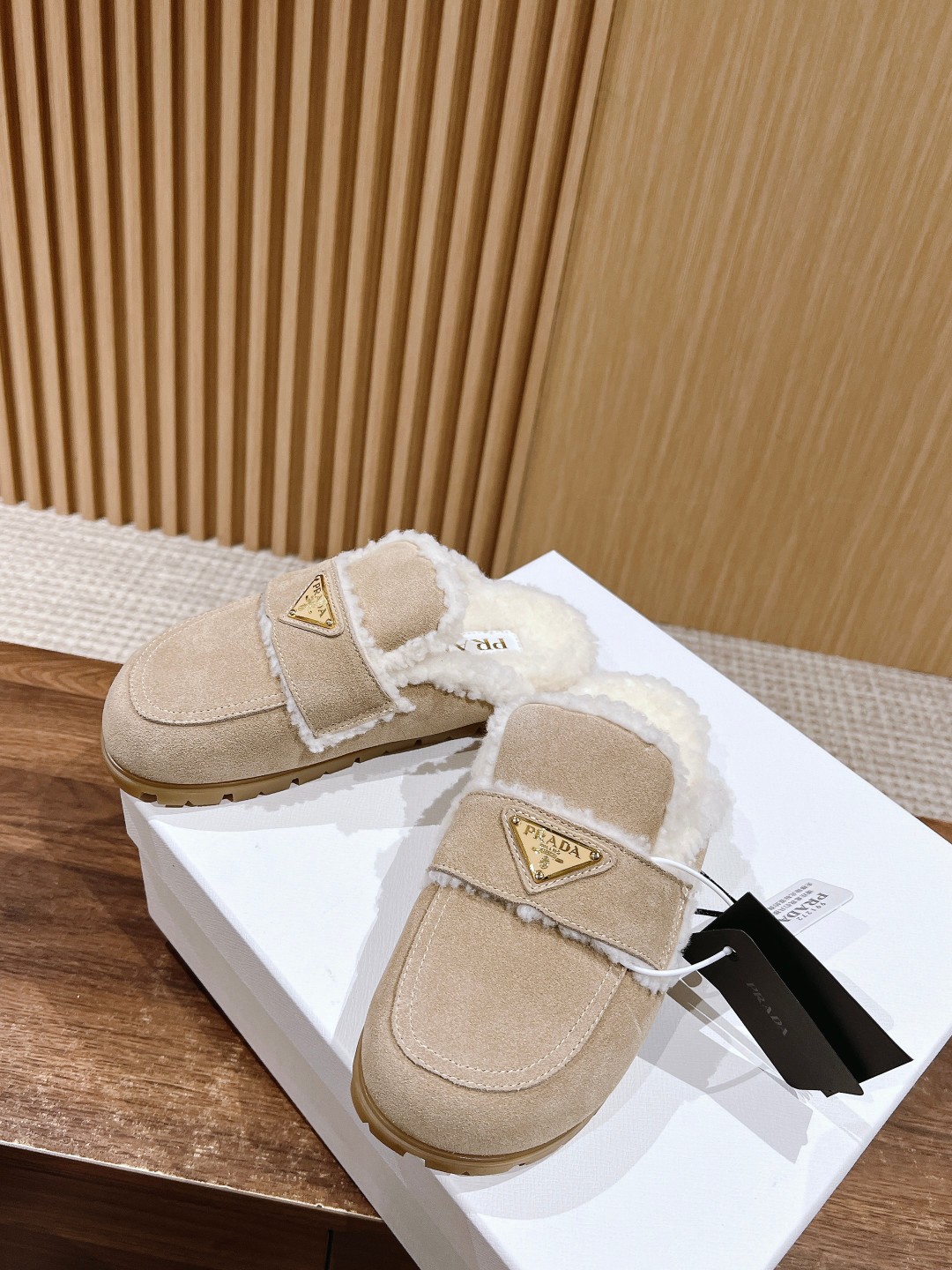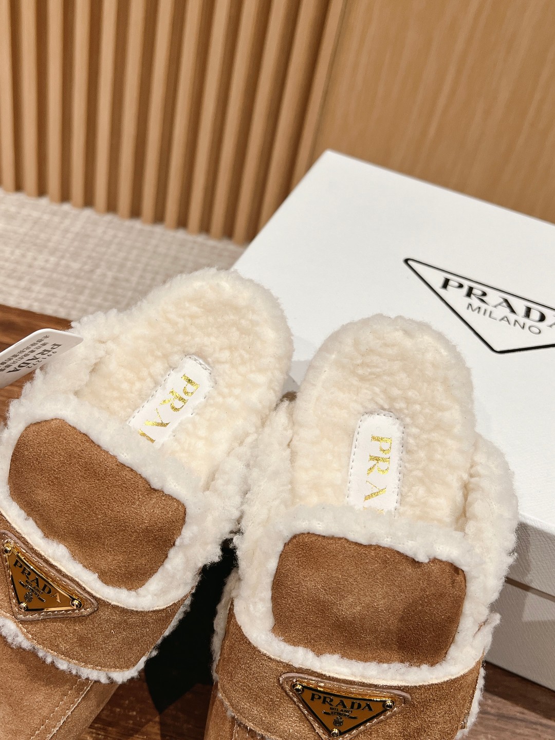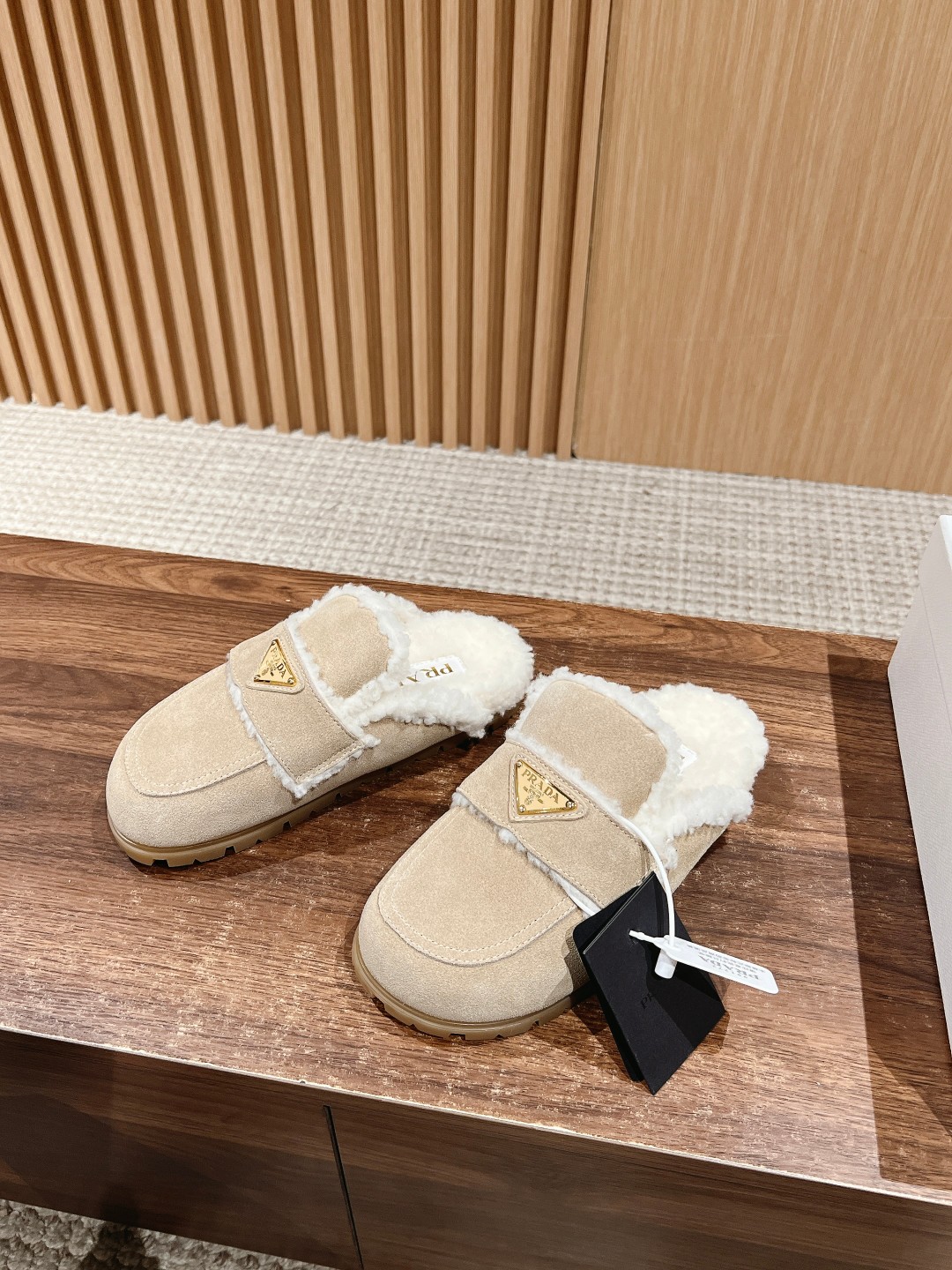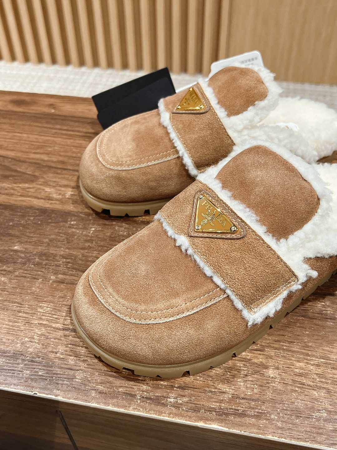 NIGO Prada Women's Fall/winter Casual Round Toe Slip On Fleece Lined Triangular Logo Birkenstock Style Slippers Shoes #nigo79271