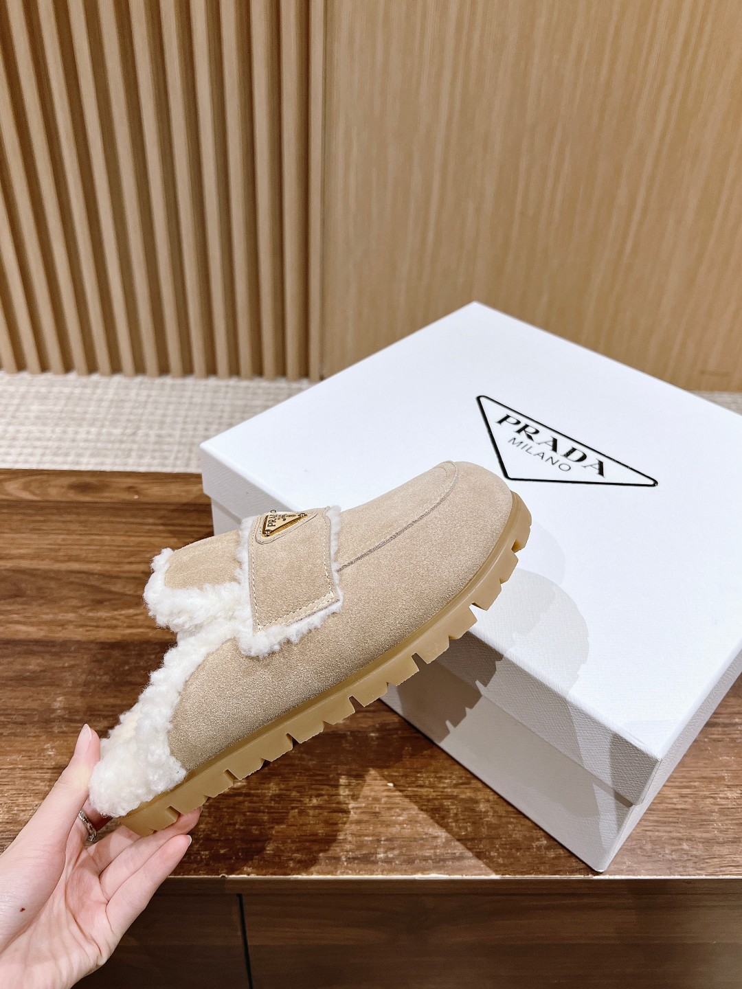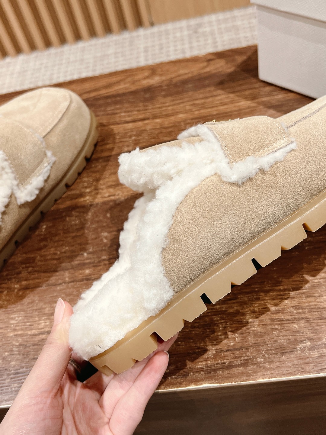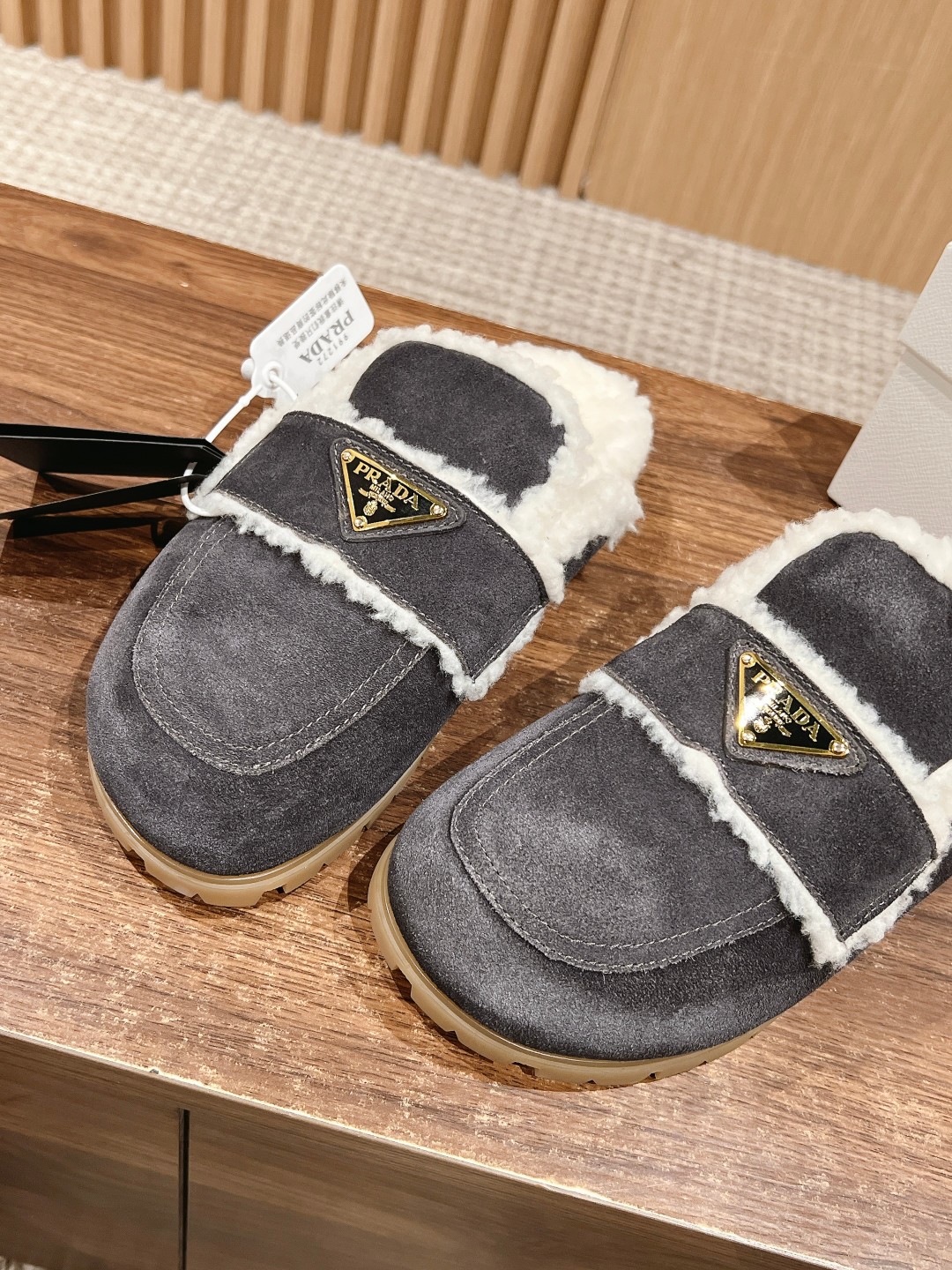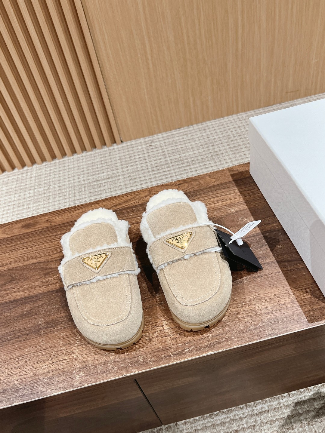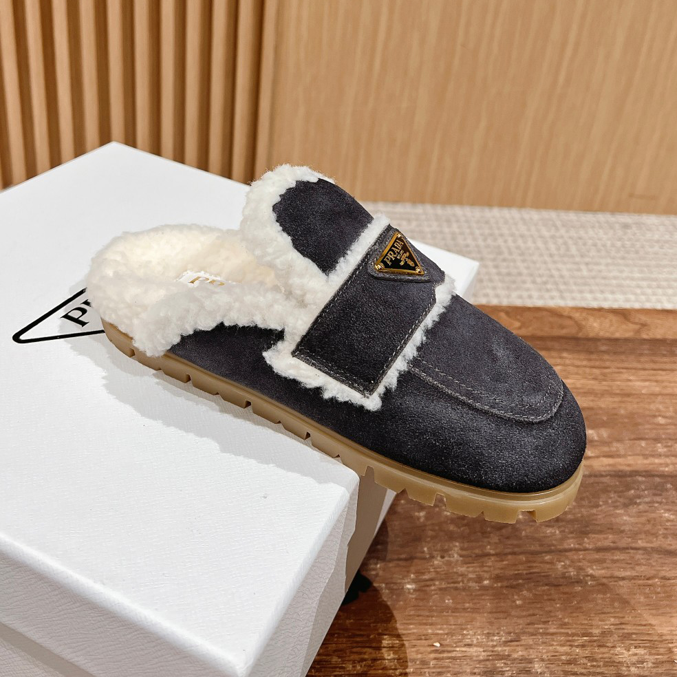 NIGO Prada Women's Fall/winter Casual Round Toe Slip On Fleece Lined Triangular Logo Birkenstock Style Slippers Shoes #nigo79271
