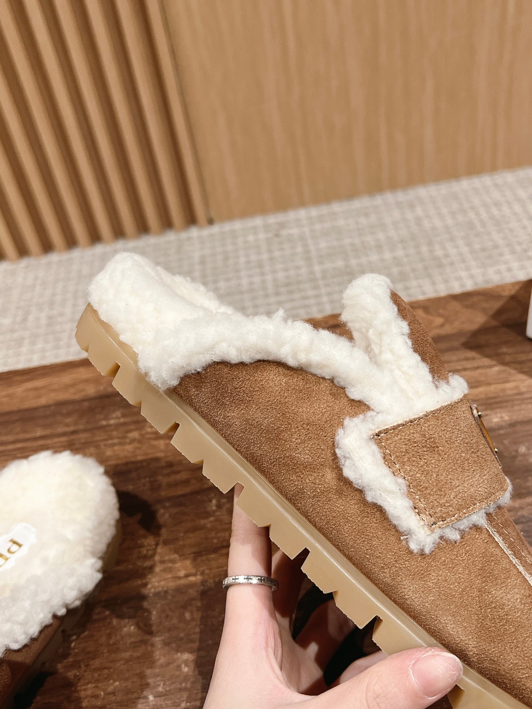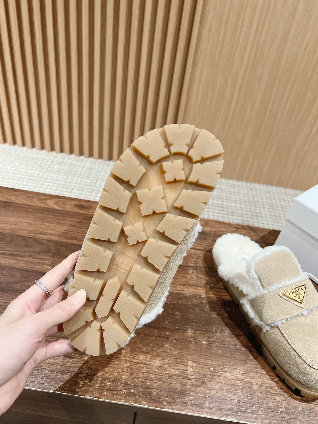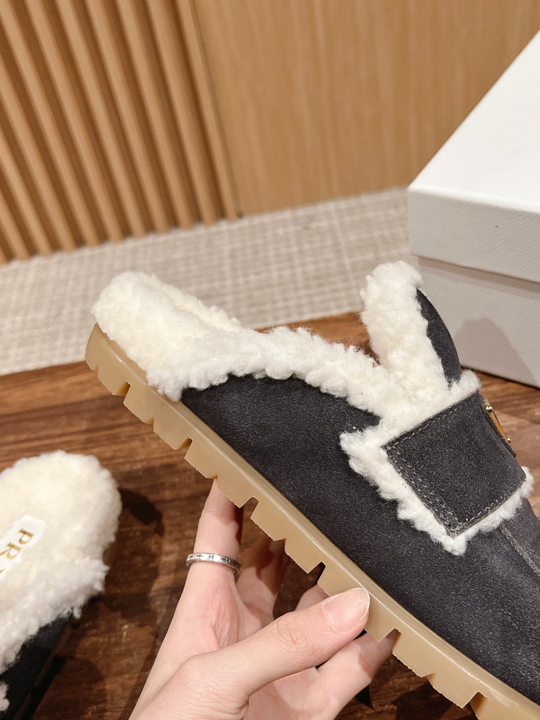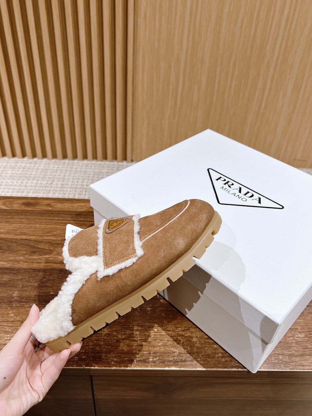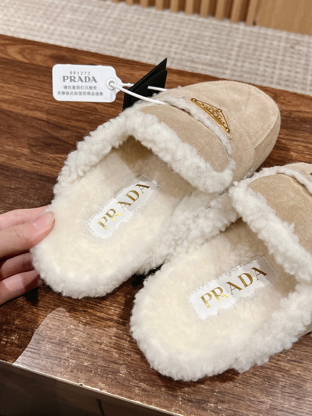 NIGO Prada Women's Fall/winter Casual Round Toe Slip On Fleece Lined Triangular Logo Birkenstock Style Slippers Shoes #nigo79271