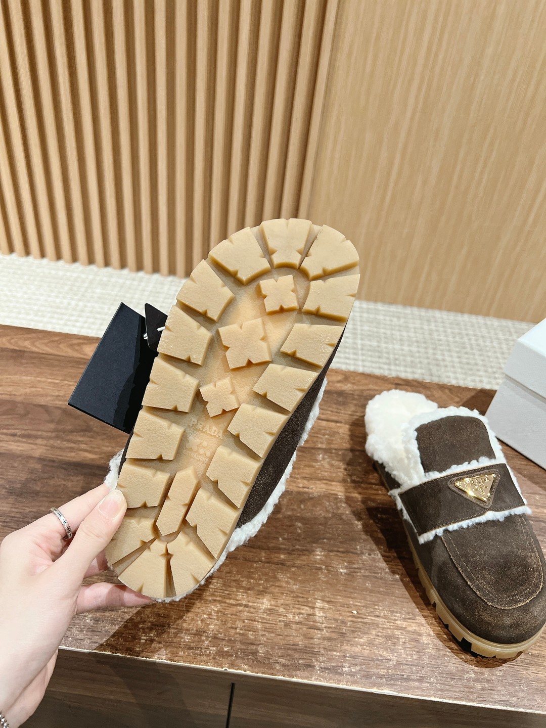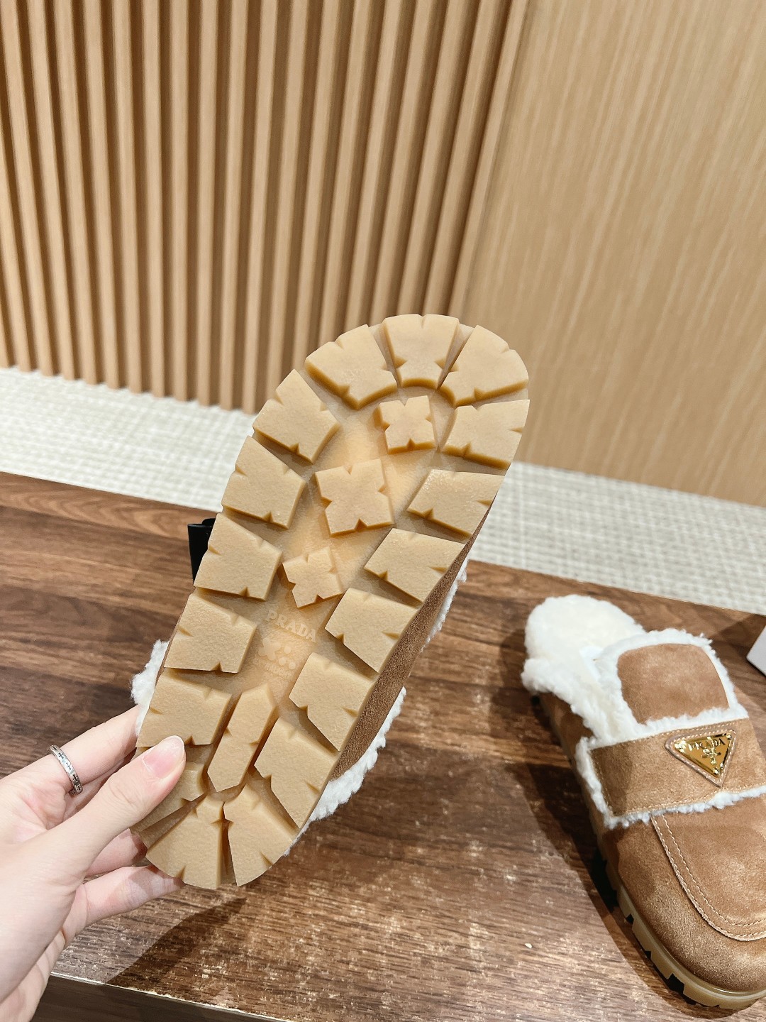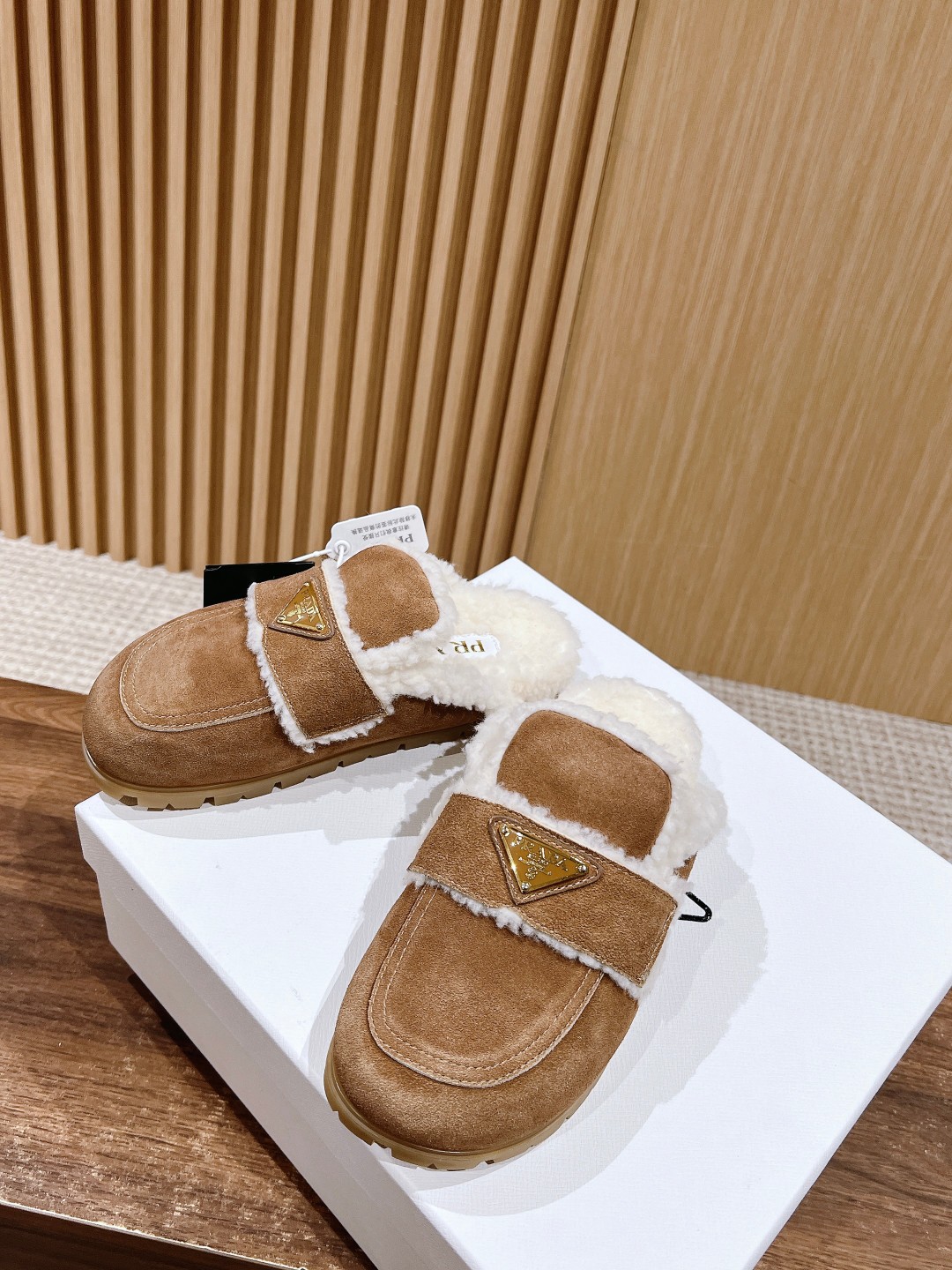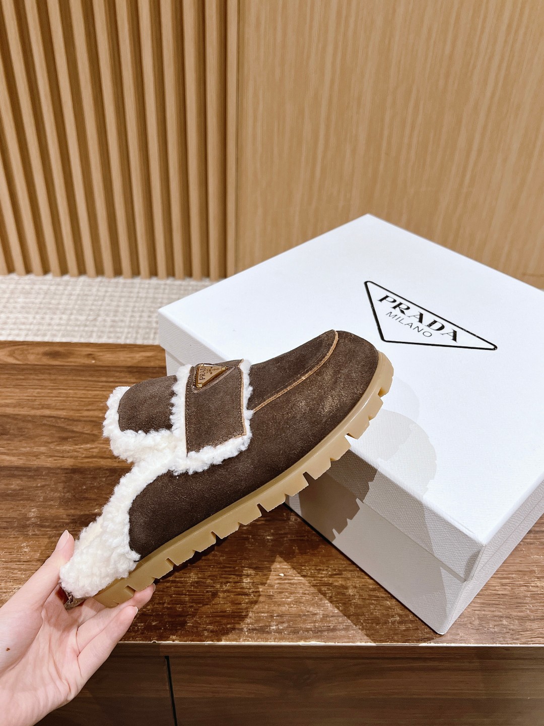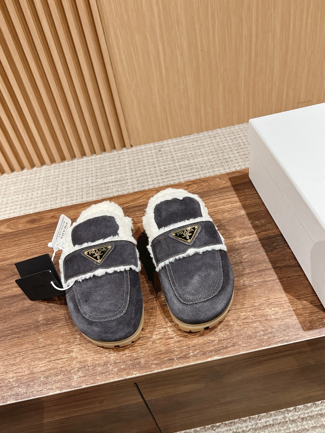 NIGO Prada Women's Fall/winter Casual Round Toe Slip On Fleece Lined Triangular Logo Birkenstock Style Slippers Shoes #nigo79271