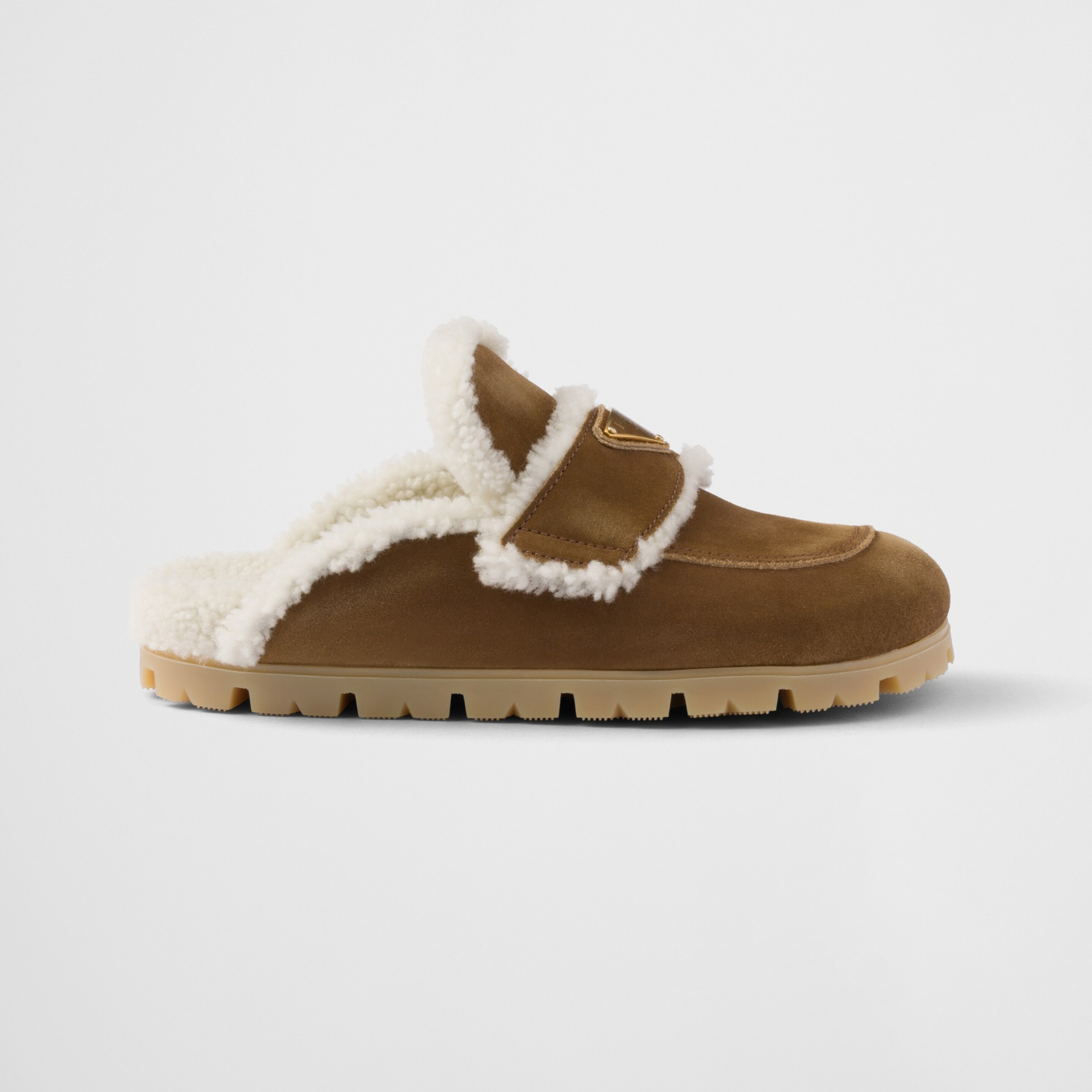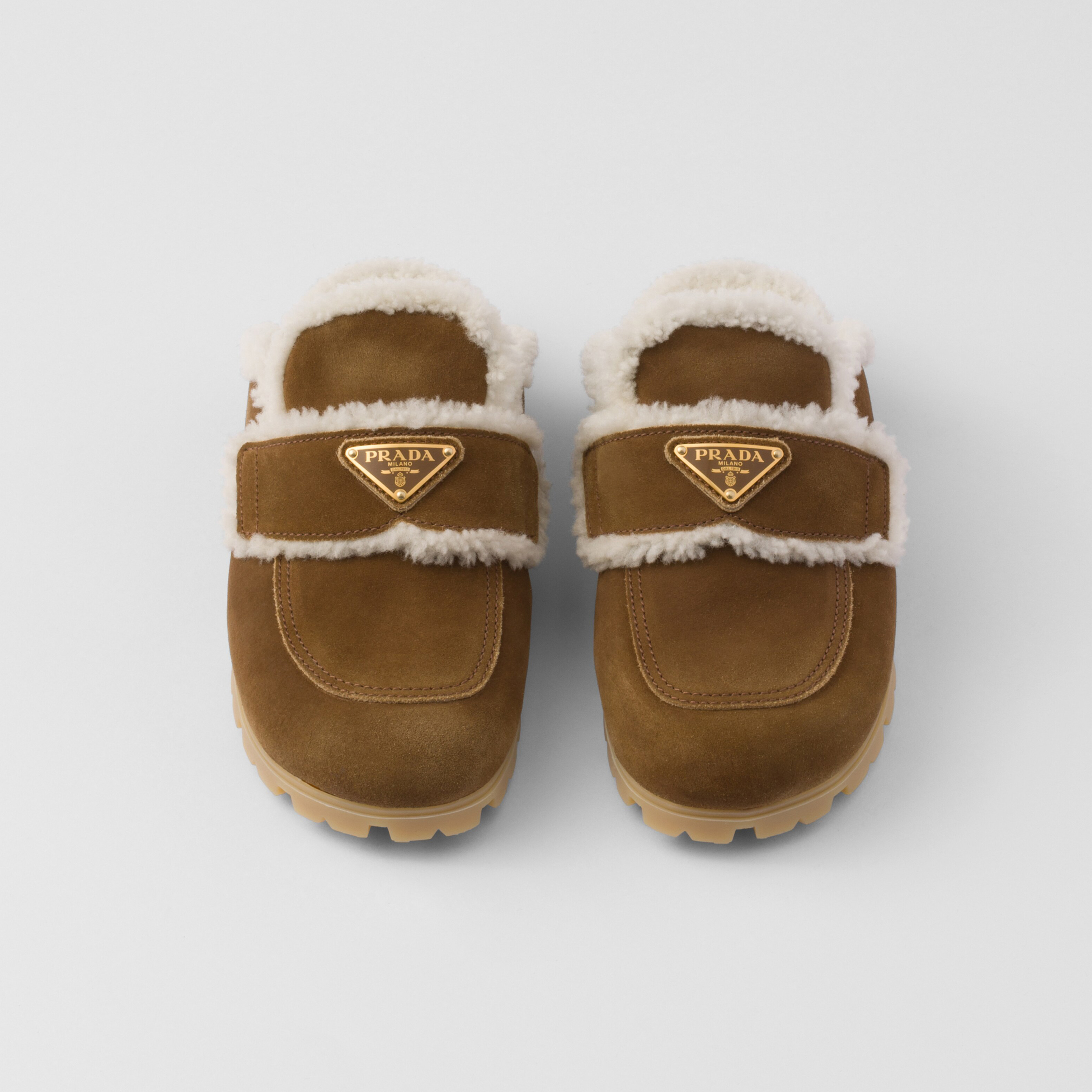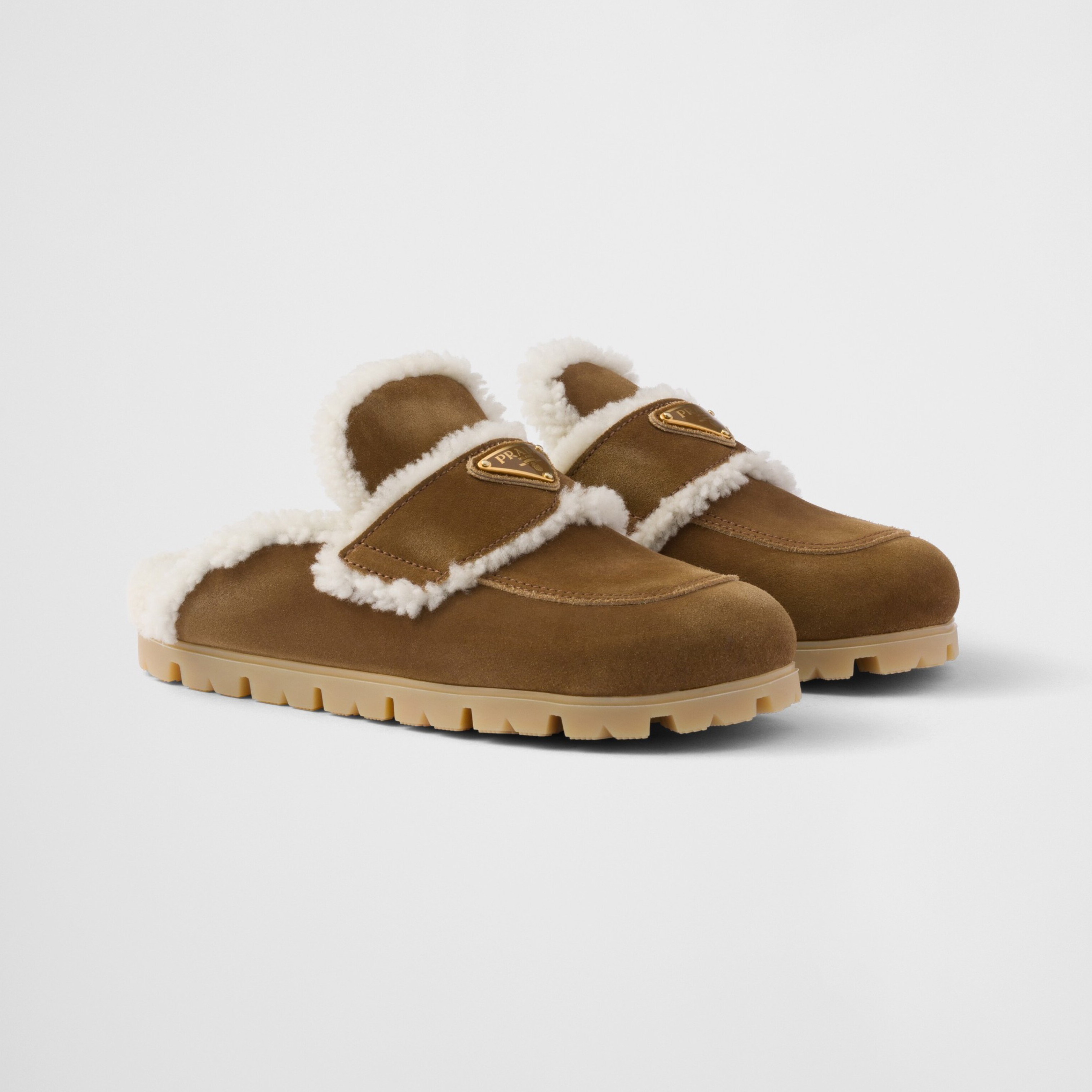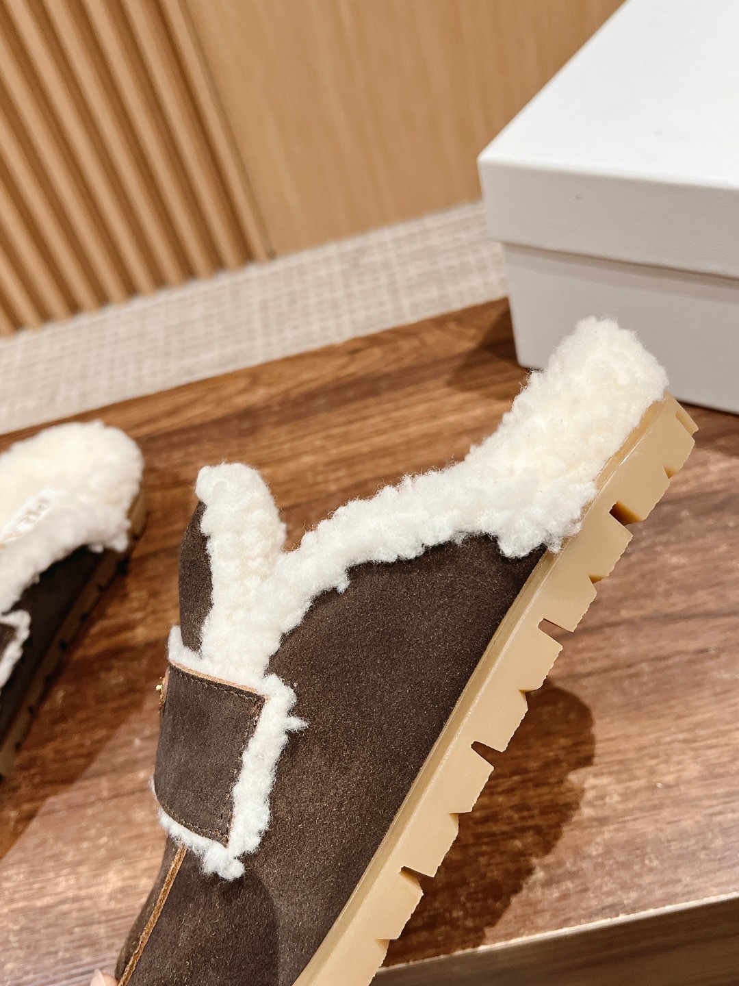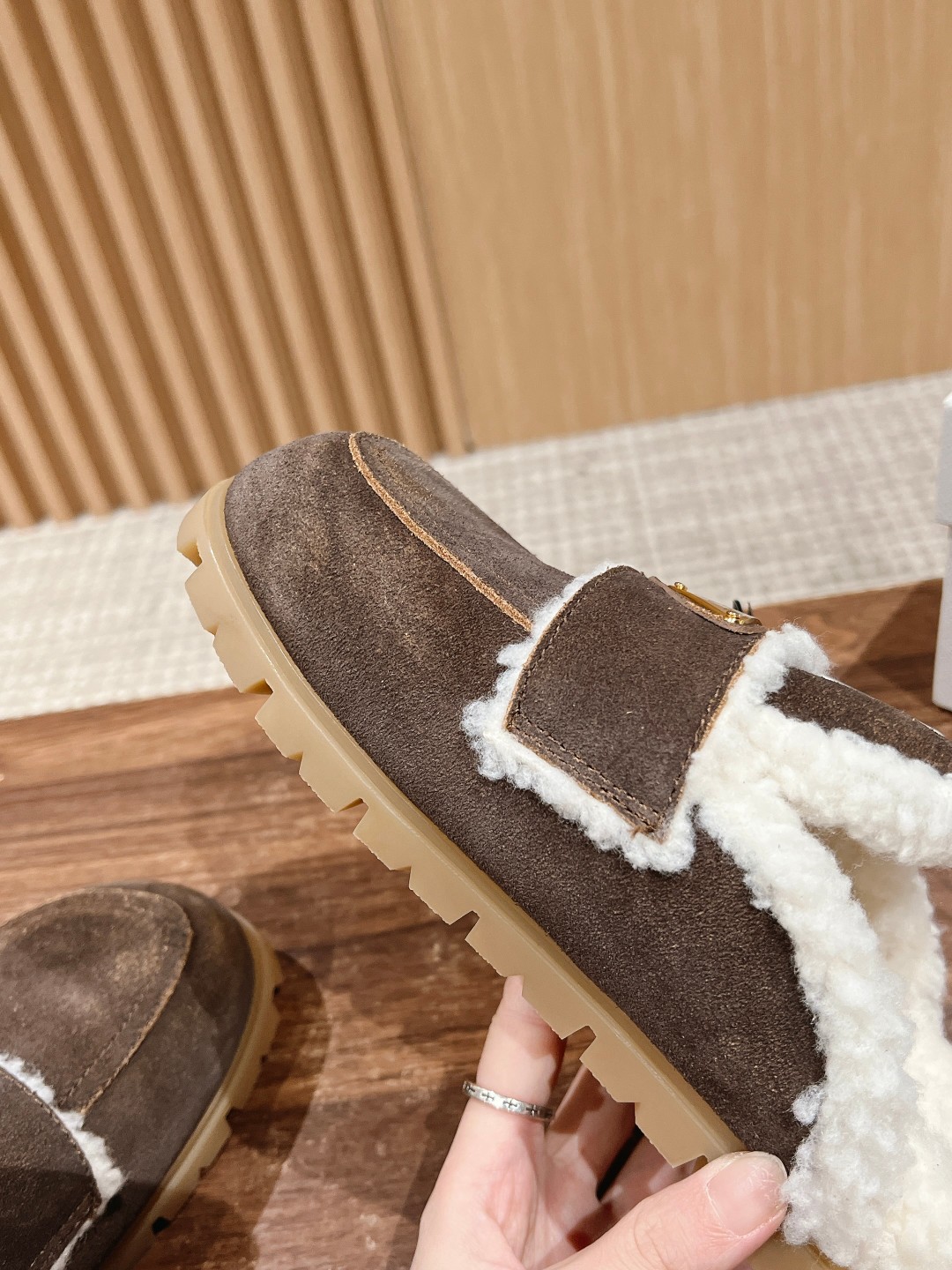NIGO Prada Women's Fall/winter Casual Round Toe Slip On Fleece Lined Triangular Logo Birkenstock Style Slippers Shoes #nigo79271